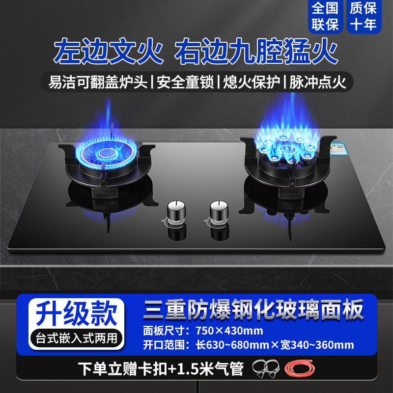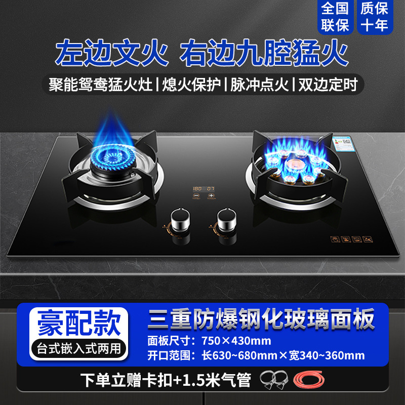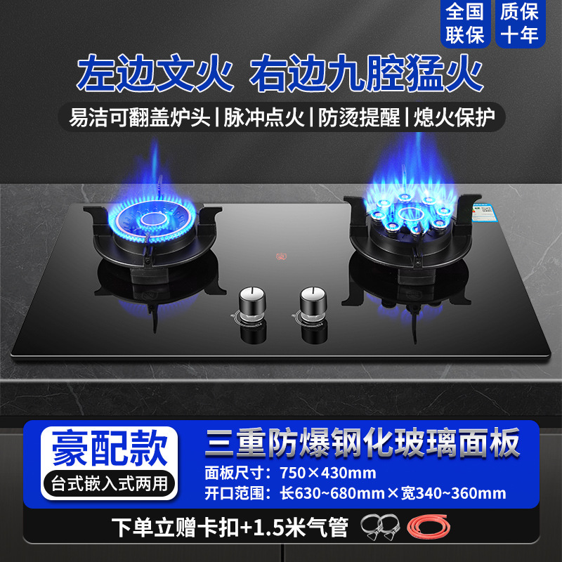 Haili 가스 스토브 더블 스토브 가스 스토브 가정용 내장 천연 가스 스토브 데스크탑 액화 가스 스토브 치열한 스토브스토어 가기