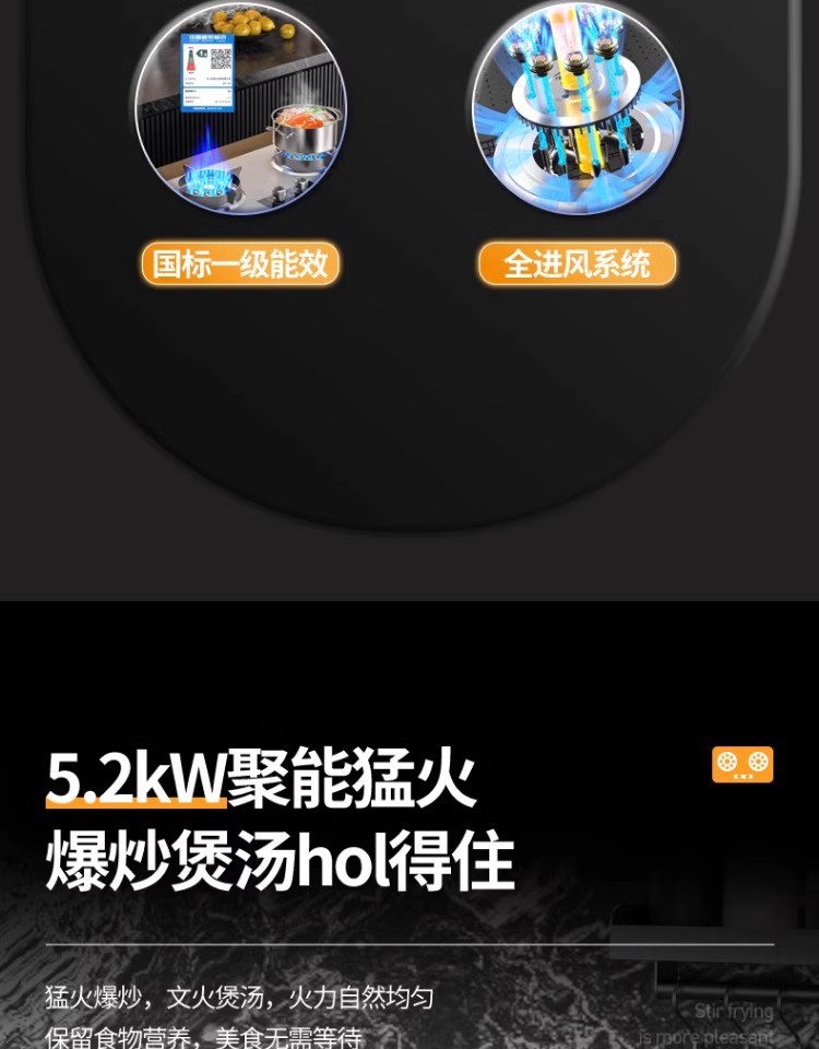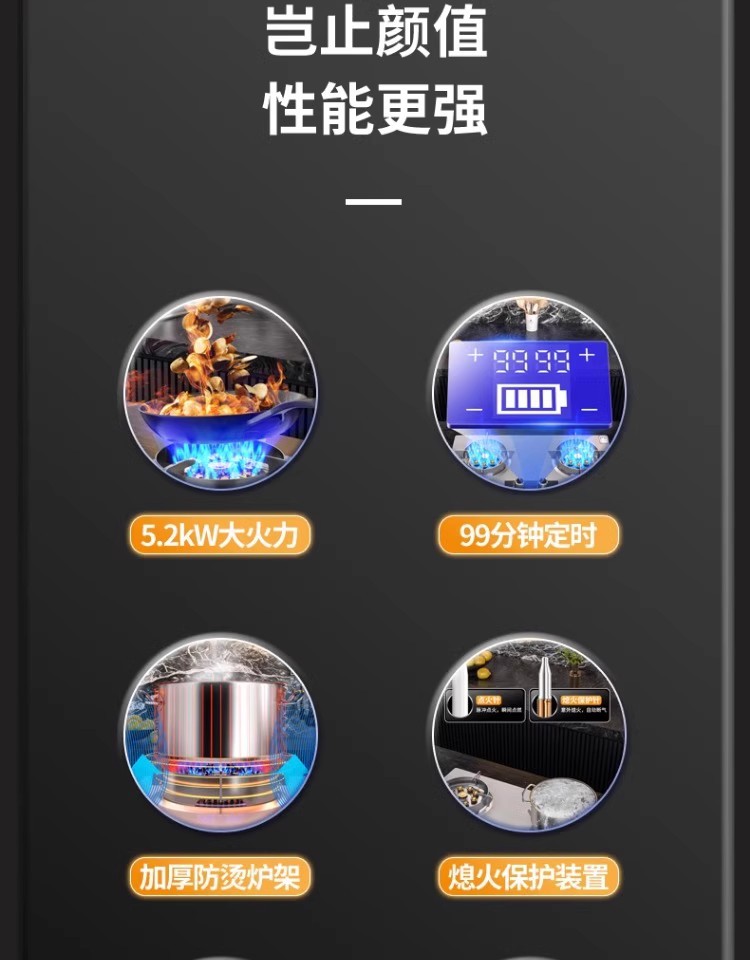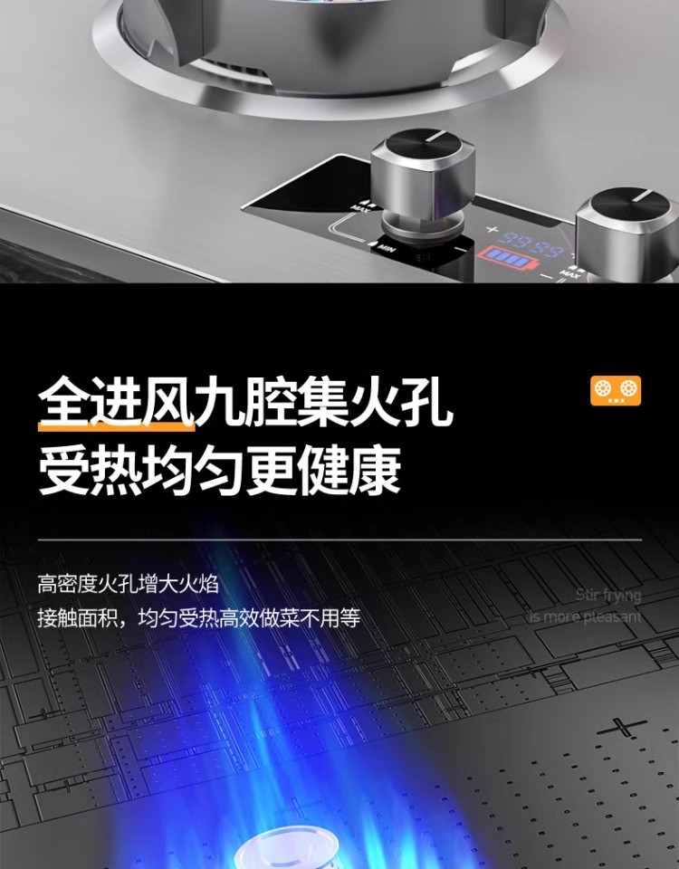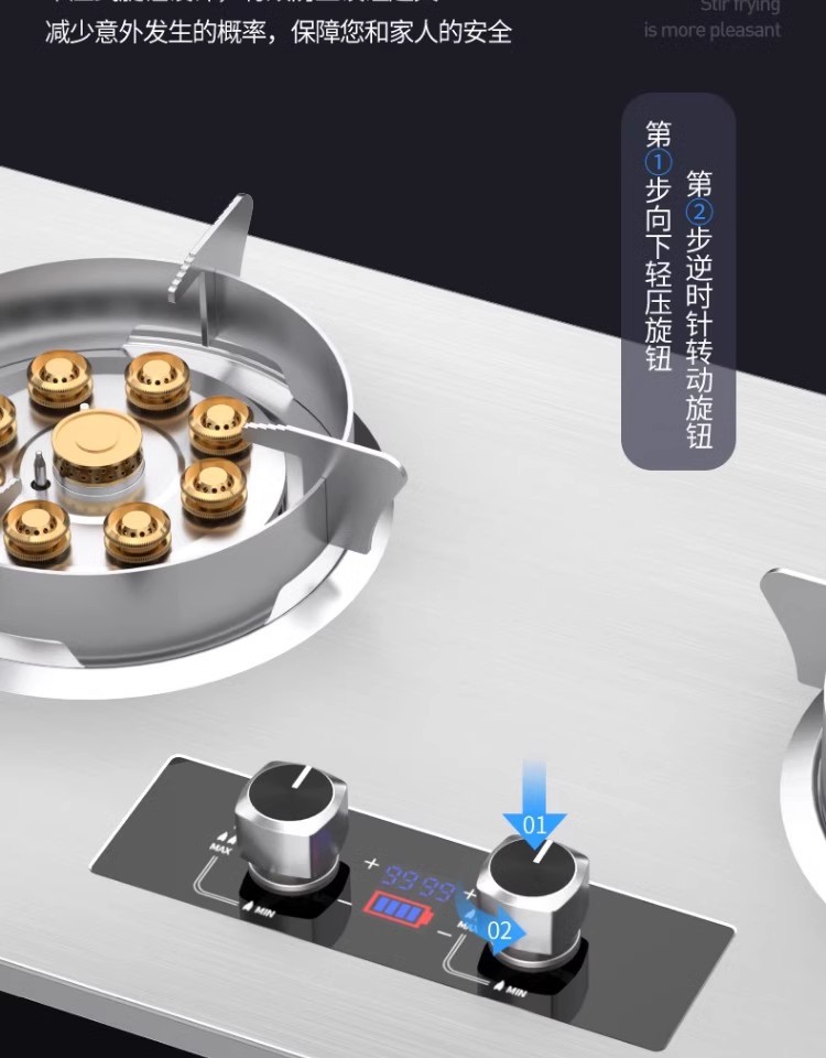 • 플래그십 모델 강화된 이중 9건 직접 분사 맹렬한 화재 + 지능형 타이밍 + 스테인레스 스틸 일체형 스토브 프레임