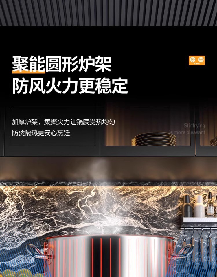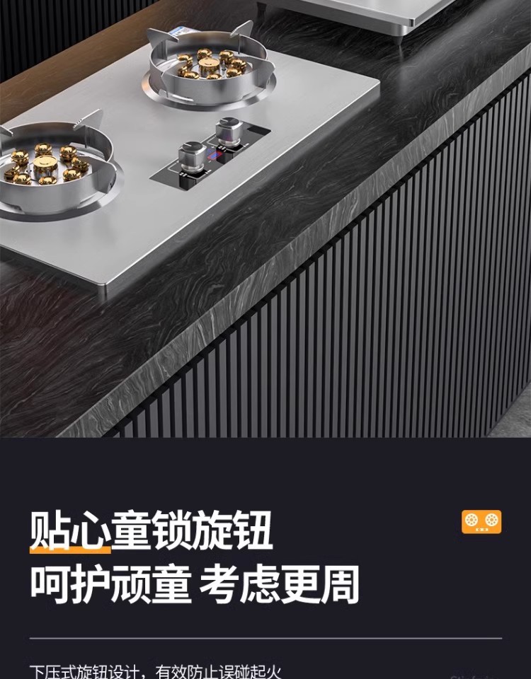 • 에너지 집약 방풍 상판 이중 9격 난로 + 화염 차단 + 안전 어린이 잠금 장치