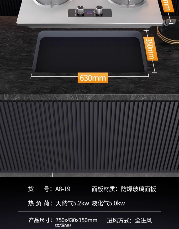 • 업그레이드된 5.2kw 양면 눈부신 화로 + 강화유리 패널 [화염 차단 보호]