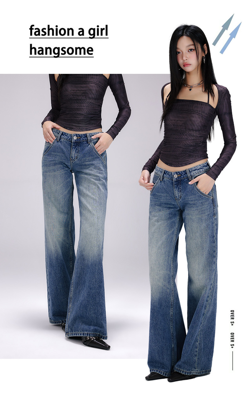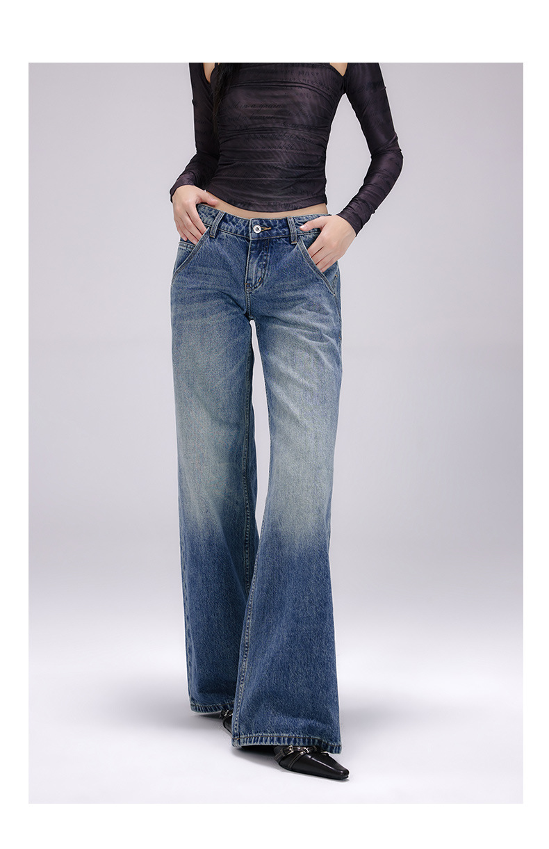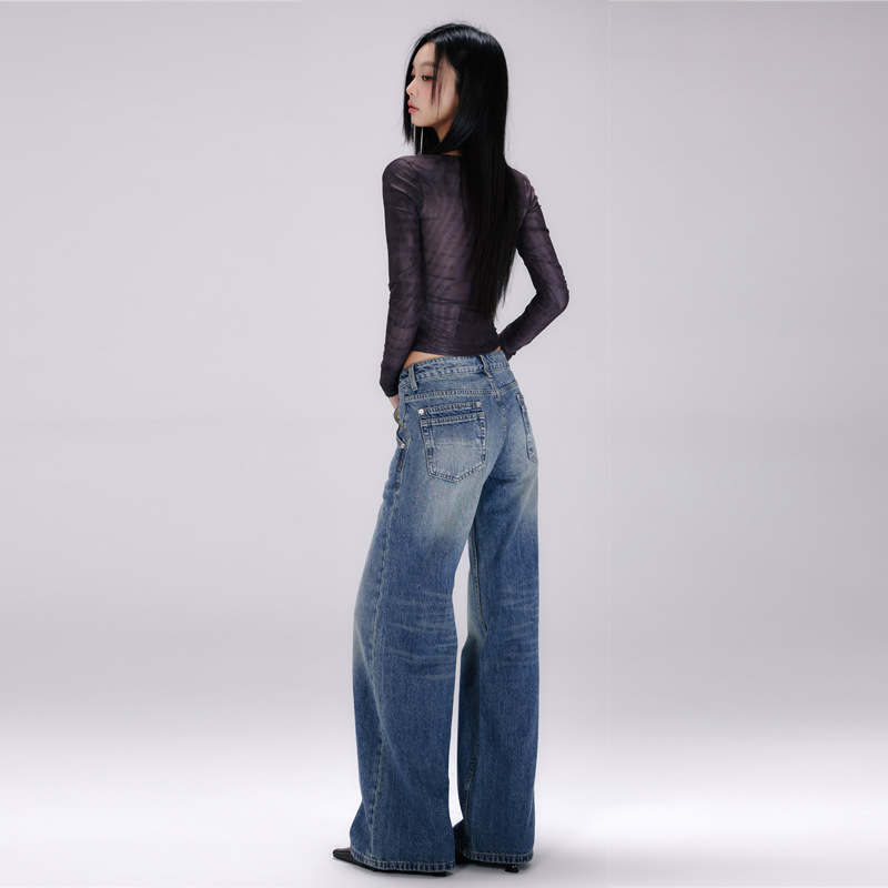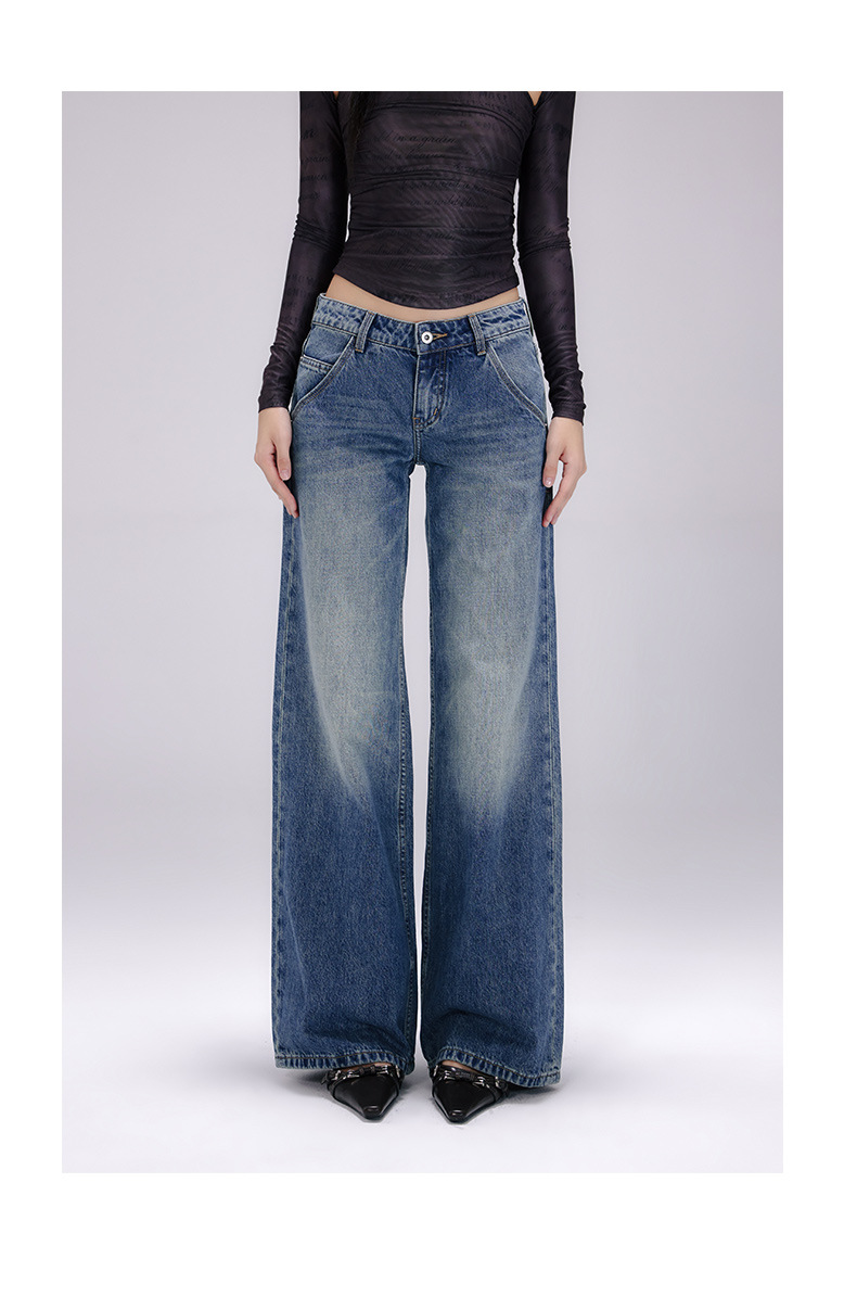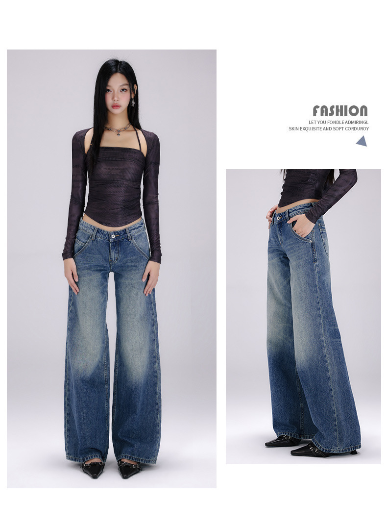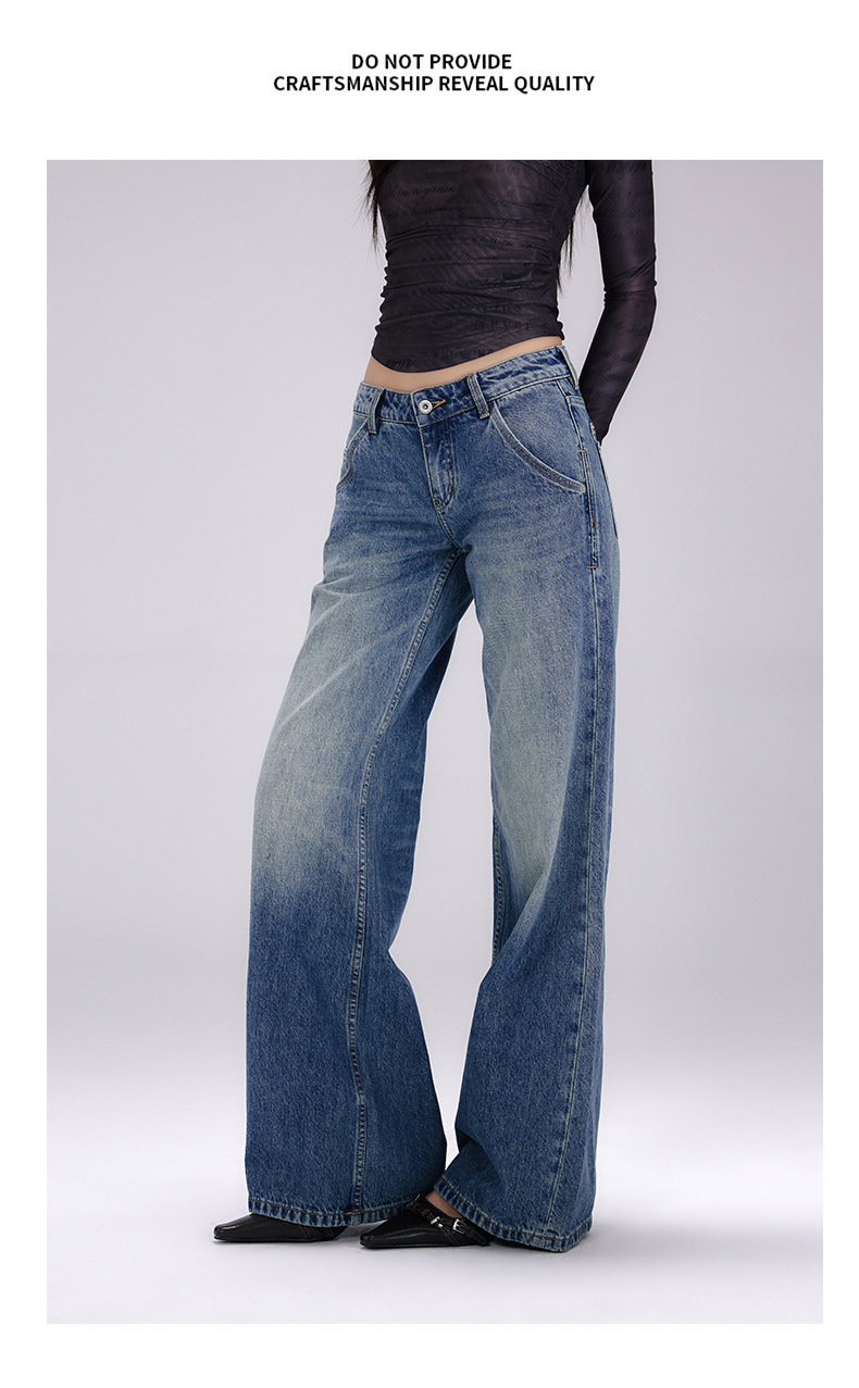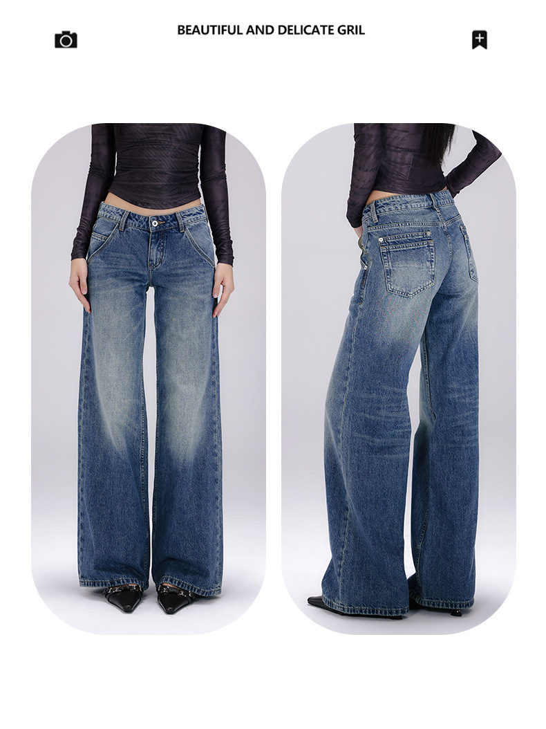 [진인] 미국 복고풍 낮은 허리 오래 씻은 청바지 여성의 느슨한 슬리밍 넓은 다리 스트레이트 바지스토어 가기