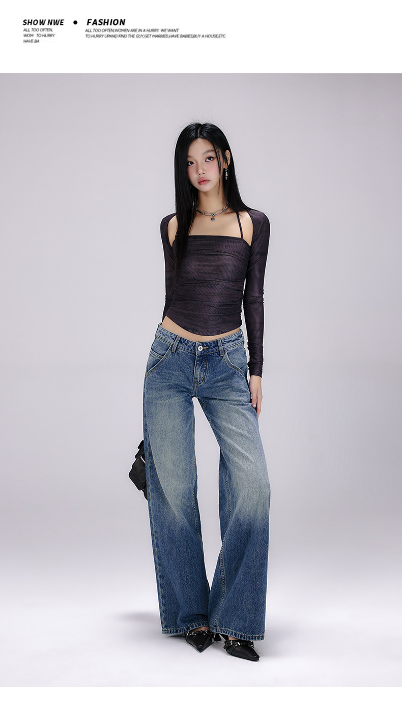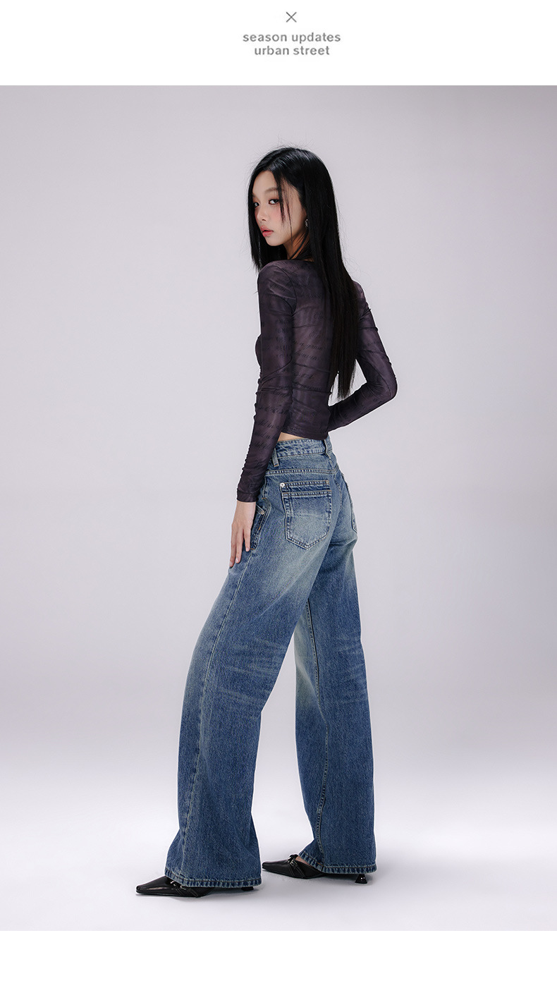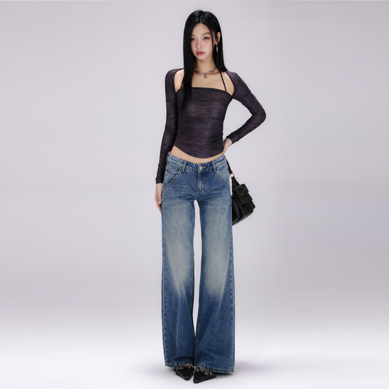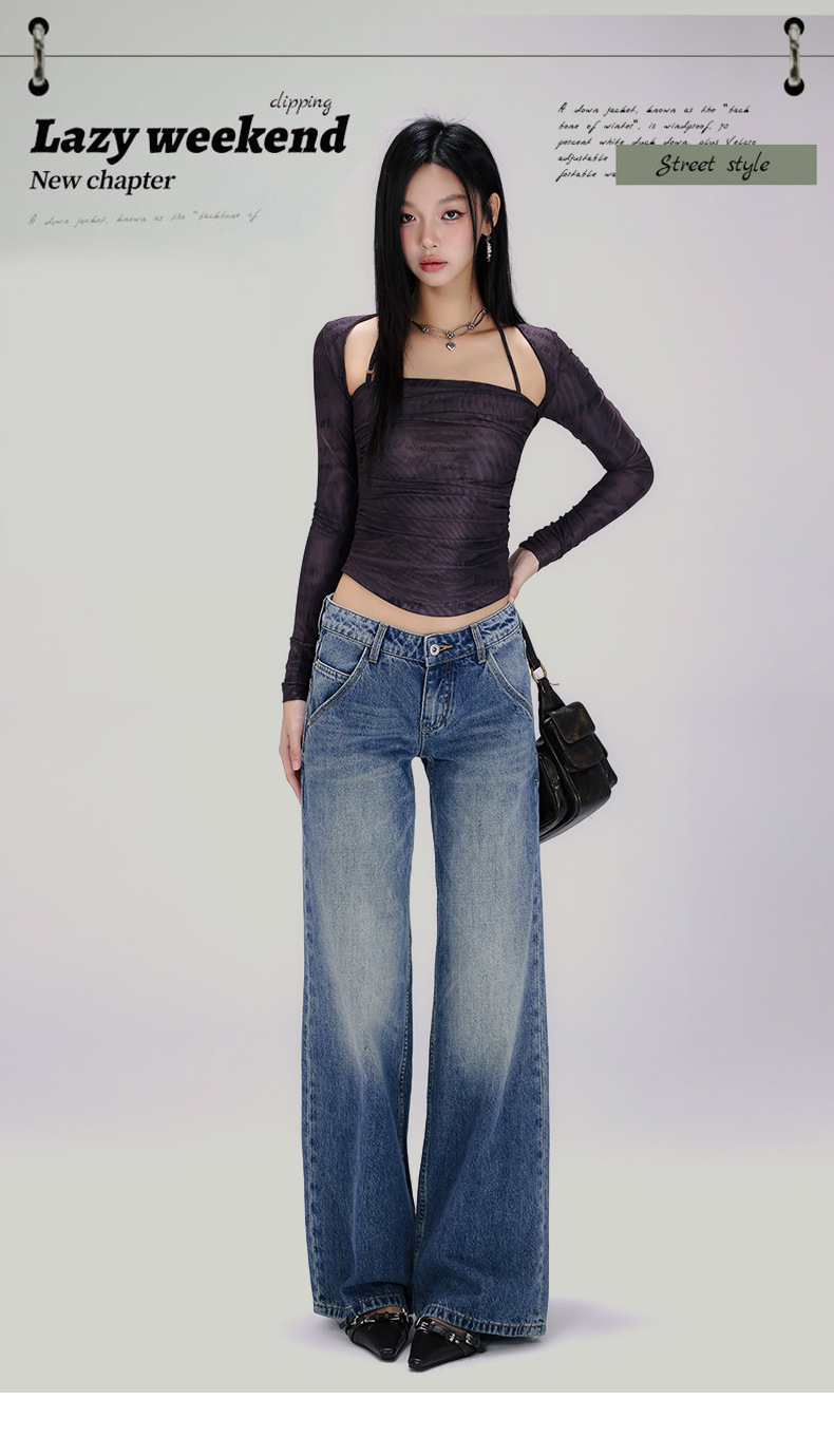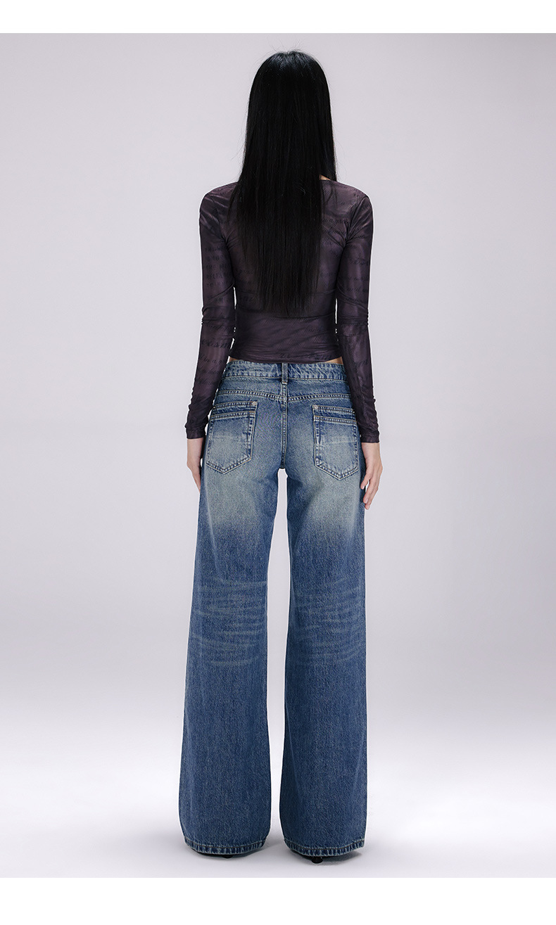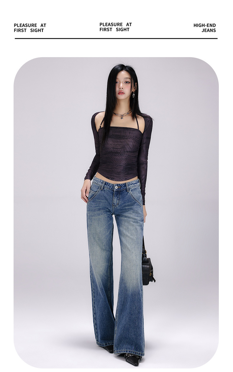 [진인] 미국 복고풍 낮은 허리 오래 씻은 청바지 여성의 느슨한 슬리밍 넓은 다리 스트레이트 바지스토어 가기