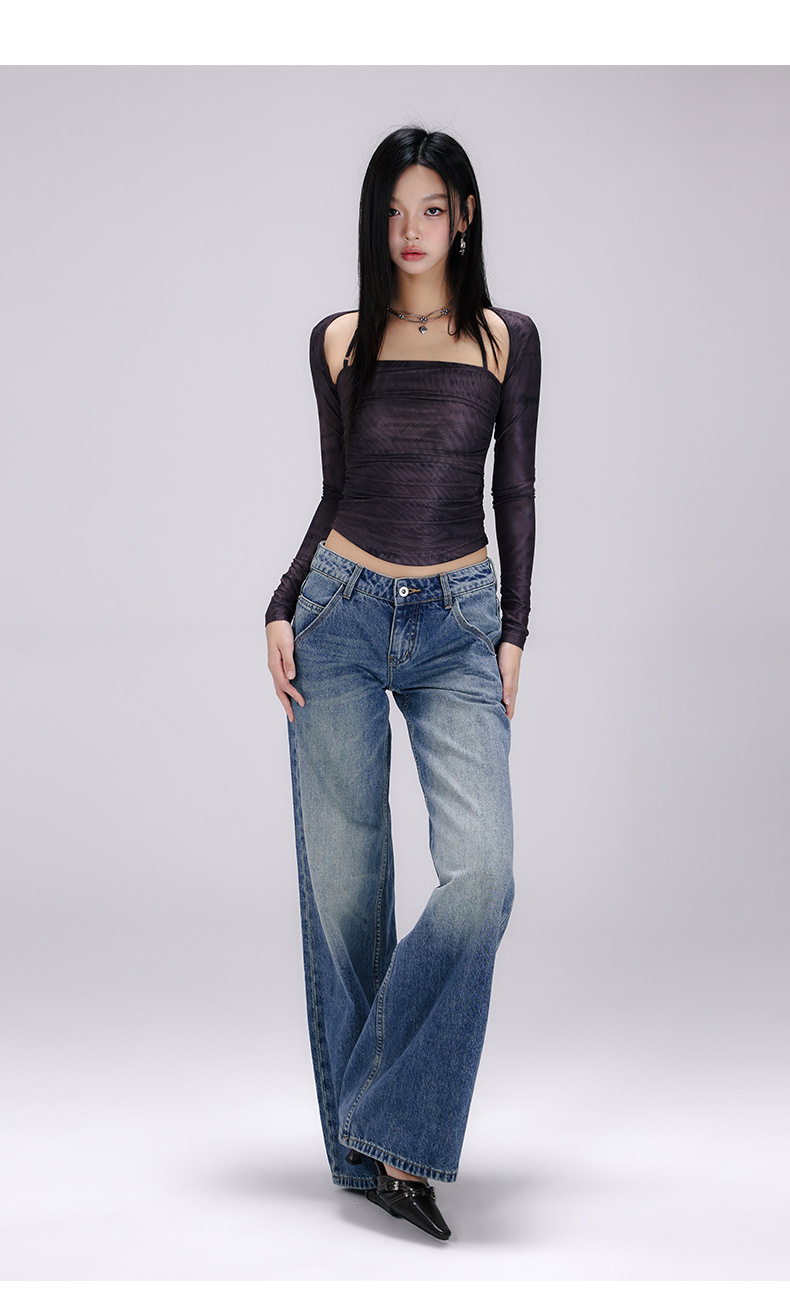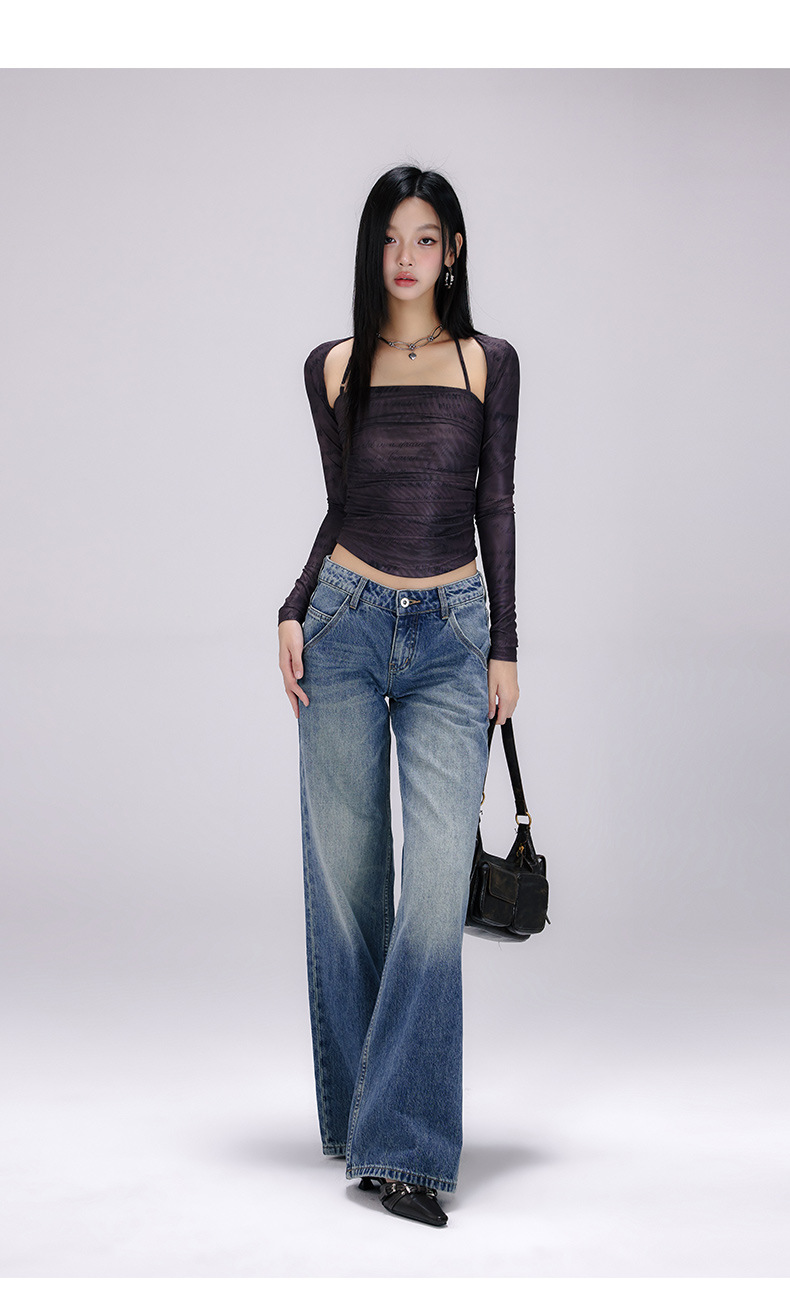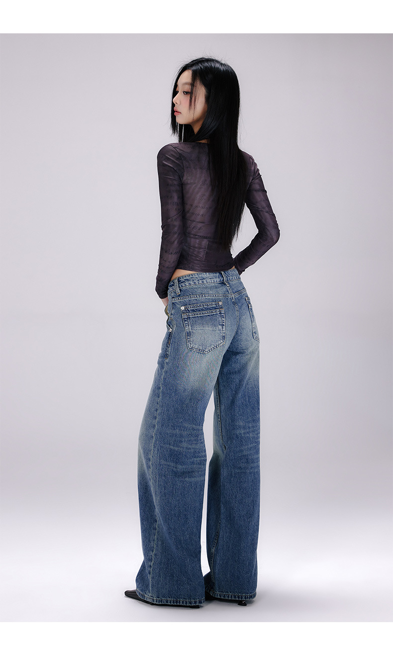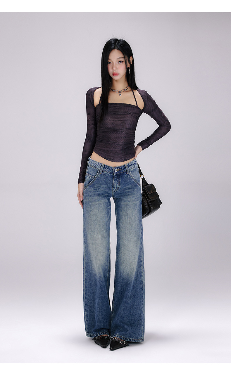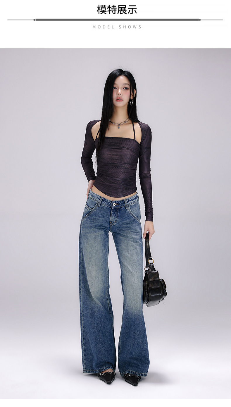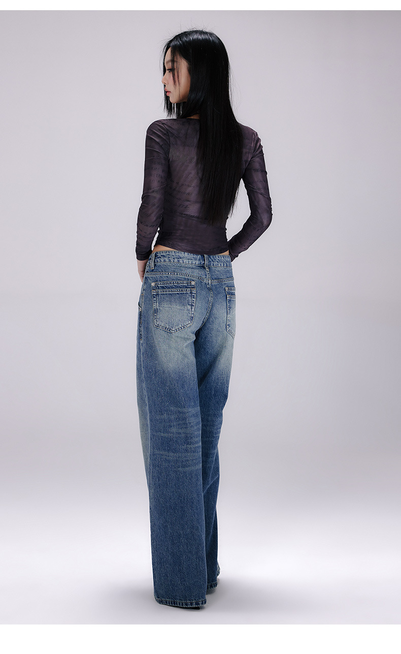 [진인] 미국 복고풍 낮은 허리 오래 씻은 청바지 여성의 느슨한 슬리밍 넓은 다리 스트레이트 바지스토어 가기