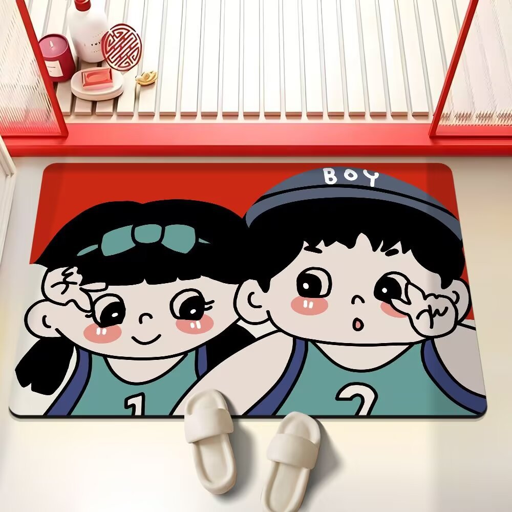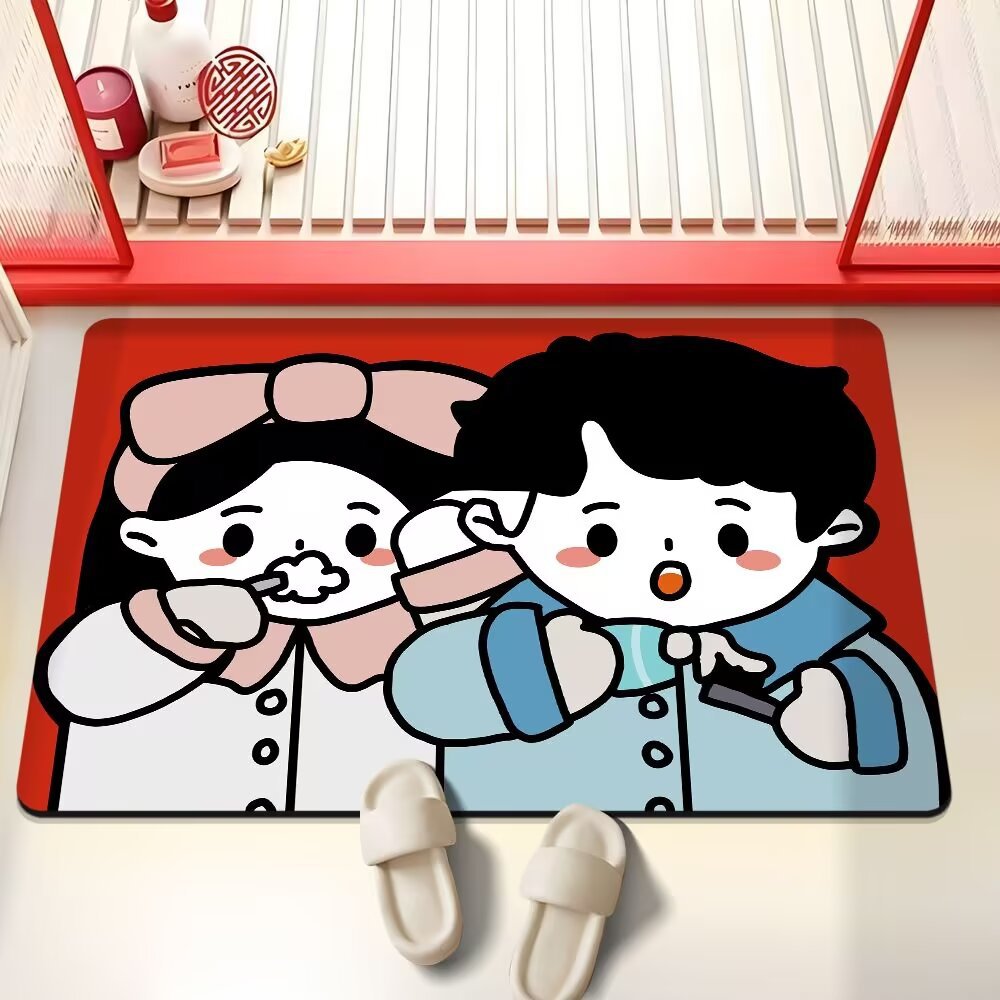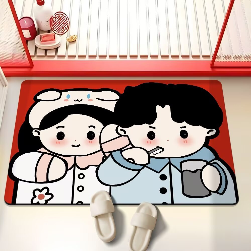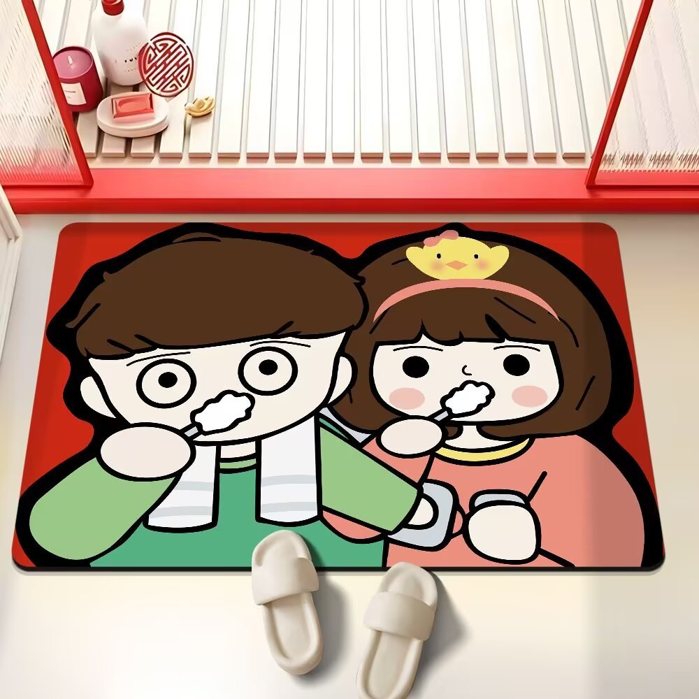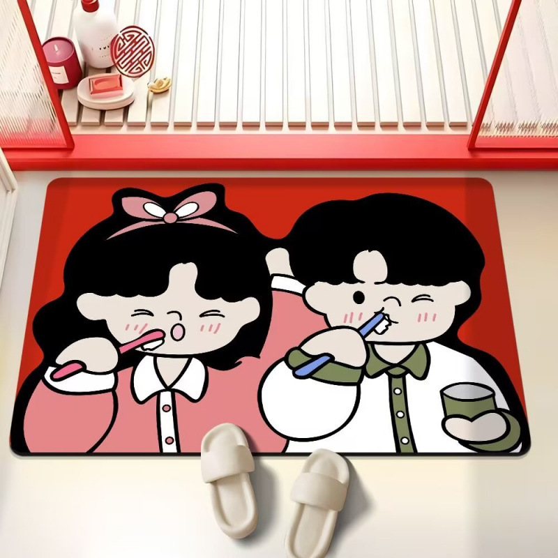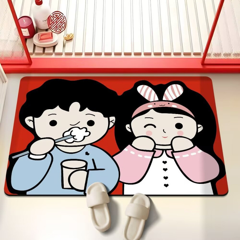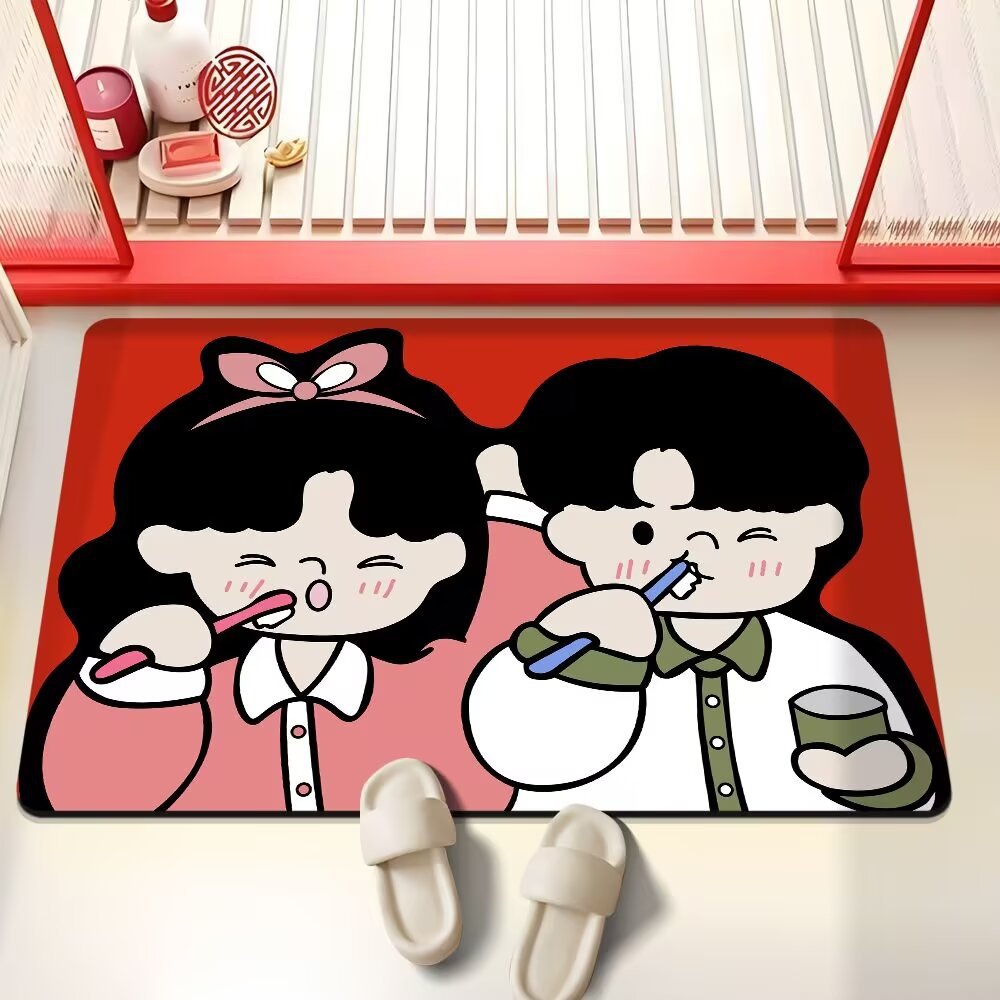 만화 커플 Diatom 진흙 매트 욕실 빠른 건조 발 매트 화장실 문 흡수성 발 매트 청소하기 쉬운스토어 가기
