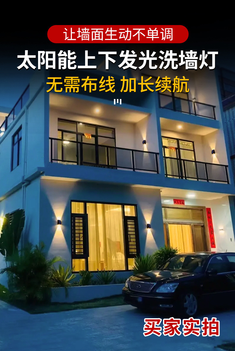 Hqa 태양 야외 벽 램프 안뜰 풍경 장식 램프 빌라 새로운 정원 벽 스포트라이트 방수 세척 X20스토어 가기
