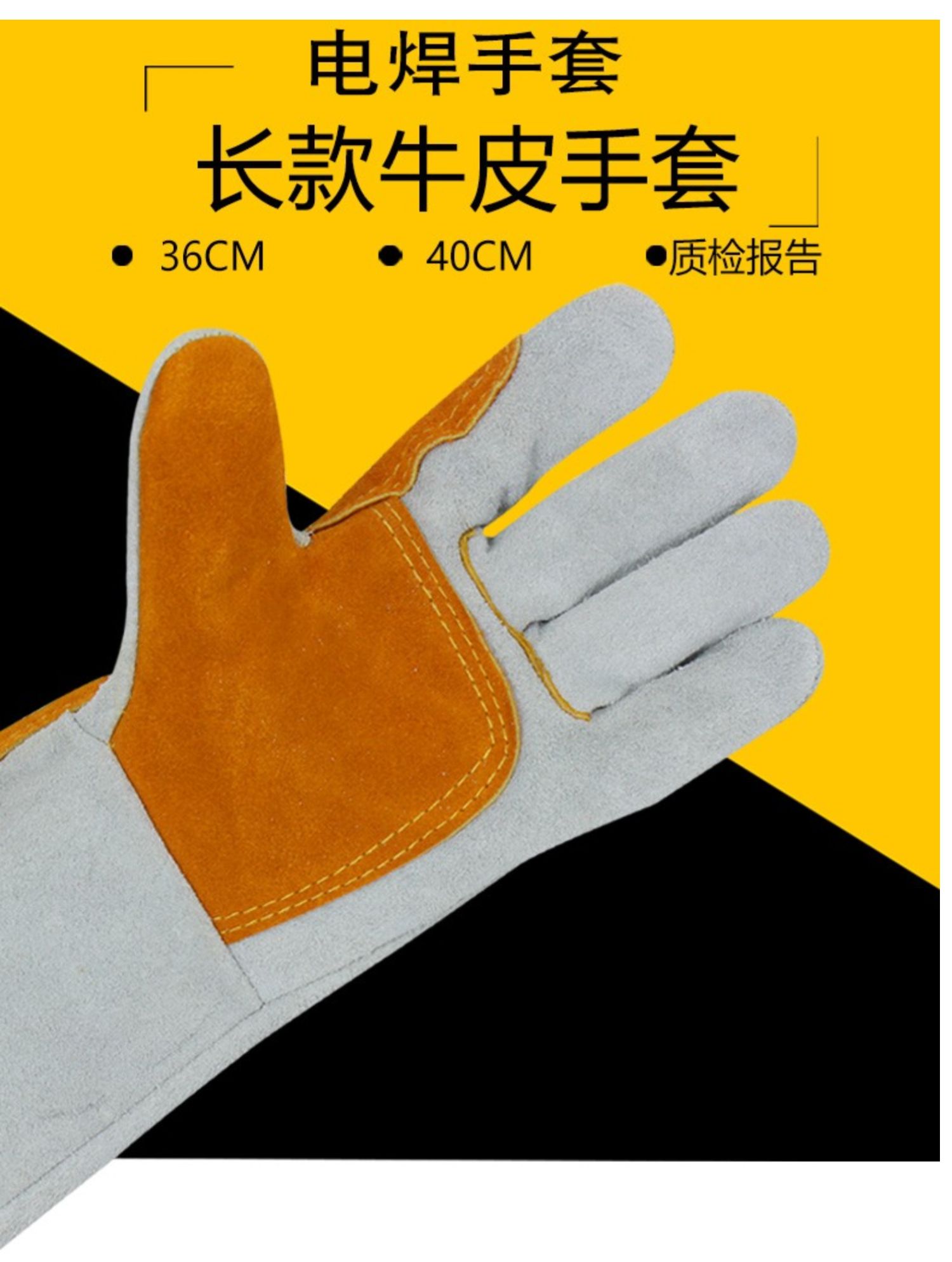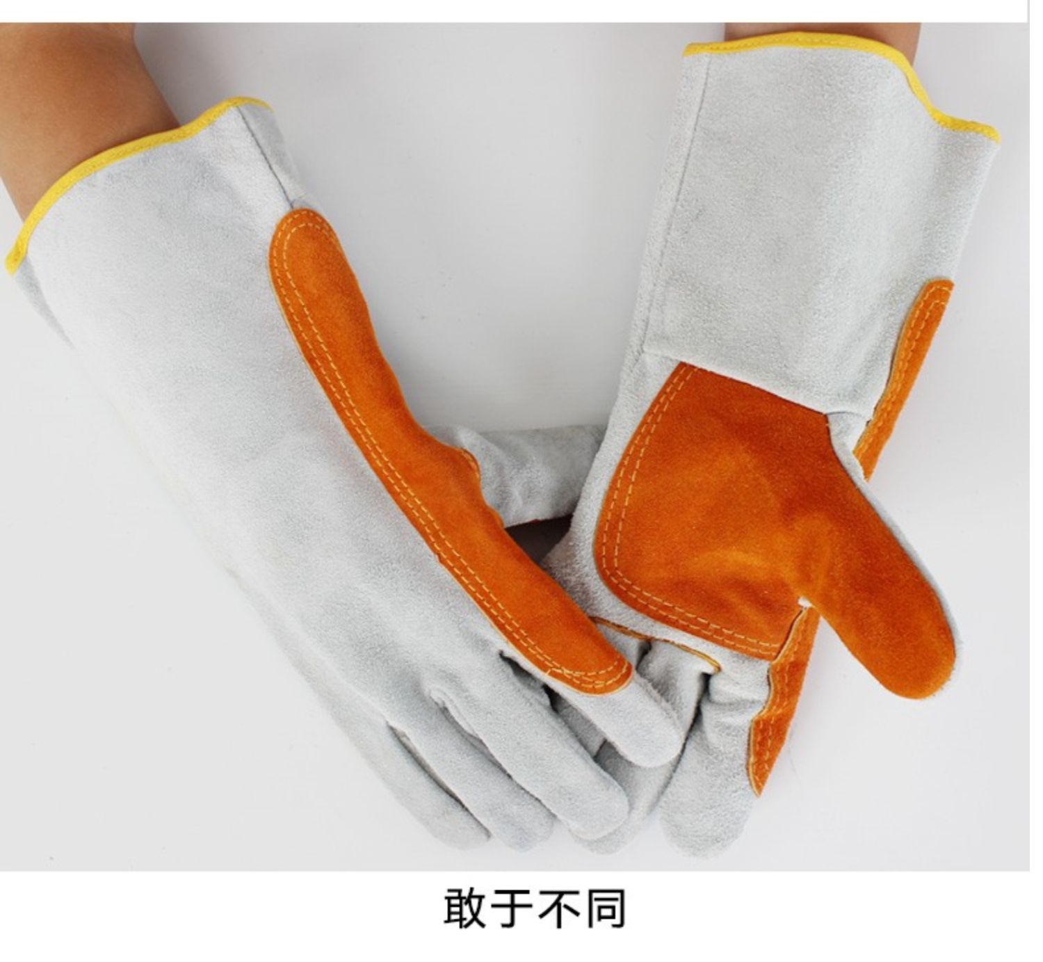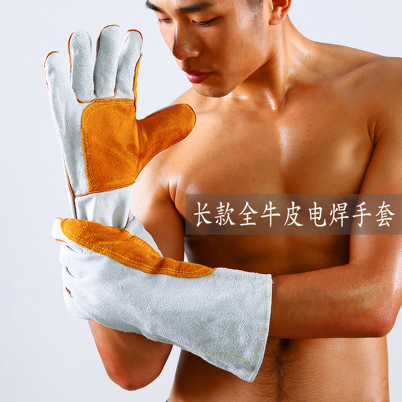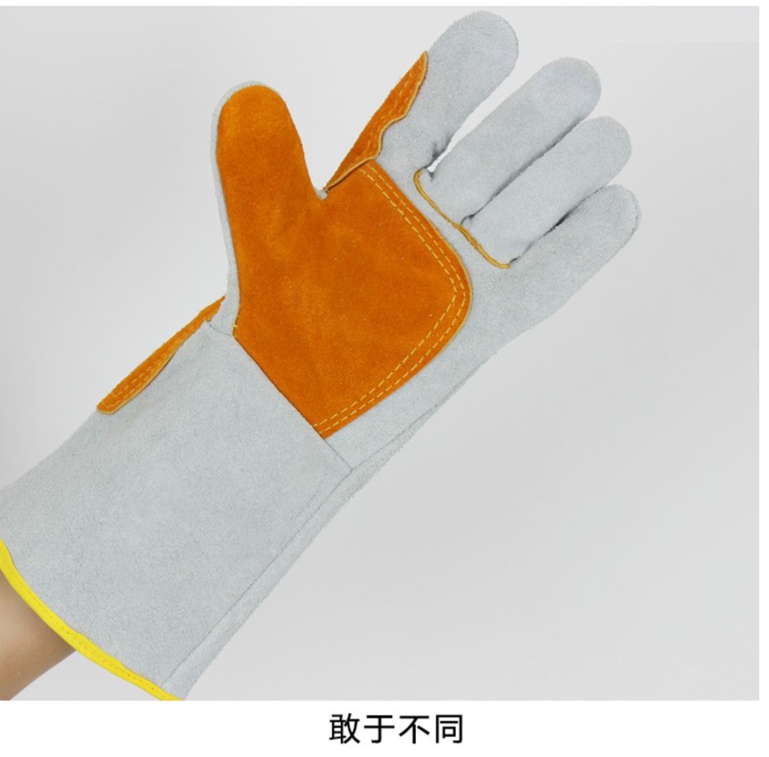 좋은 보호 긴 전체 소 가죽 전기 용접 장갑 용접기 용접 단열 강철 공장 산업 노동 보호 장갑