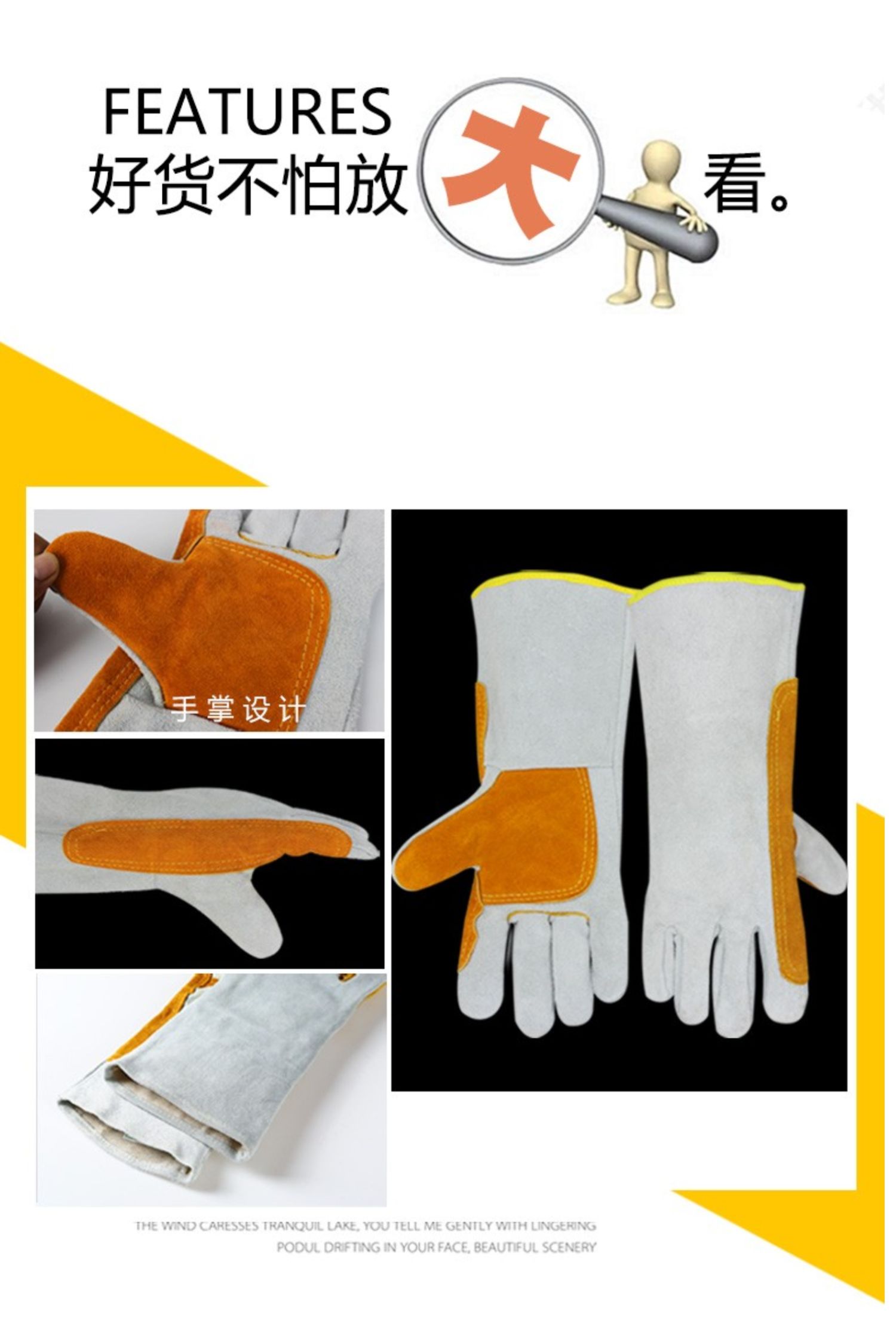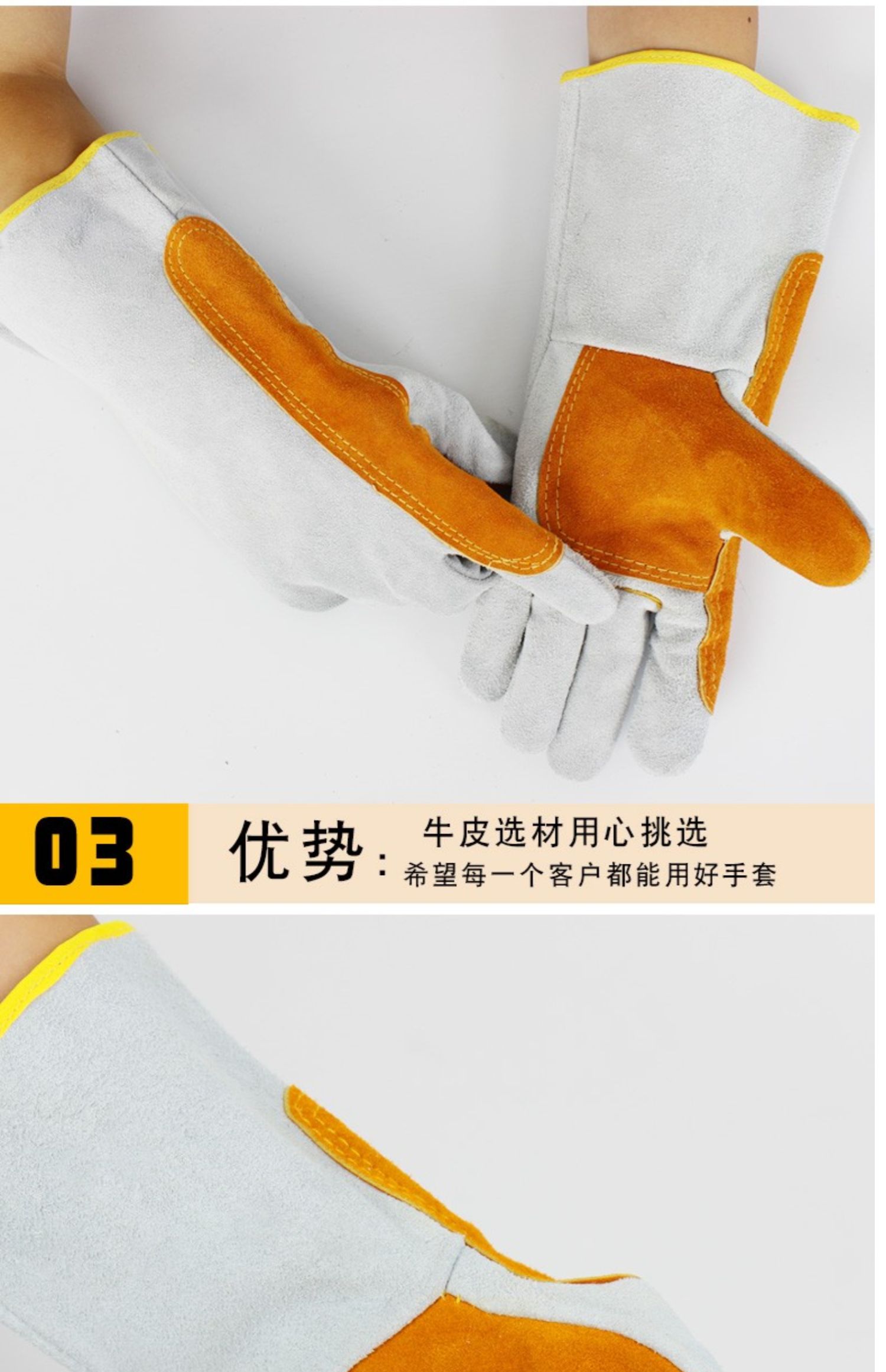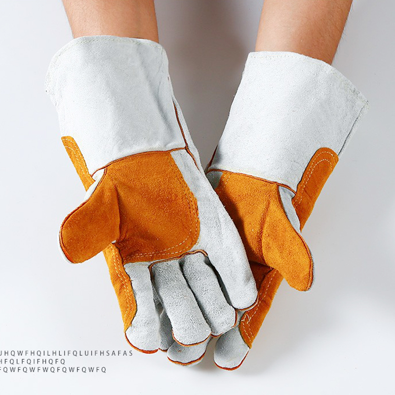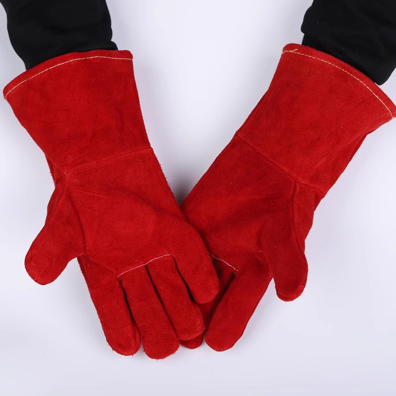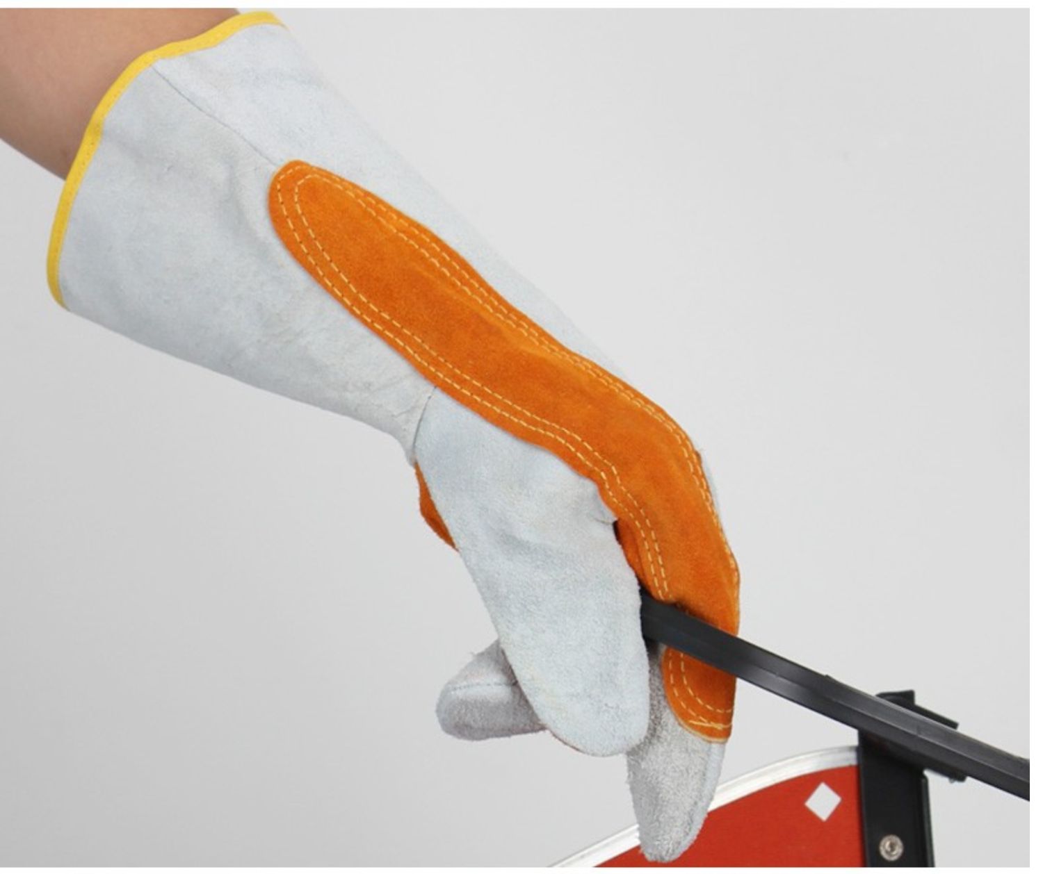 좋은 보호 긴 전체 소 가죽 전기 용접 장갑 용접기 용접 단열 강철 공장 산업 노동 보호 장갑