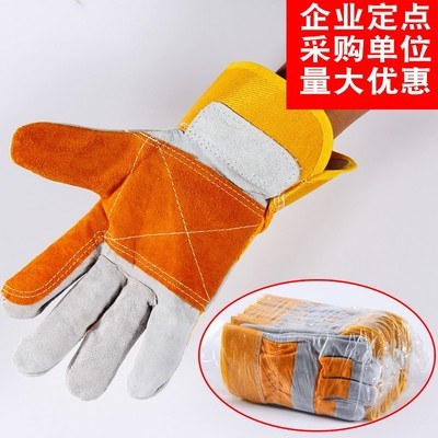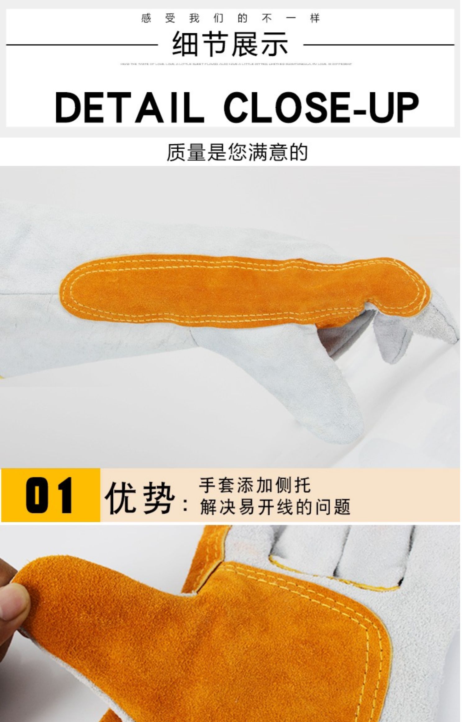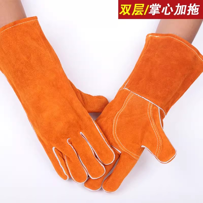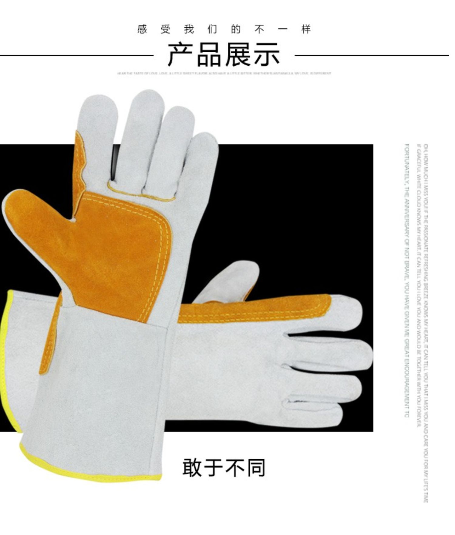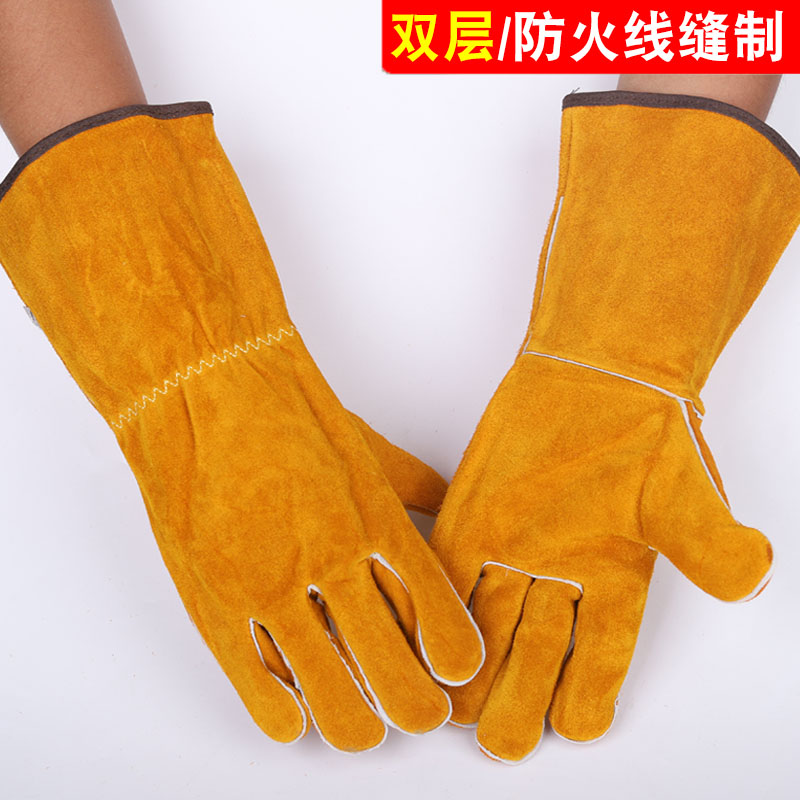 좋은 보호 긴 전체 소 가죽 전기 용접 장갑 용접기 용접 단열 강철 공장 산업 노동 보호 장갑