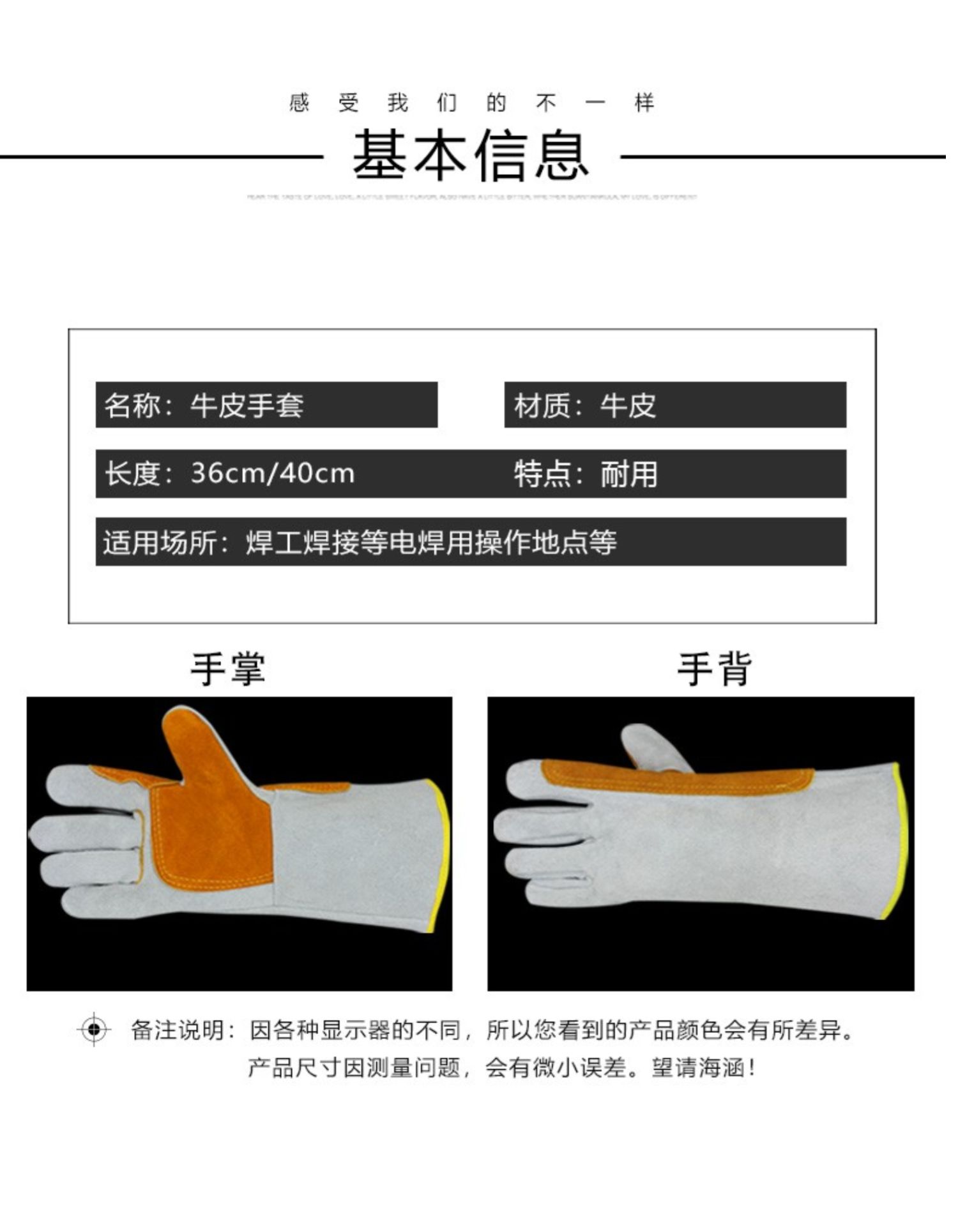 • 하나의 사이즈로 모든 용도에 적합 - 긴 천연 소가죽 용접 장갑(새 모델 - 단일 레이어)