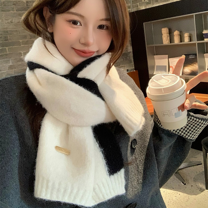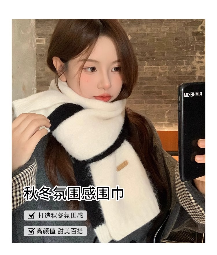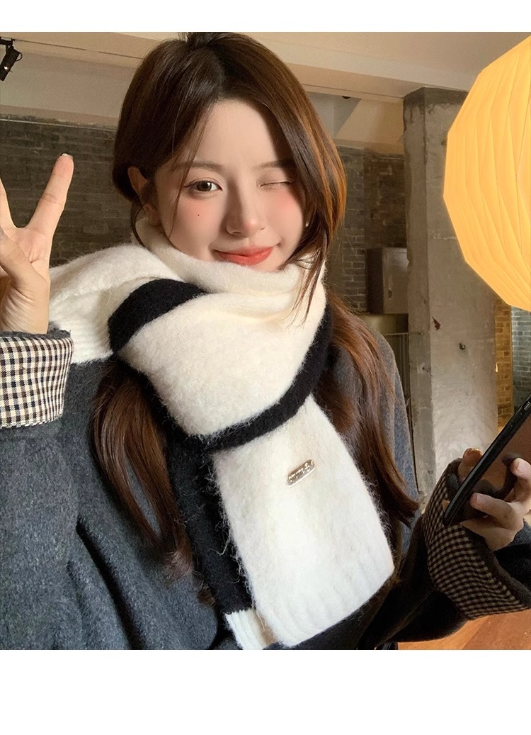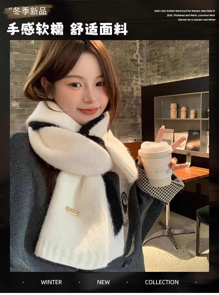 화이트 캐시미어 스카프 여성의 겨울 새로운 한국 스타일 분위기 일치 코트 커플의 따뜻한 목 보호 목 남성 겨울스토어 가기