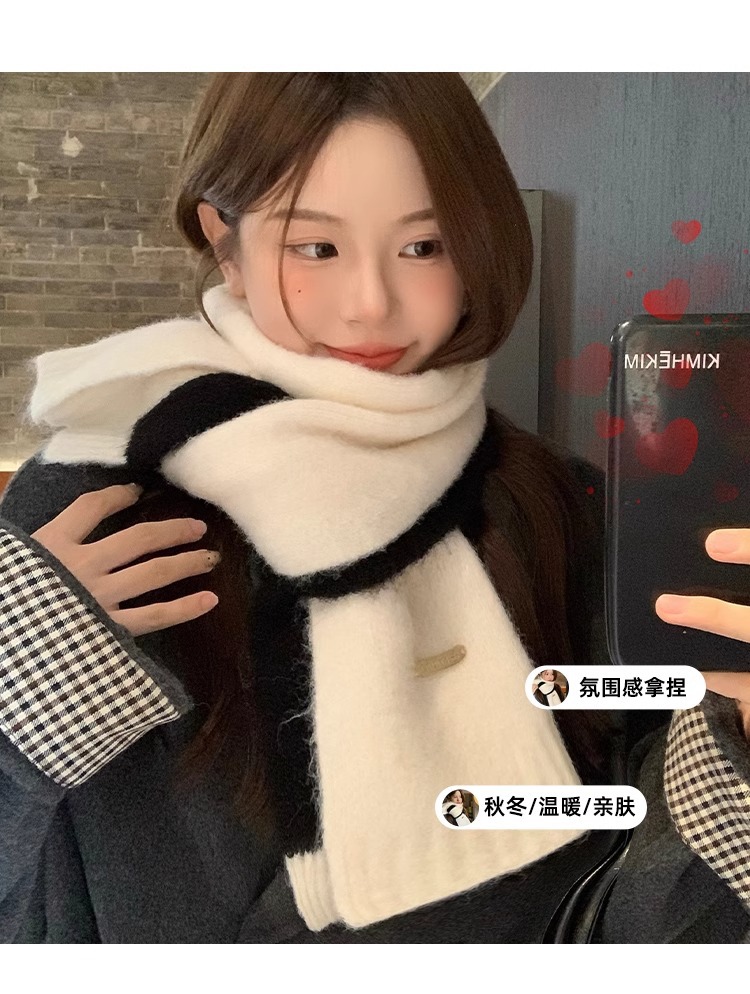 화이트 캐시미어 스카프 여성의 겨울 새로운 한국 스타일 분위기 일치 코트 커플의 따뜻한 목 보호 목 남성 겨울