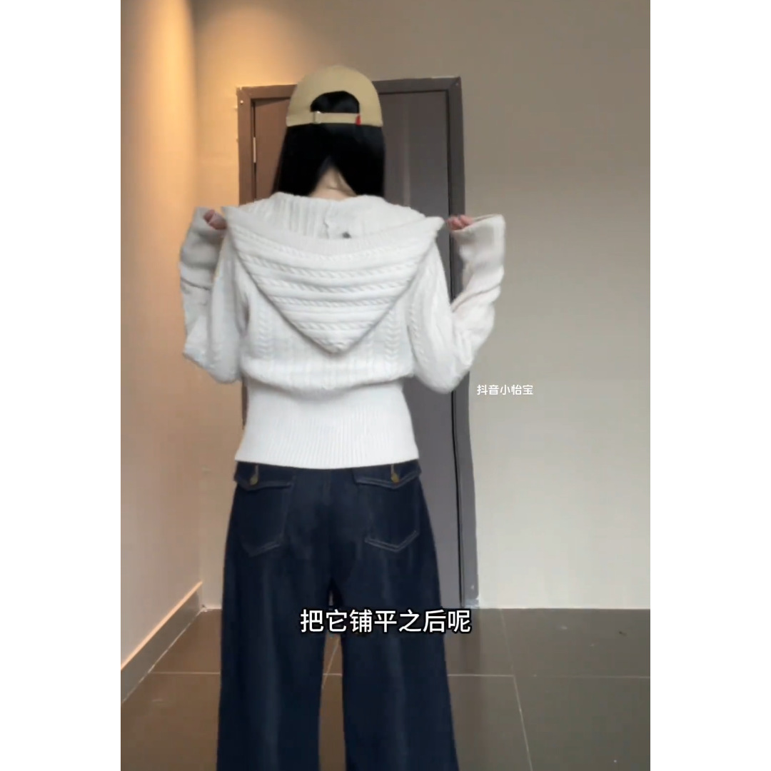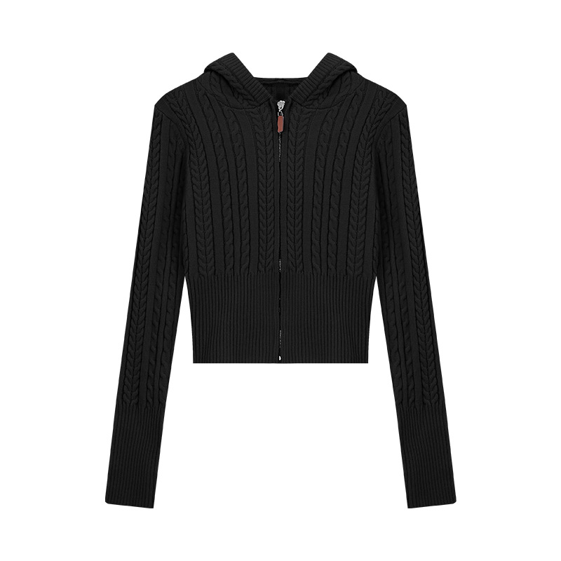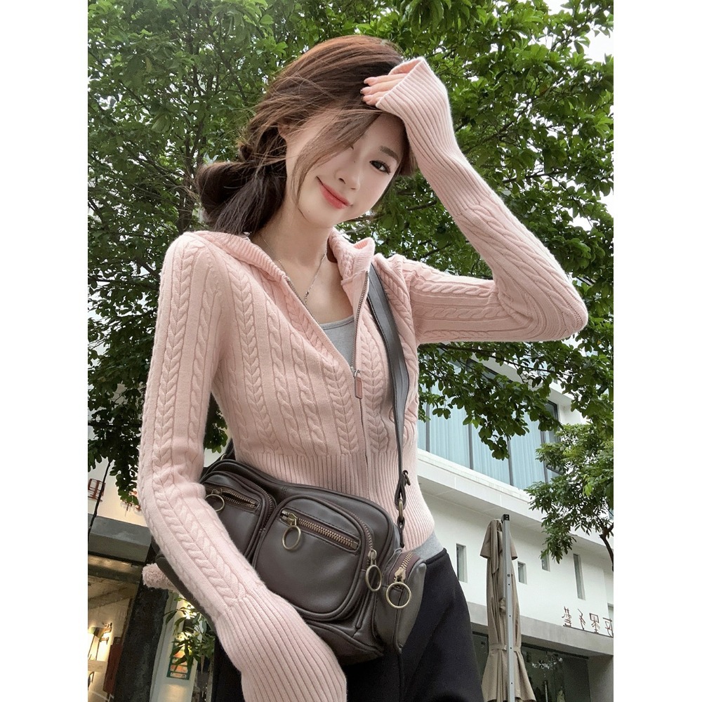 회색 트위스트 지퍼 후드 니트 카디건 여성용 타이트 허리 슬리밍 캐주얼 스웨터 쇼트 스웨터 코트스토어 가기