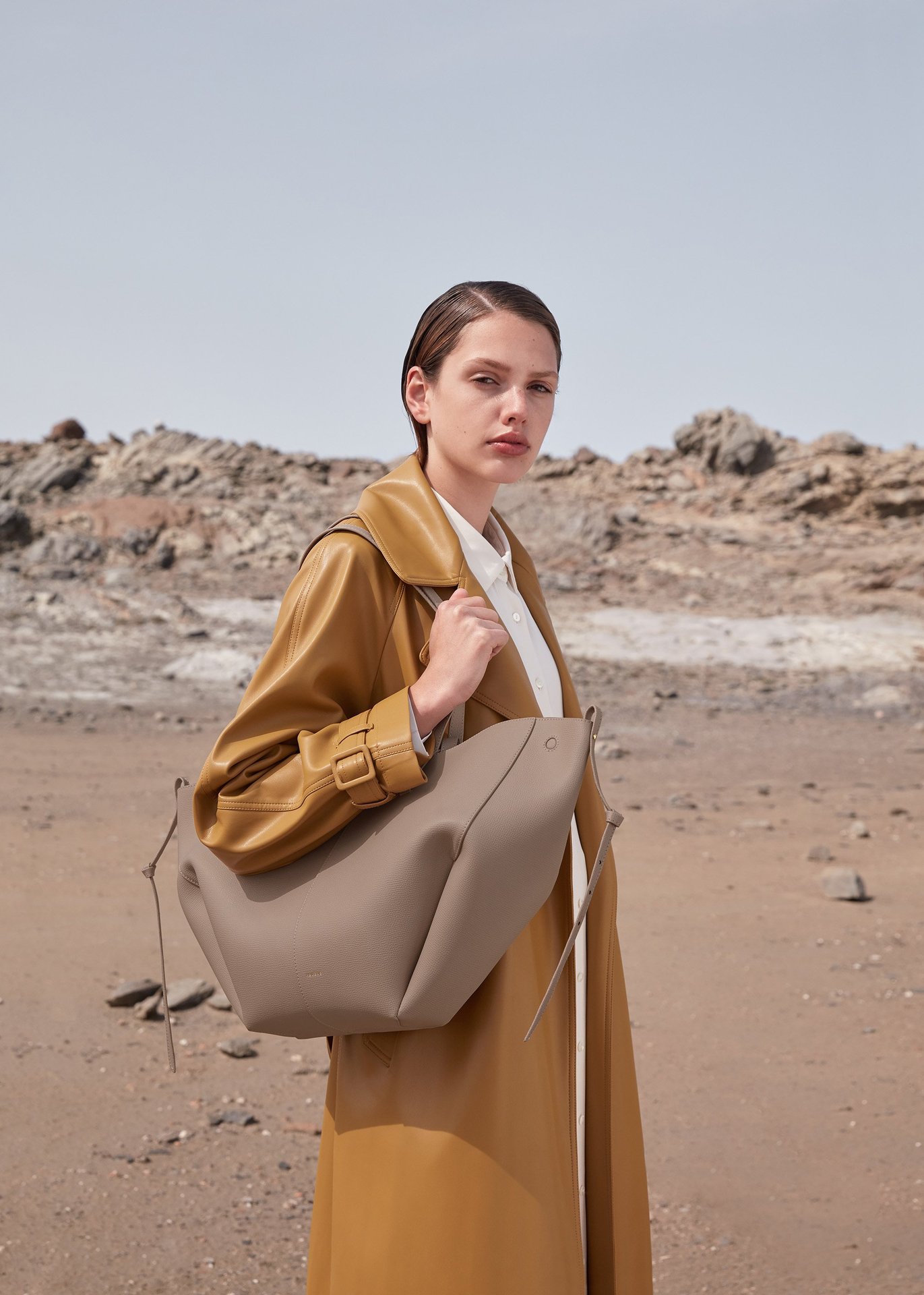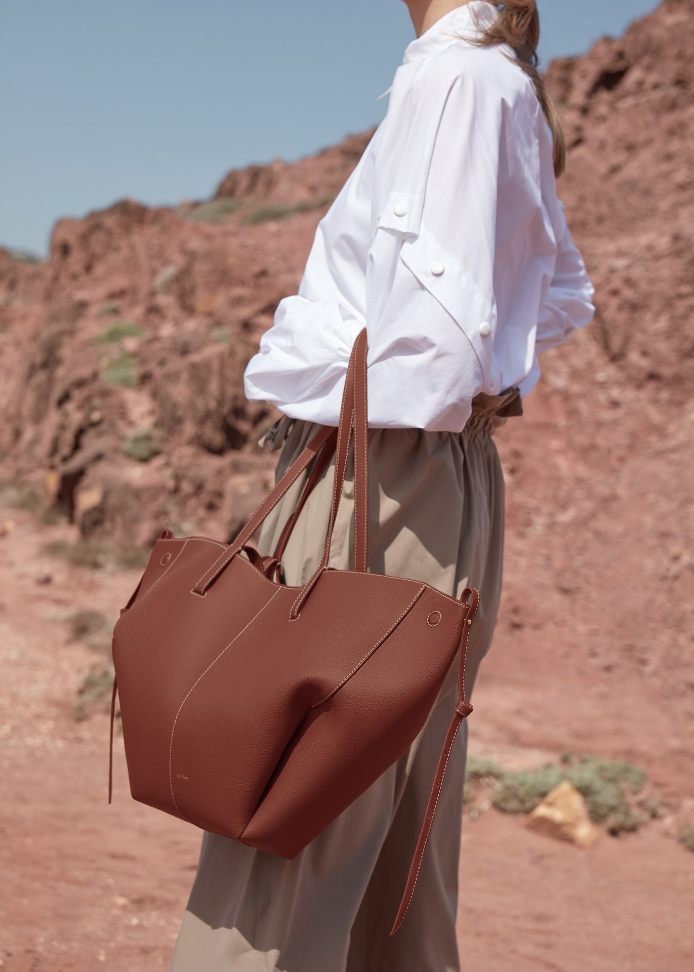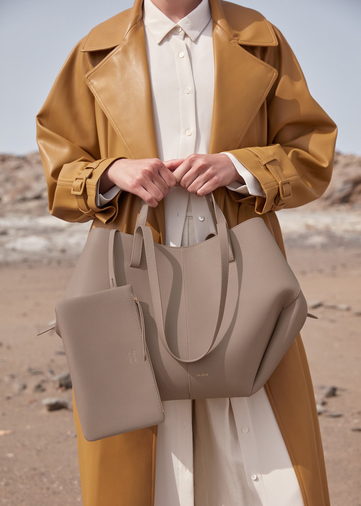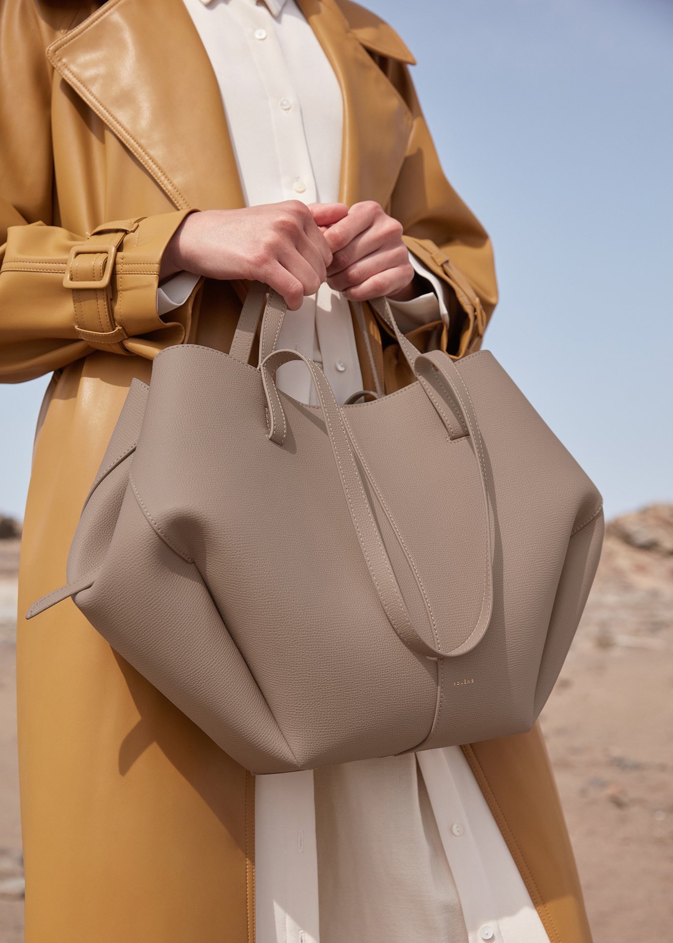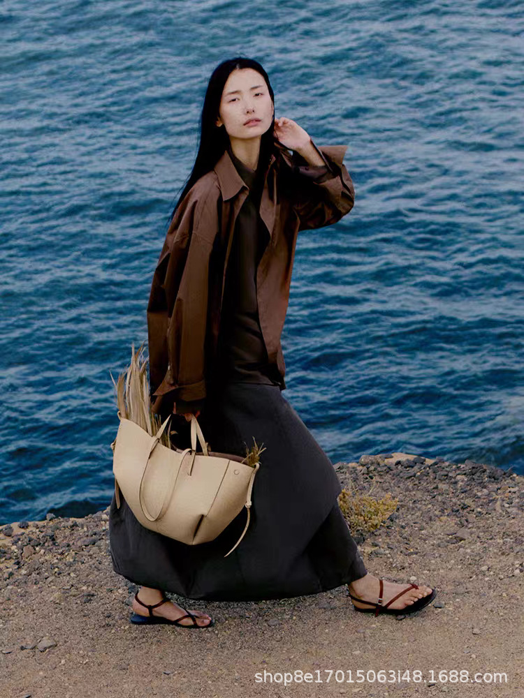 프랑스 틈새 브랜드 가방 Cyme 여성용 가방 POL 가죽 토트 백 2024 대용량 통근 접이식 가방