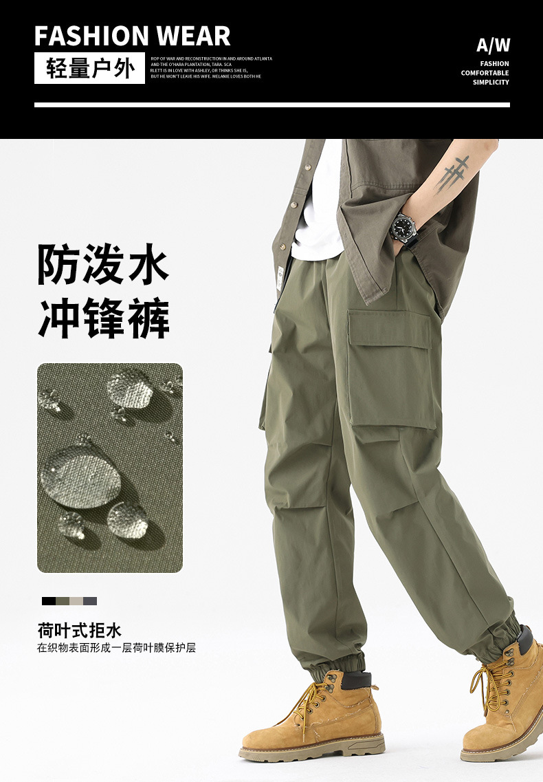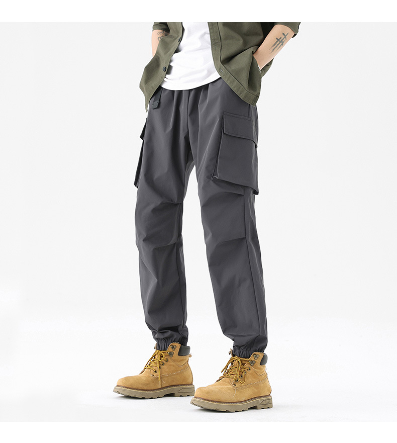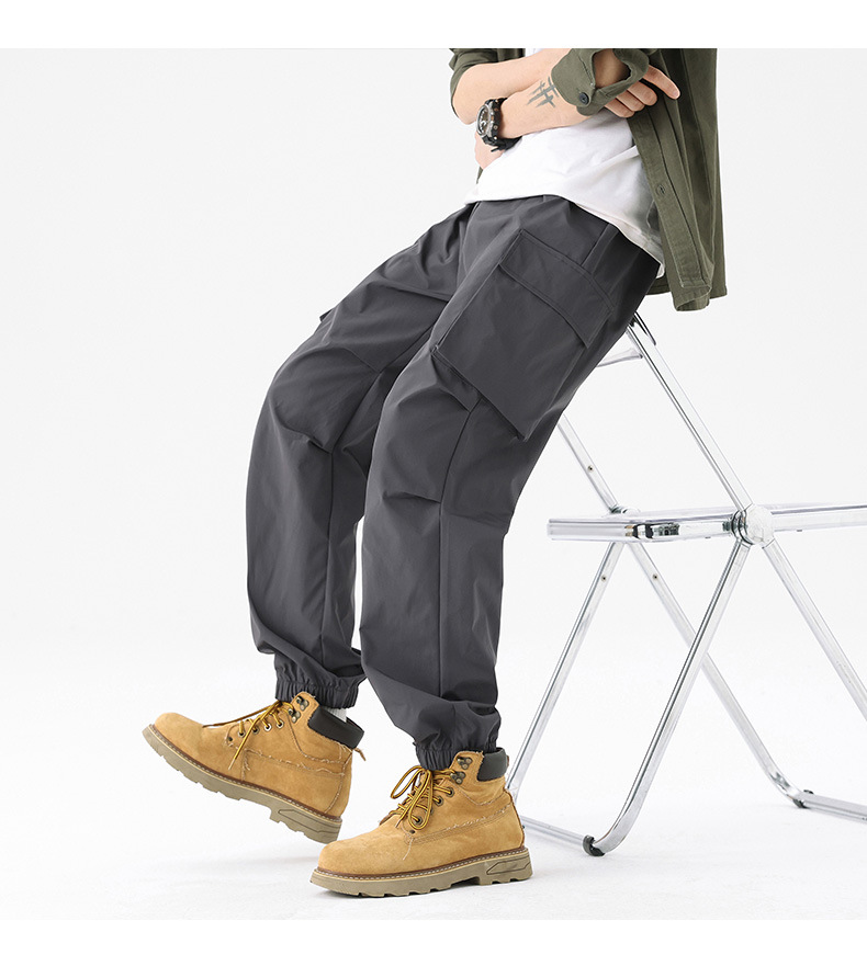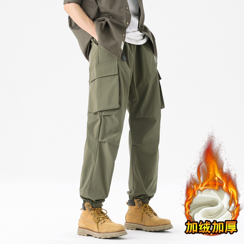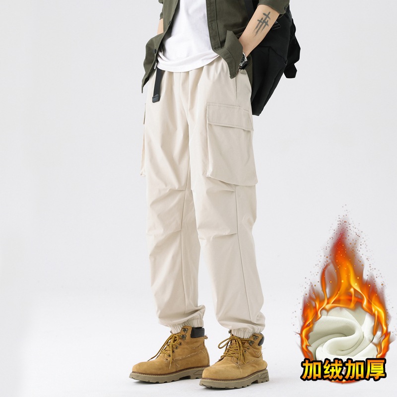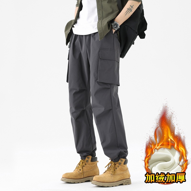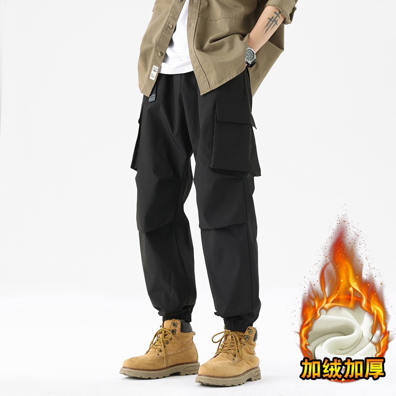 가을과 겨울 기모 두꺼운 충전 바지 방풍 대형 포켓 크레인 바지 벨트 다리 스포츠 바지 남성과 여성