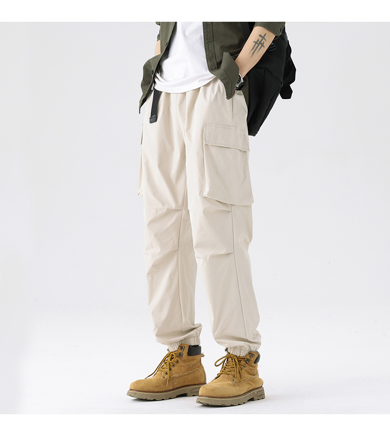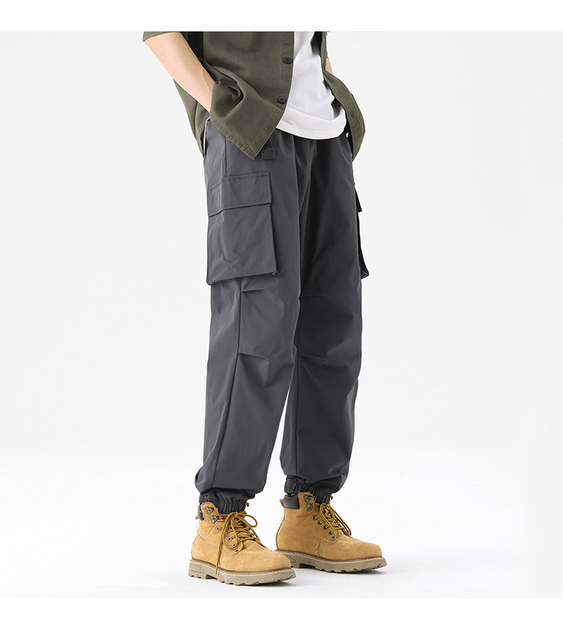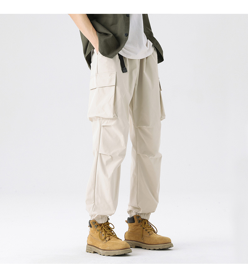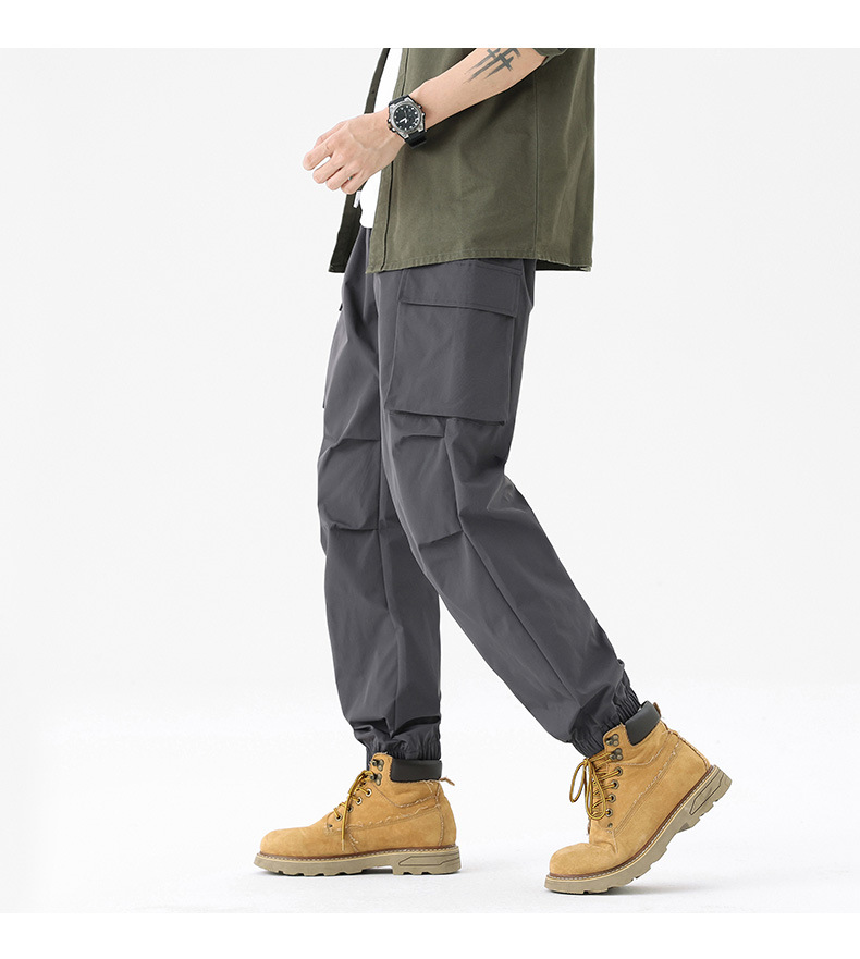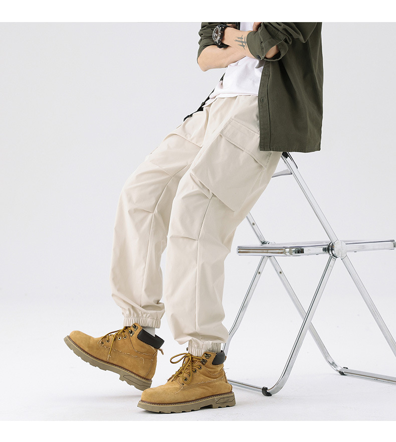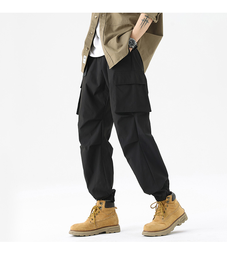 가을과 겨울 기모 두꺼운 충전 바지 방풍 대형 포켓 크레인 바지 벨트 다리 스포츠 바지 남성과 여성
