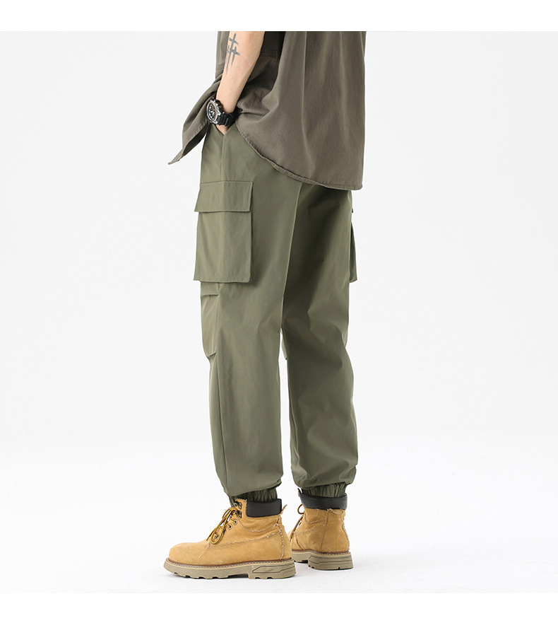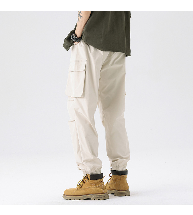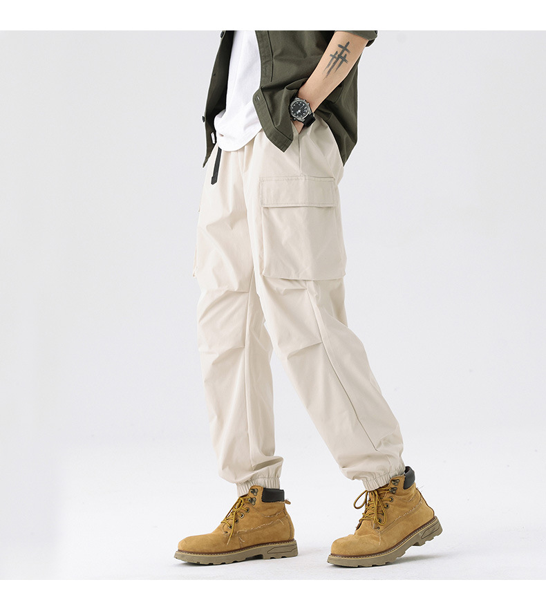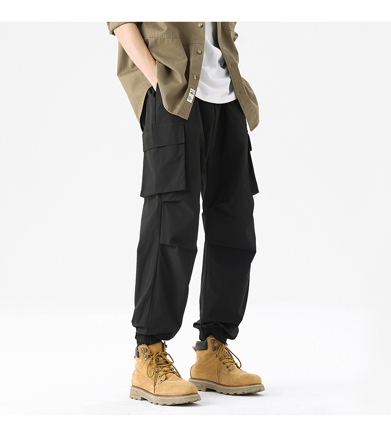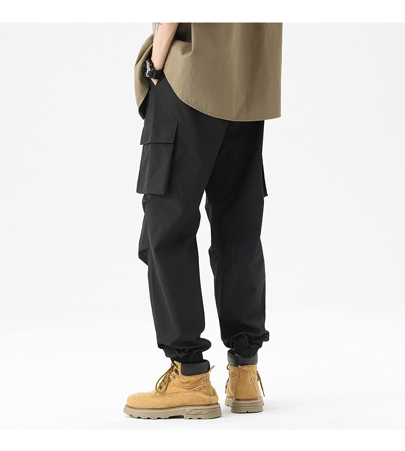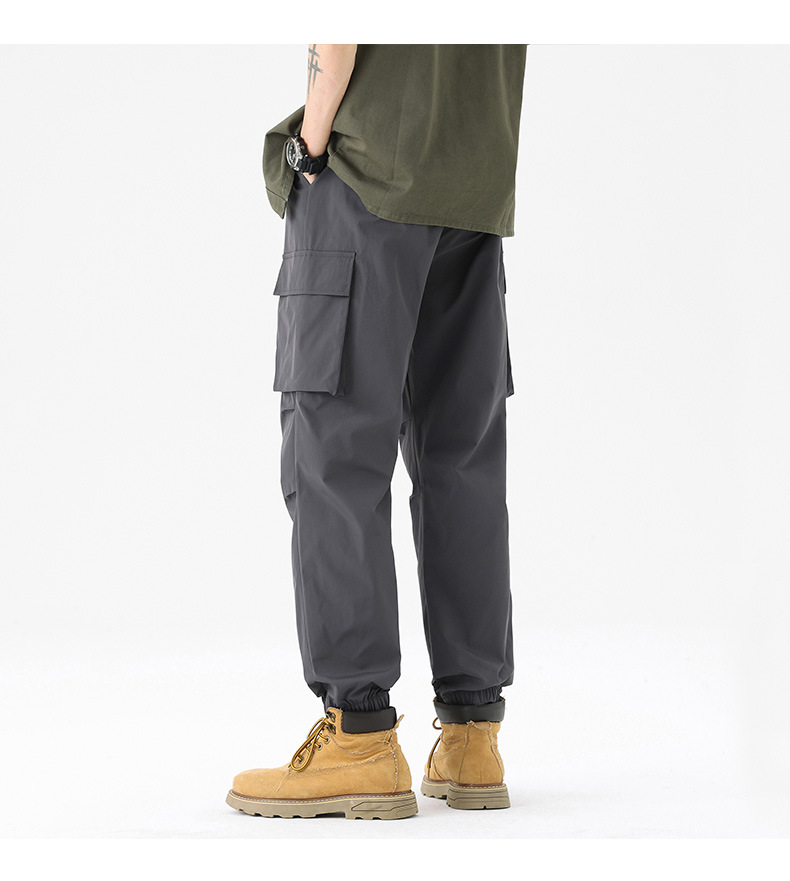 가을과 겨울 기모 두꺼운 충전 바지 방풍 대형 포켓 크레인 바지 벨트 다리 스포츠 바지 남성과 여성