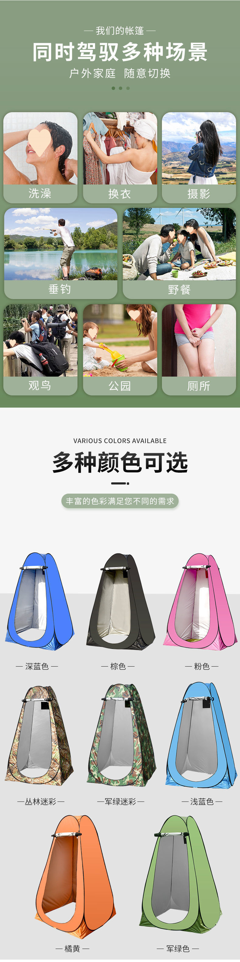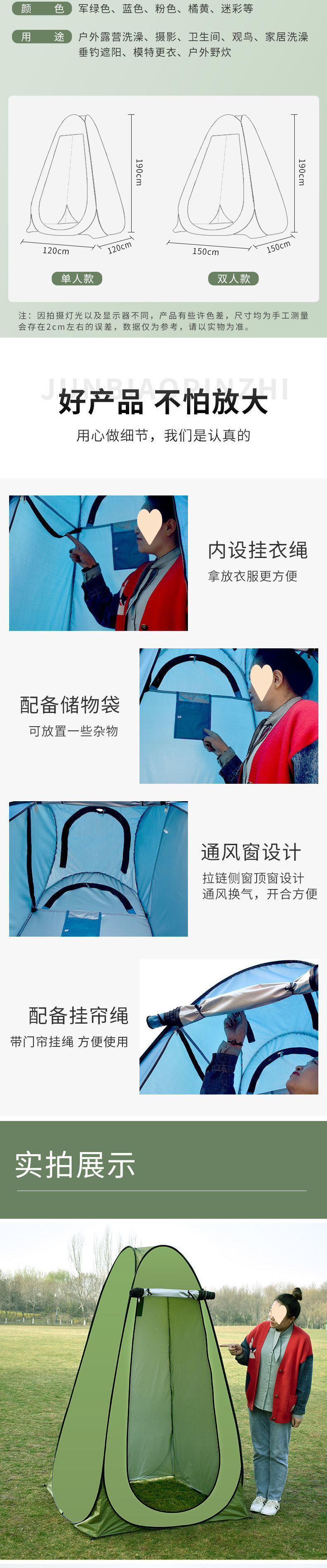 • 위장 목욕 창문 2개 + 보관 가방 걸이 옷 밧줄 바닥 못 방풍 밧줄