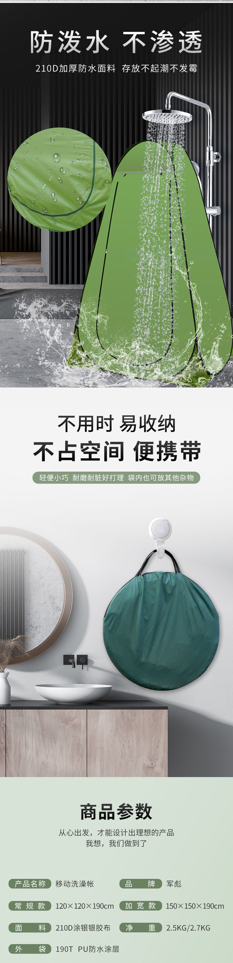 • 업그레이드된 녹색 3창 고정 샤워 앞치마 보관 가방 걸이 옷 끈