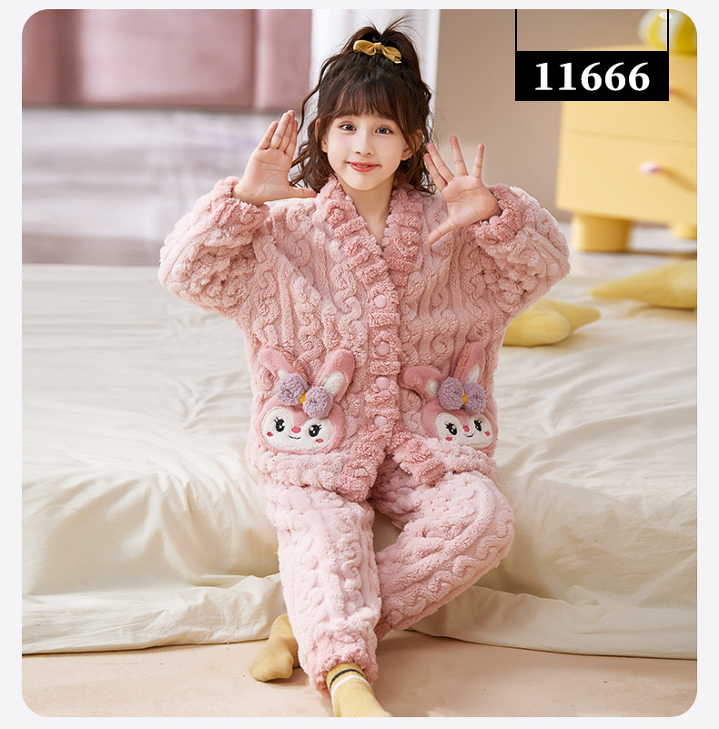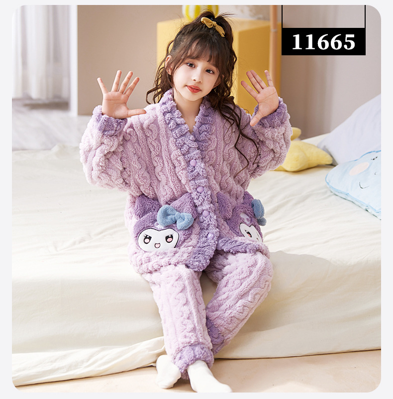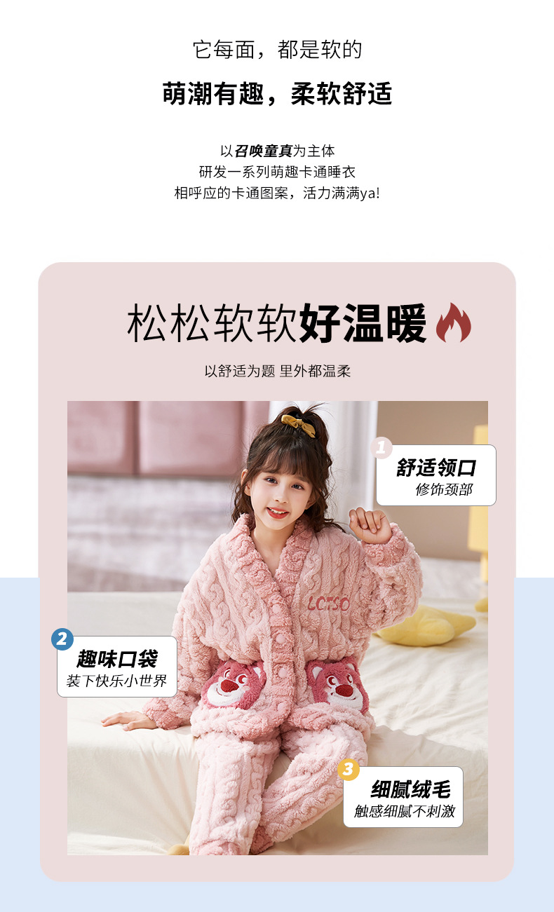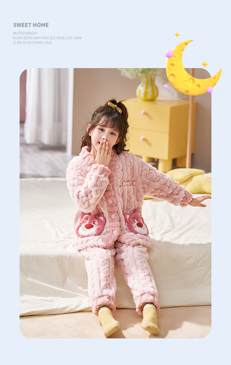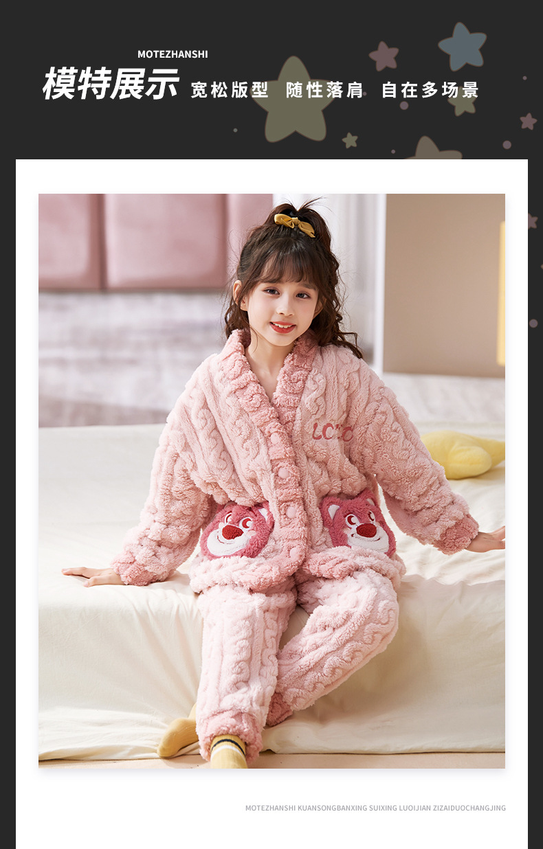 어린이 잠옷 가을, 겨울 두꺼운 산호 벨벳 소녀 아기 플란넬 어린 소녀 2024 겨울 벨벳 양복스토어 가기