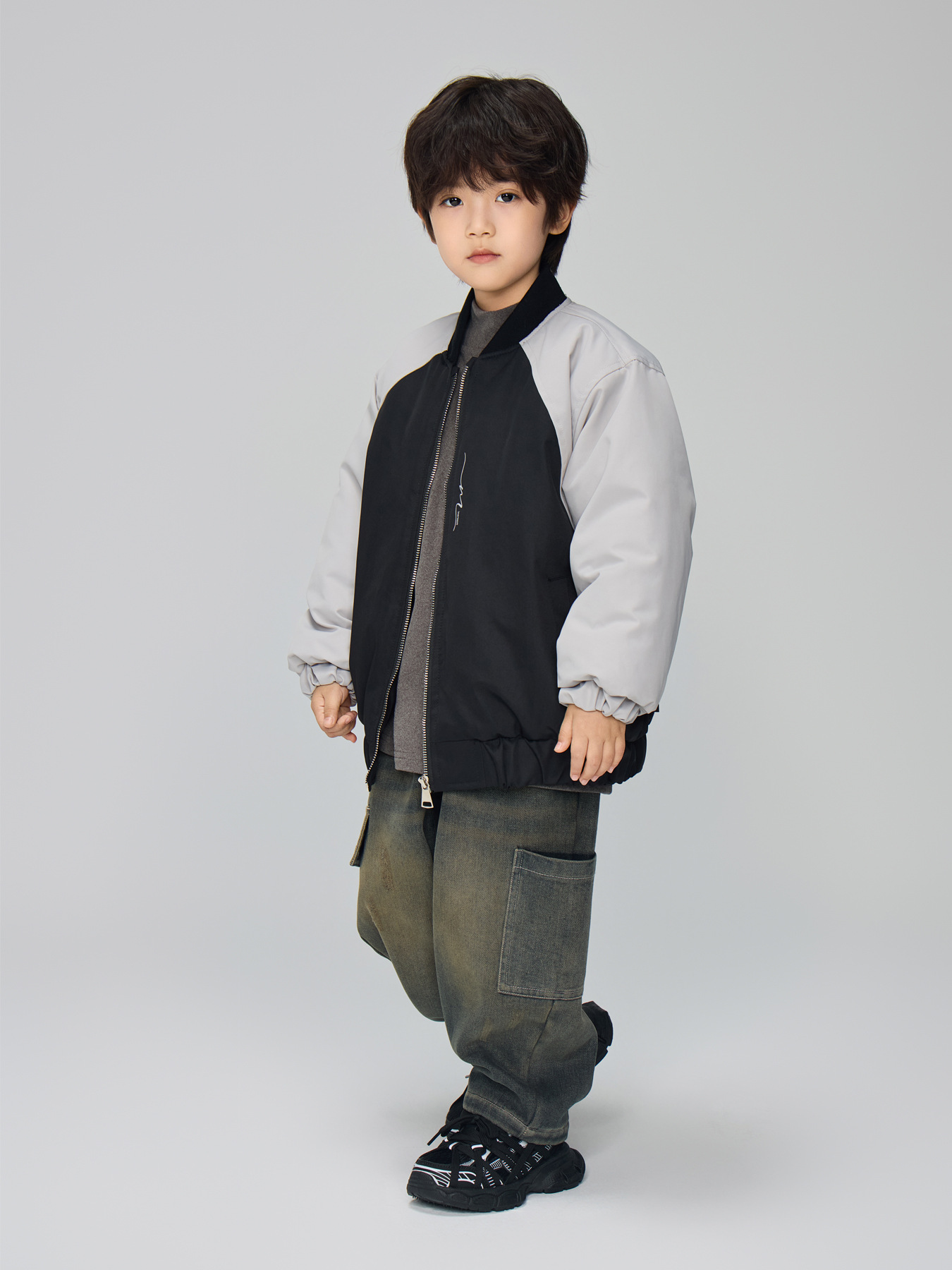 落肩袖宽松连帽版型,胖瘦宝宝都可以轻松驾驭,内里厚实夹棉,温暖有型,