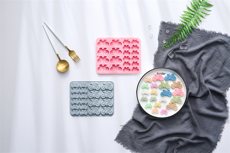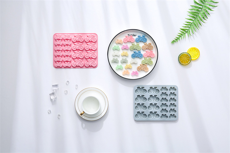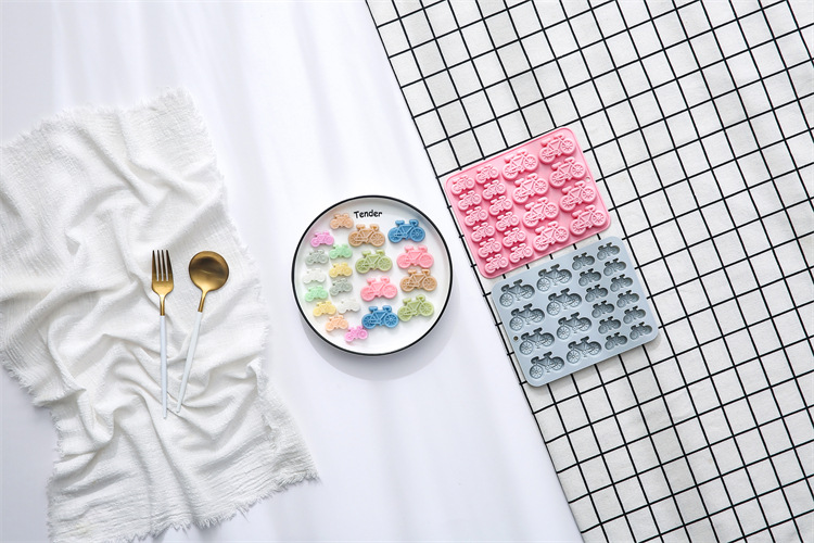 재고 20 다른 크기의 자전거 모양 실리콘 금형 부드러운 사탕 베이킹 케이크 초콜릿 금형