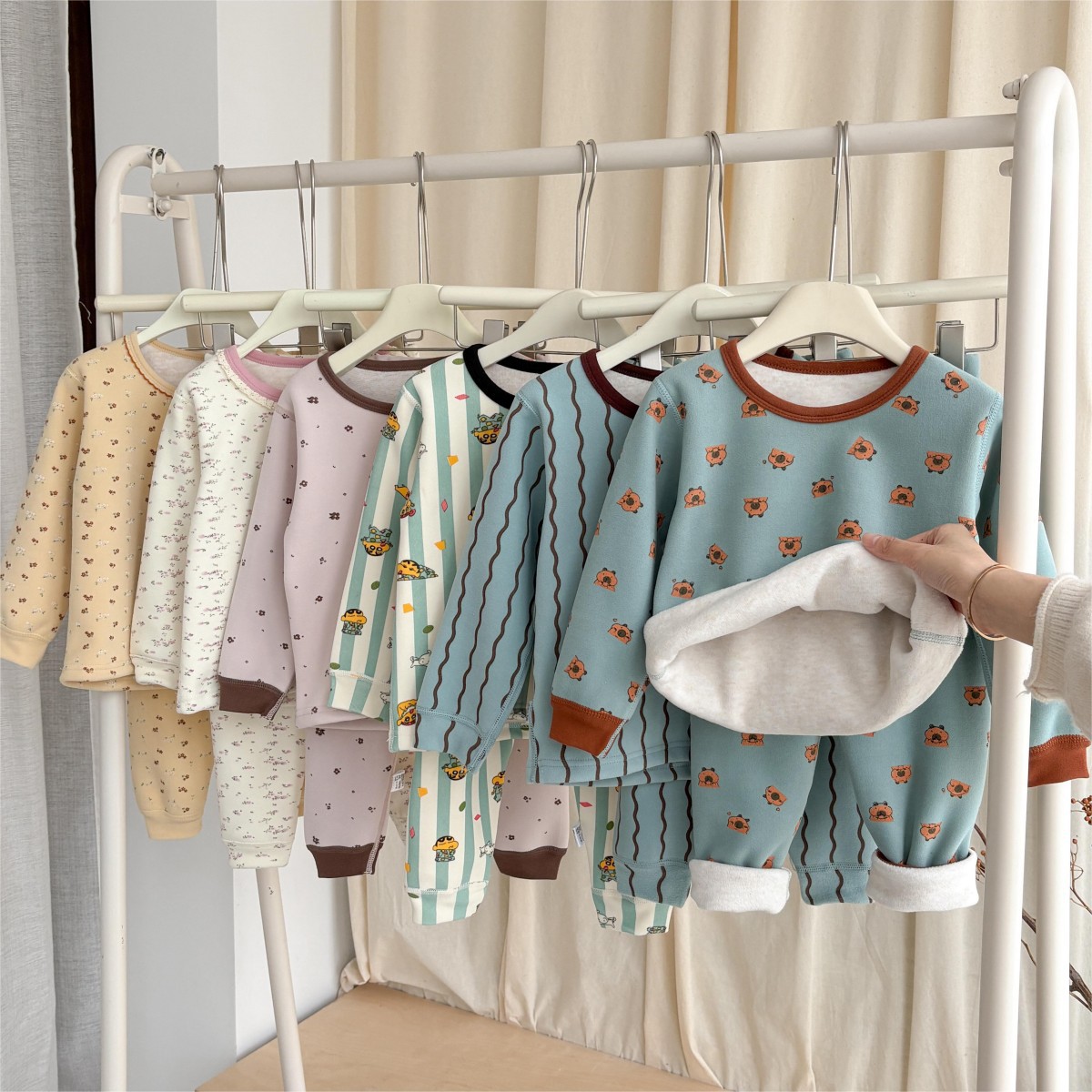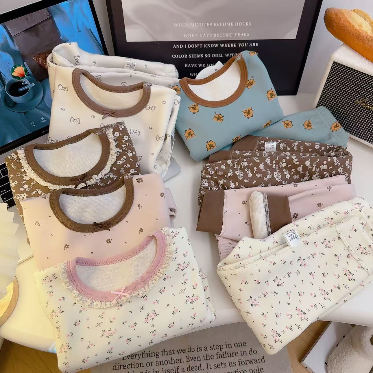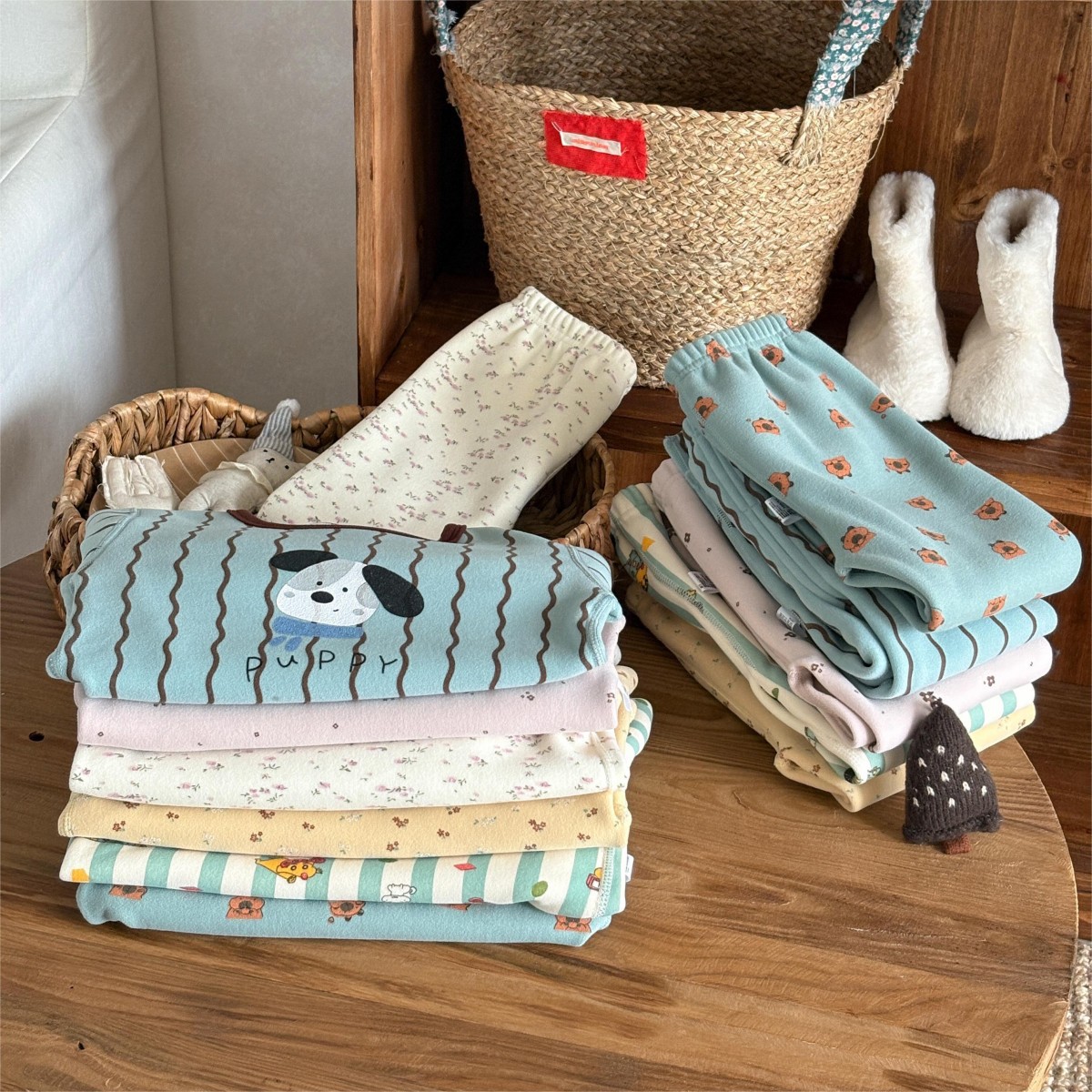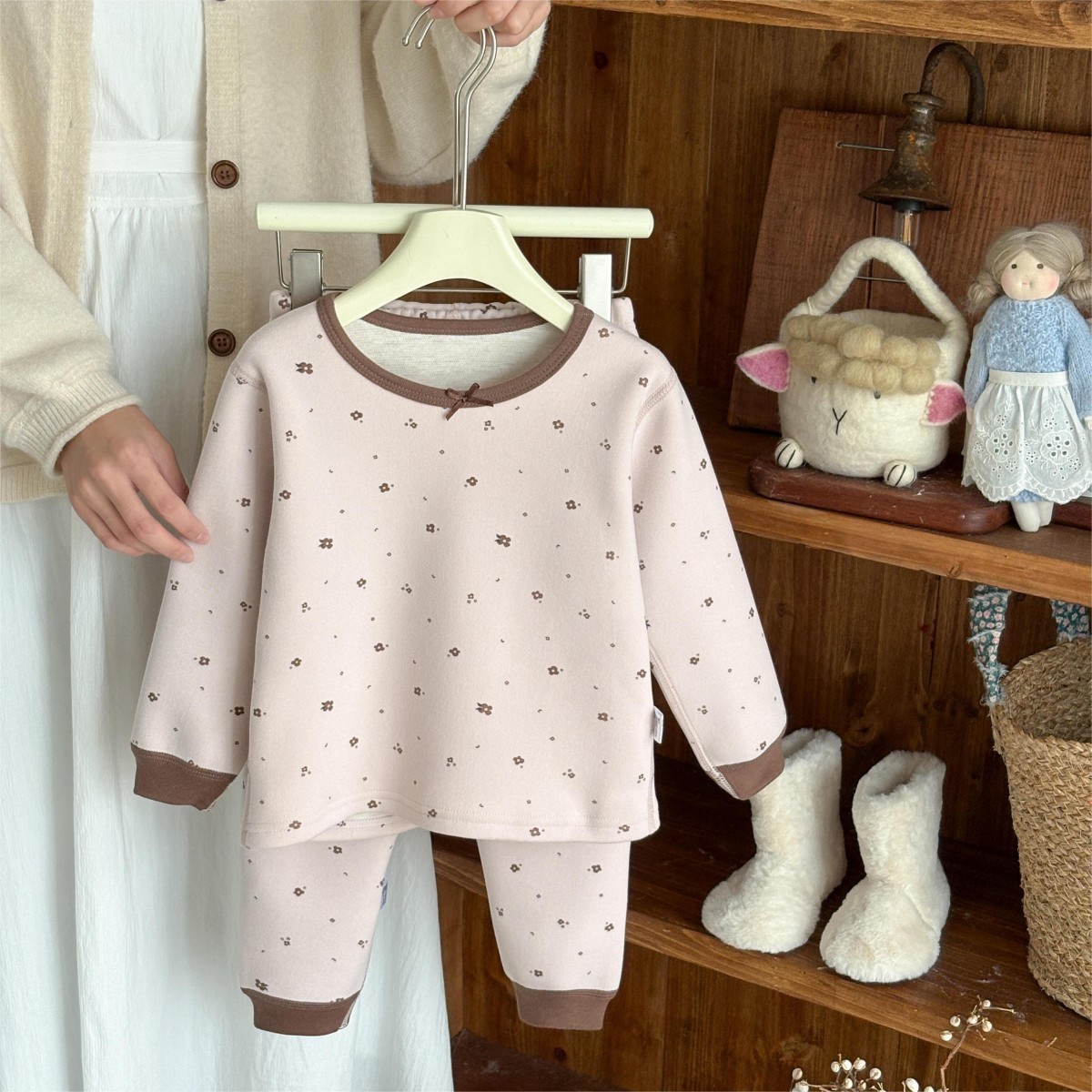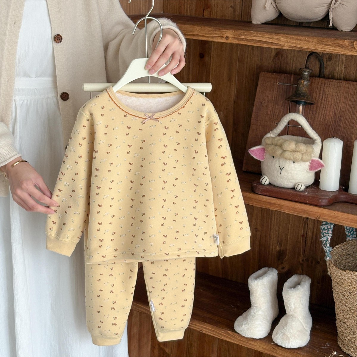 • 꽃무늬 기모 양모 실크 세트 나비 리본 곰돌이