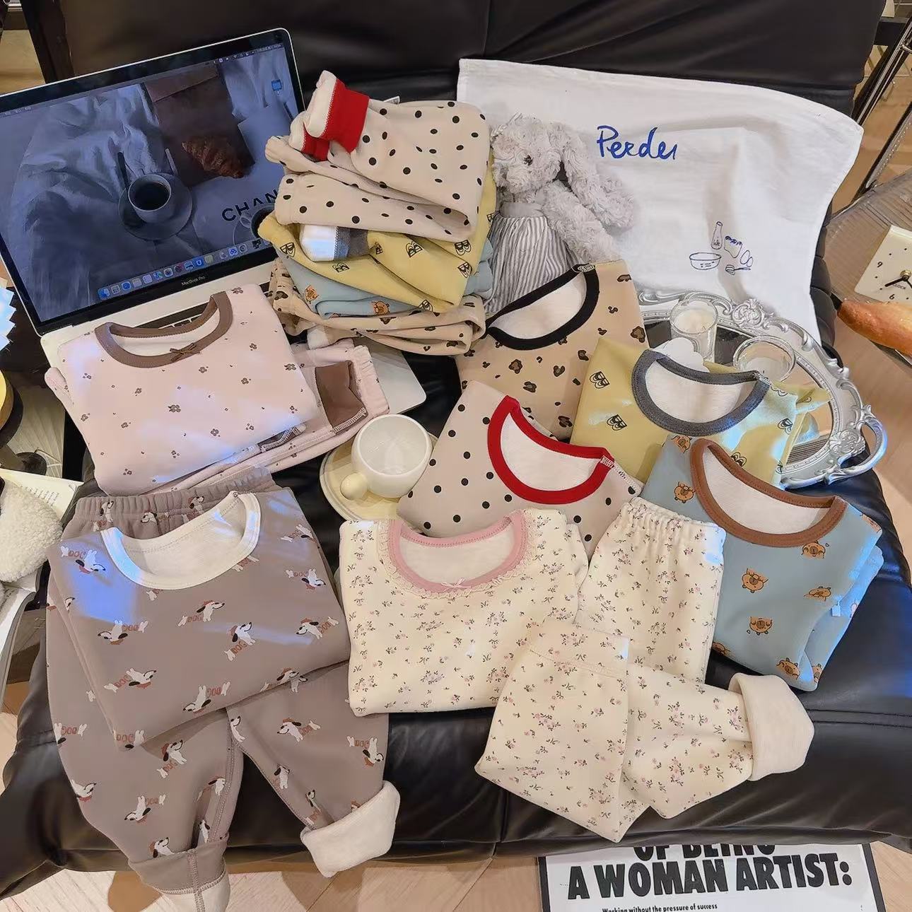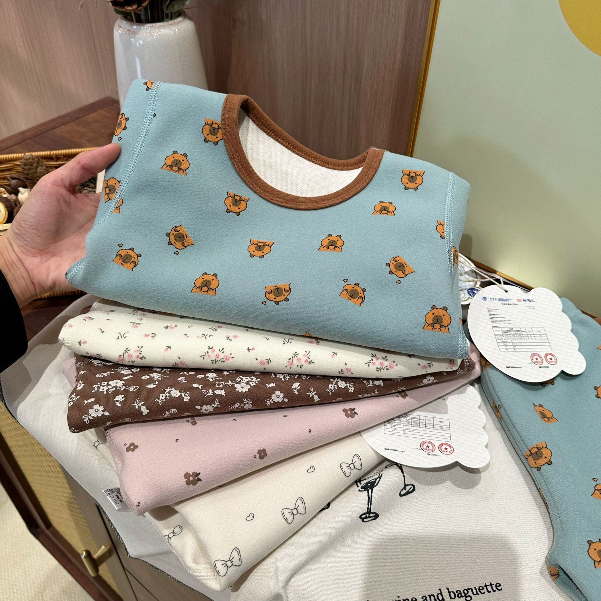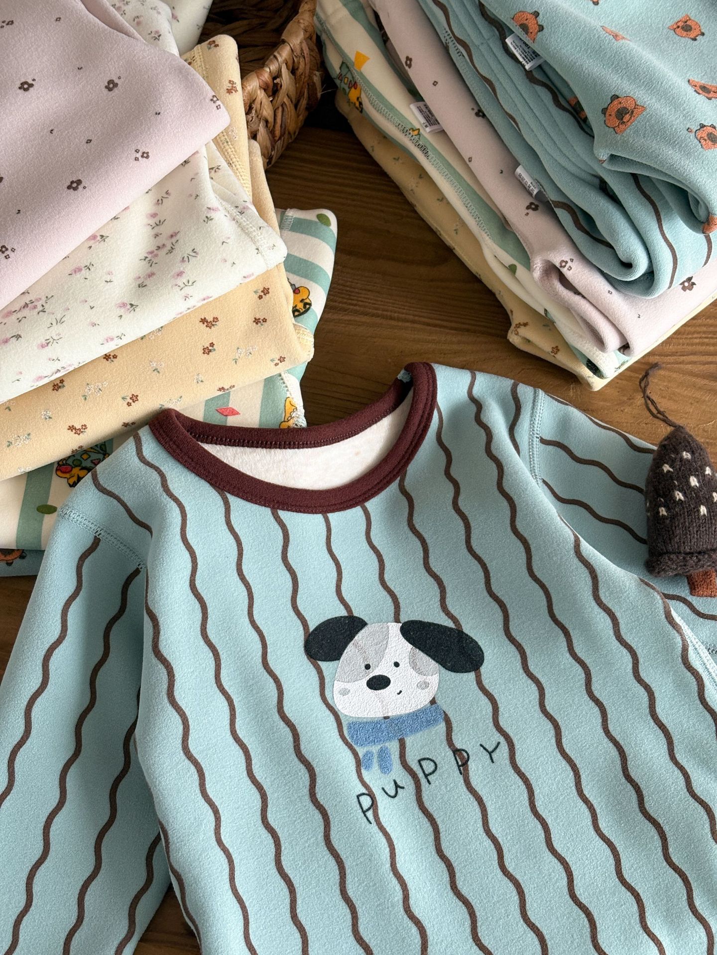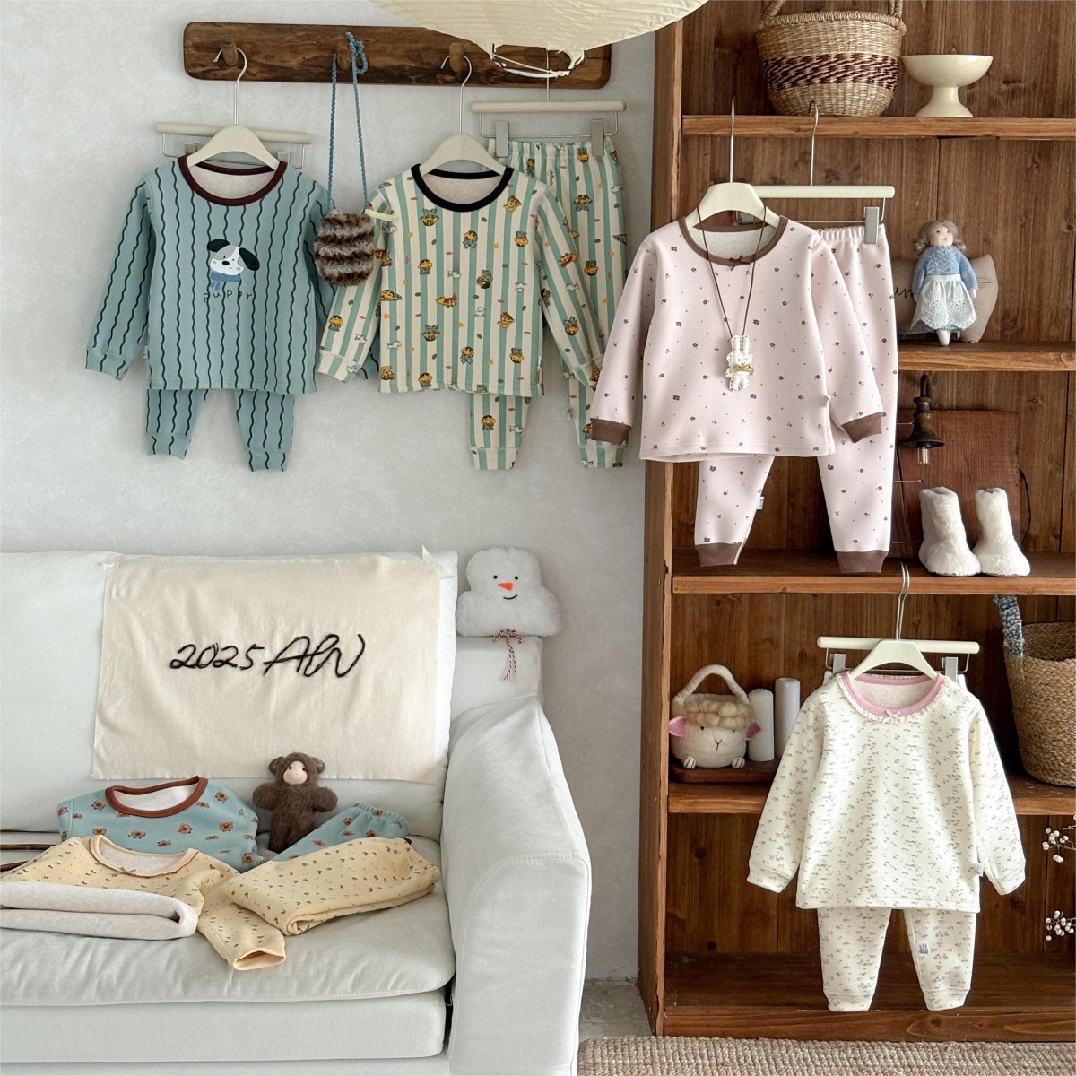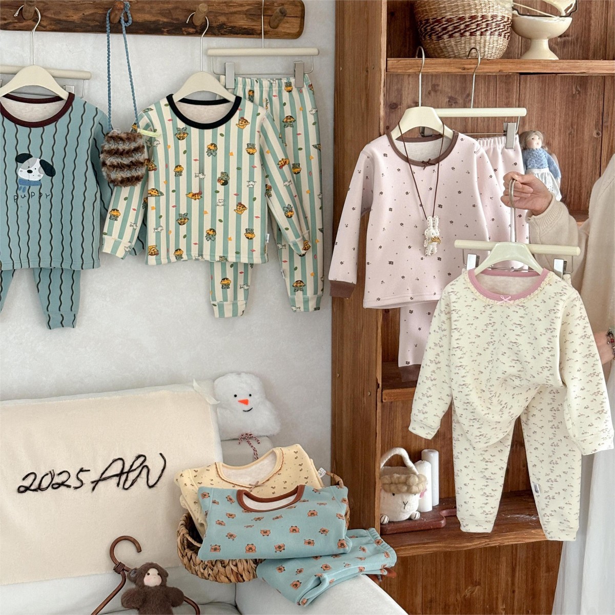 • 꽃무늬 기모 양모 실크 세트 나비 리본 곰돌이