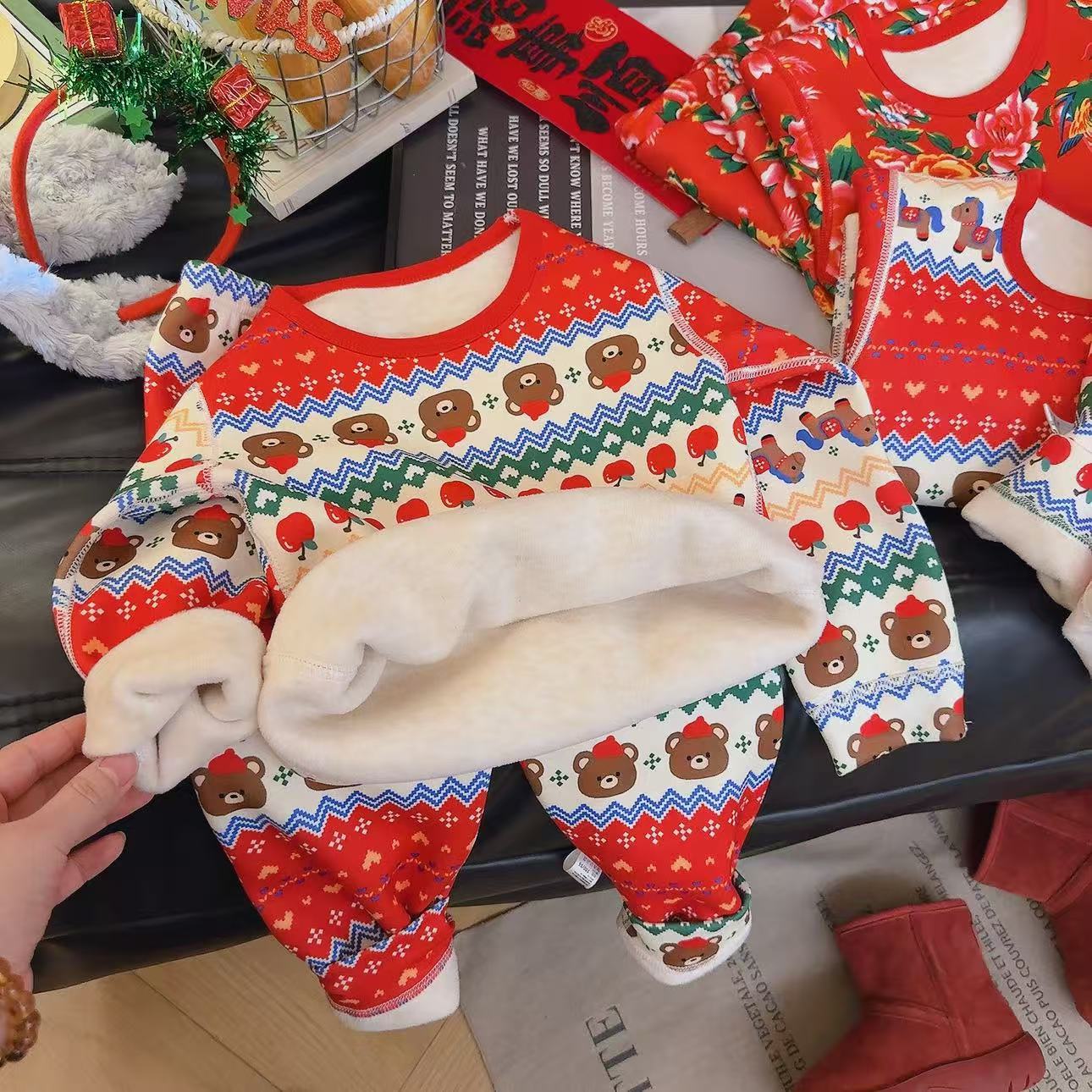 아기 어린이 열 속옷 세트 뼈없는 두꺼운 500g 울 실크 가을 바지 겨울 잠옷스토어 가기