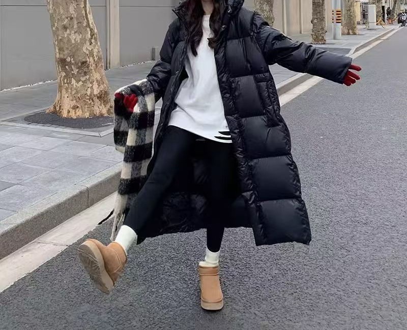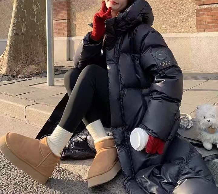 블랙 골드 다운 코튼 뉴 코튼 코트 겨울 2024 코튼 코트 루즈 코튼 코트 두꺼운 따뜻한 재킷 긴 무릎 위스토어 가기