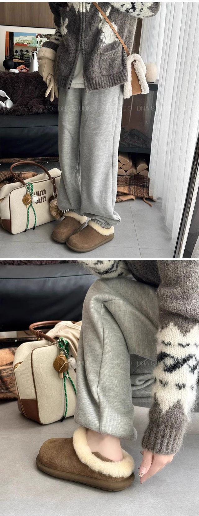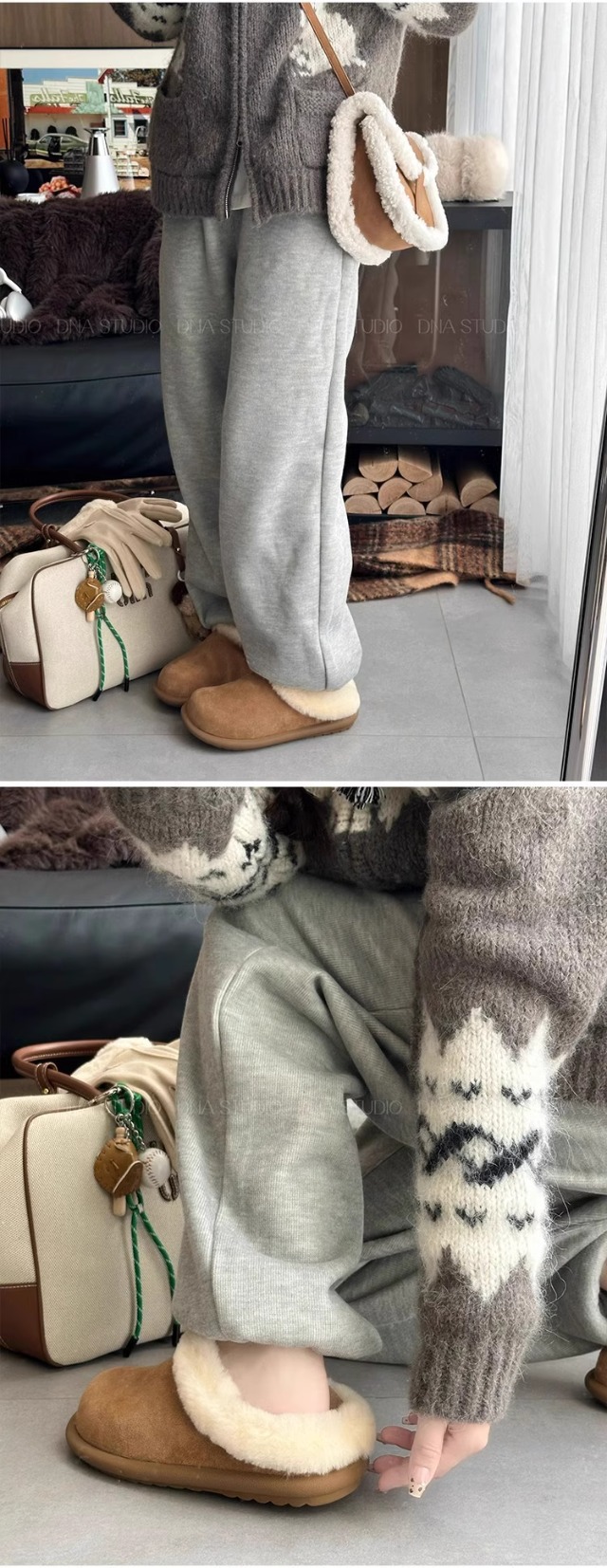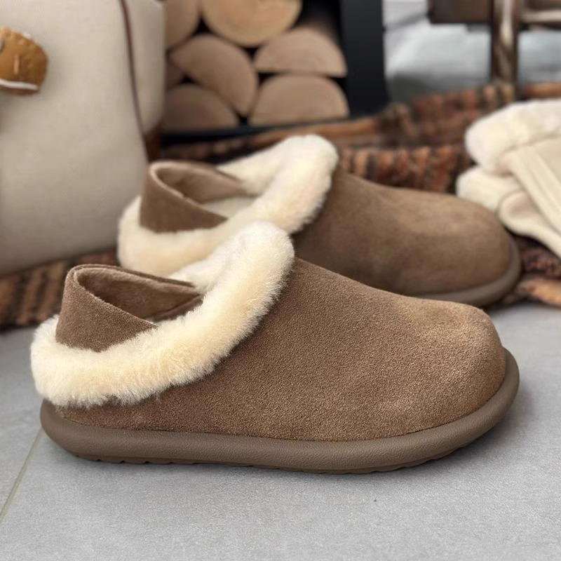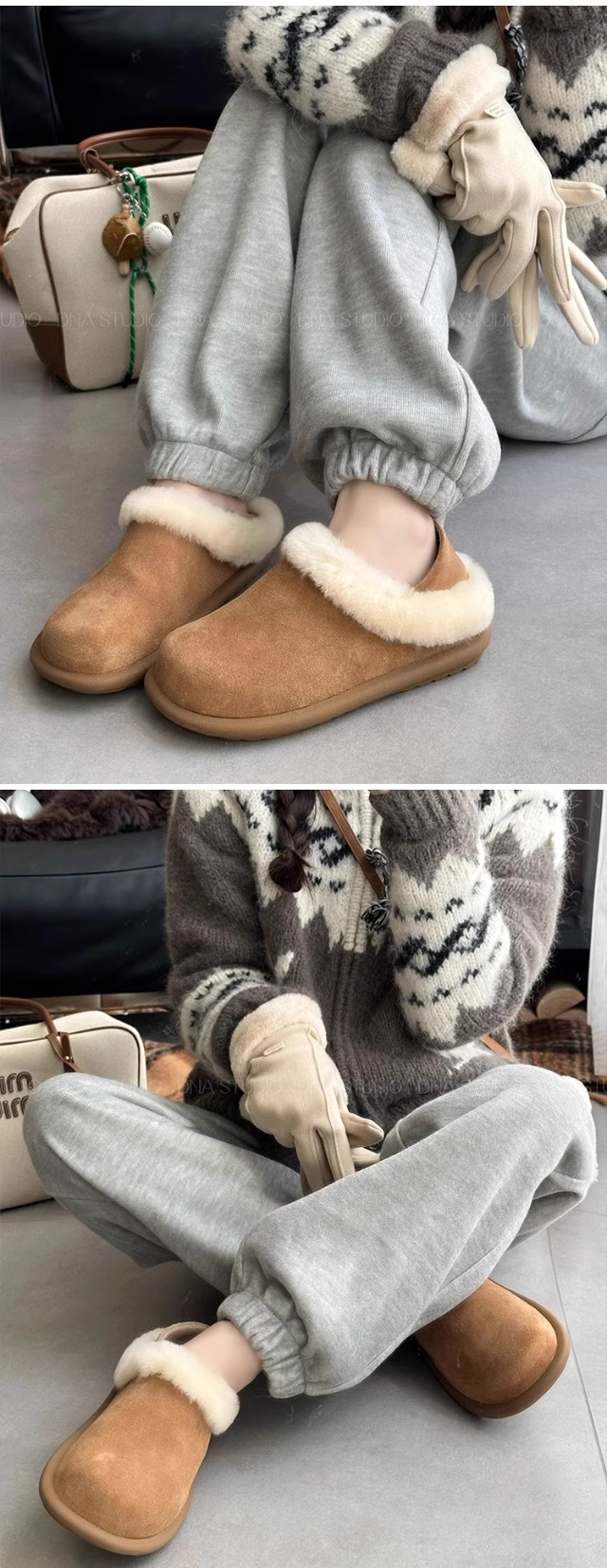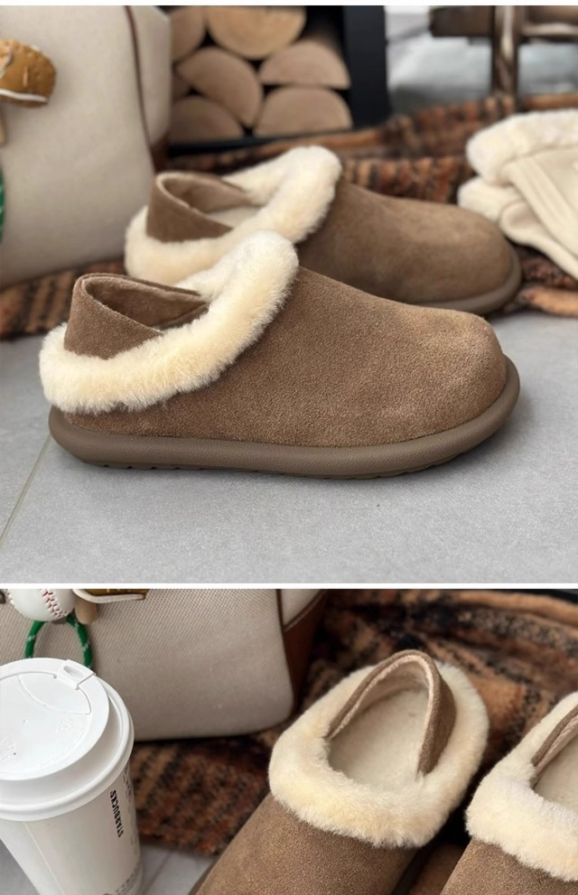 유럽 역 2024 겨울 새로운 슬립 온 인공 모피 투웨어 출산 신발 여성용 코튼 신발 캐주얼 스노우 부츠 여성