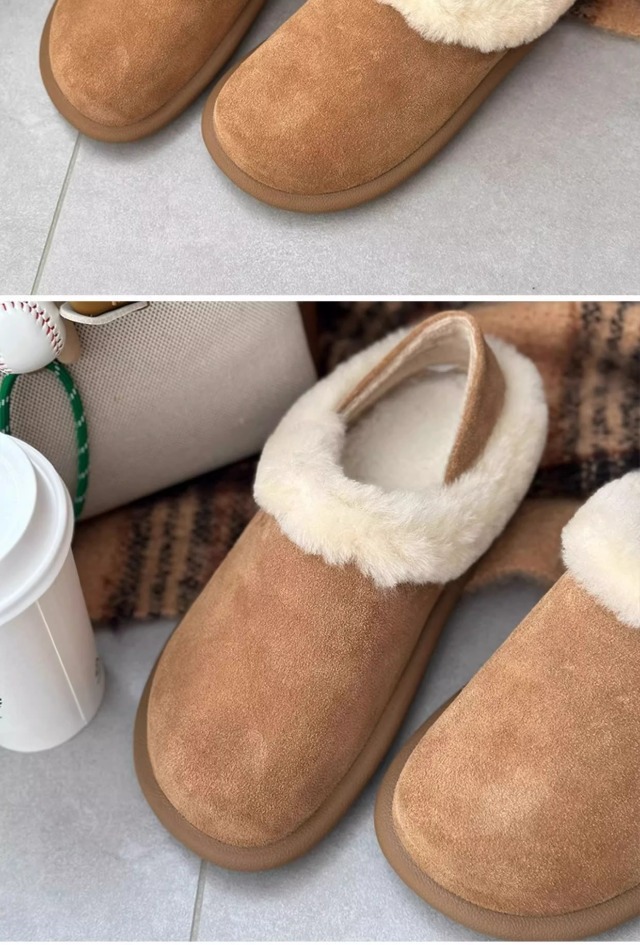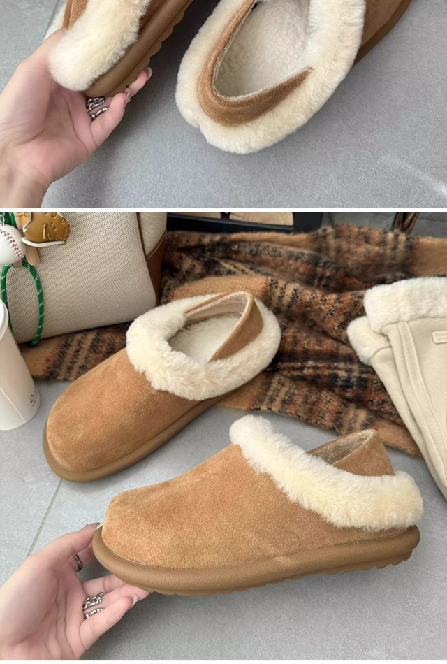 유럽 역 2024 겨울 새로운 슬립 온 인공 모피 투웨어 출산 신발 여성용 코튼 신발 캐주얼 스노우 부츠 여성스토어 가기