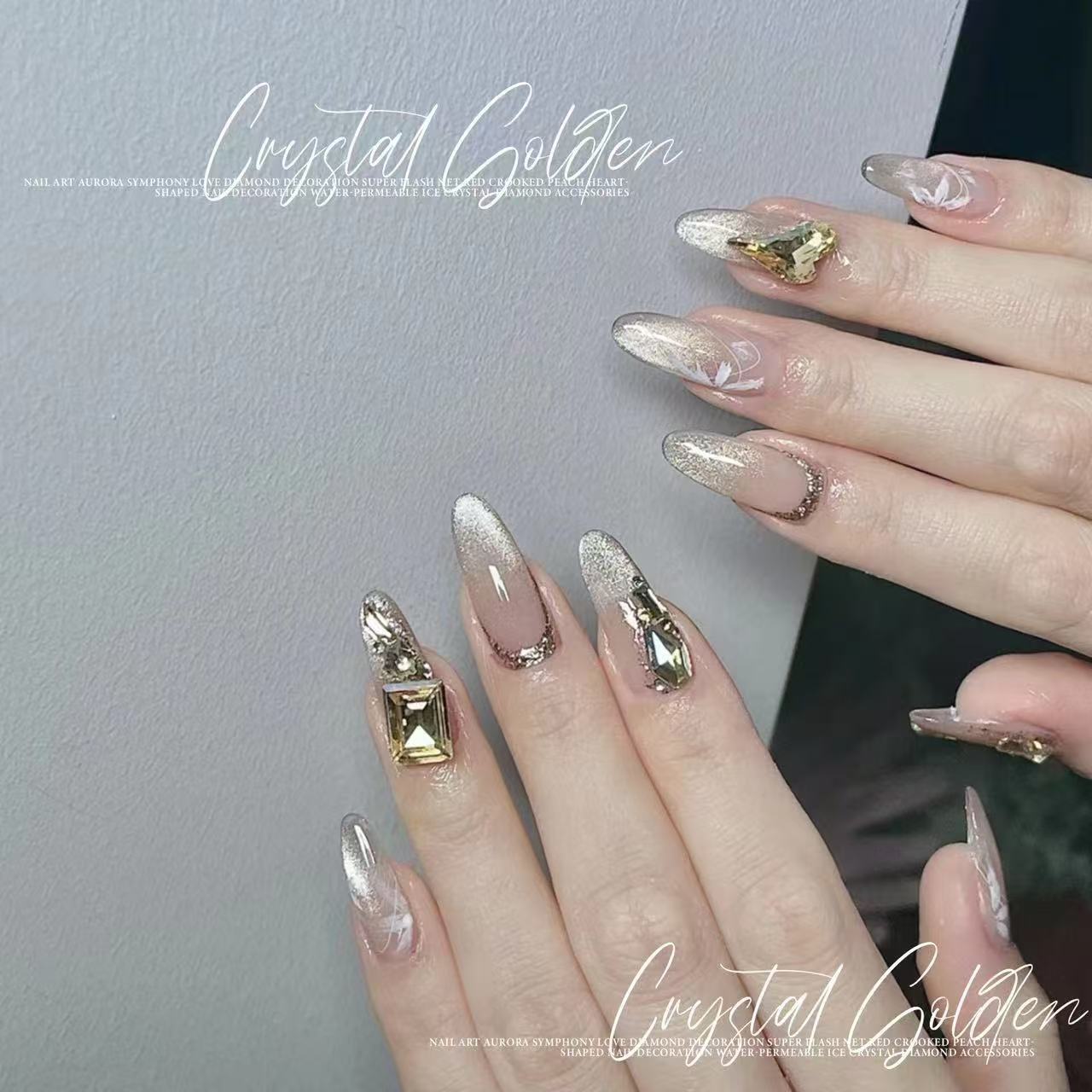 보시 오샤 하이 퀄리티 모방 중국 K9 크리스탈 새로운 황금 팬텀 오페라 매니큐어 다이아몬드 슈퍼 플래시 외계인 네일 장식