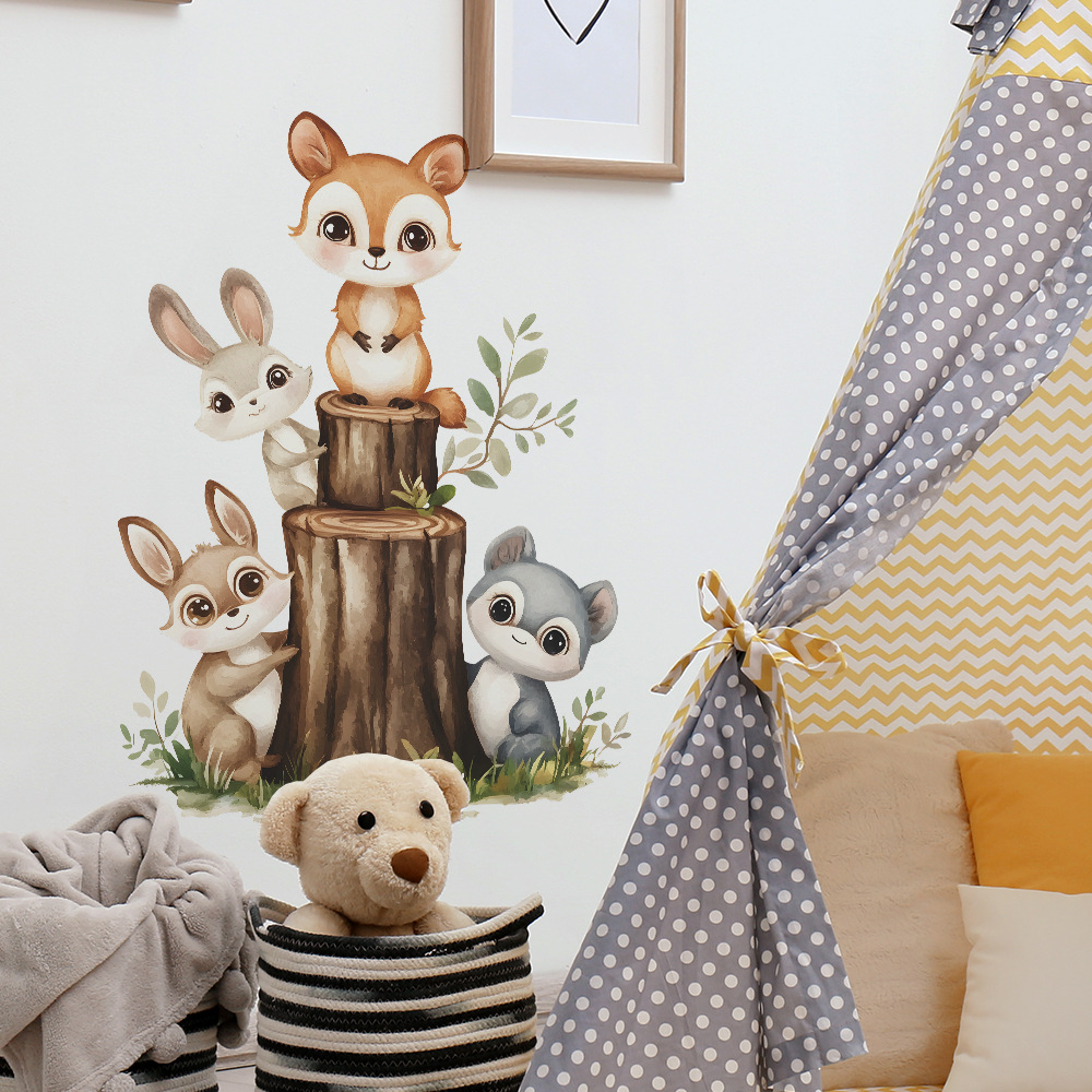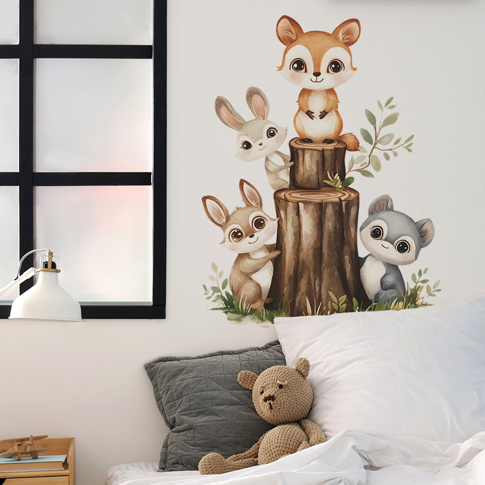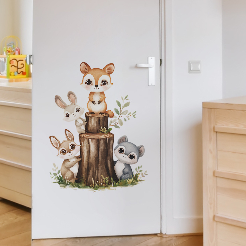 Fun-e193 만화 그루터기 작은 동물 조합 침실 거실 현관 집 배경 미화 벽 스티커 도매