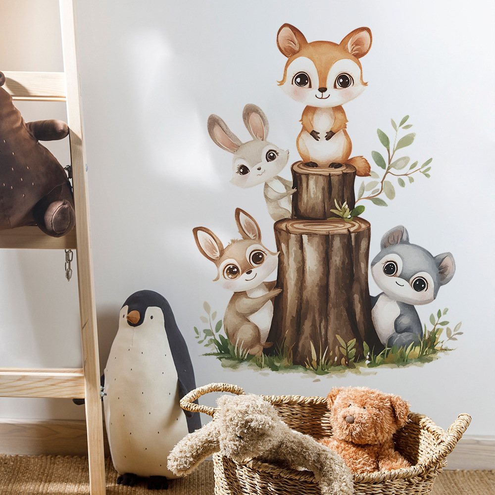 Fun-e193 만화 그루터기 작은 동물 조합 침실 거실 현관 집 배경 미화 벽 스티커 도매스토어 가기