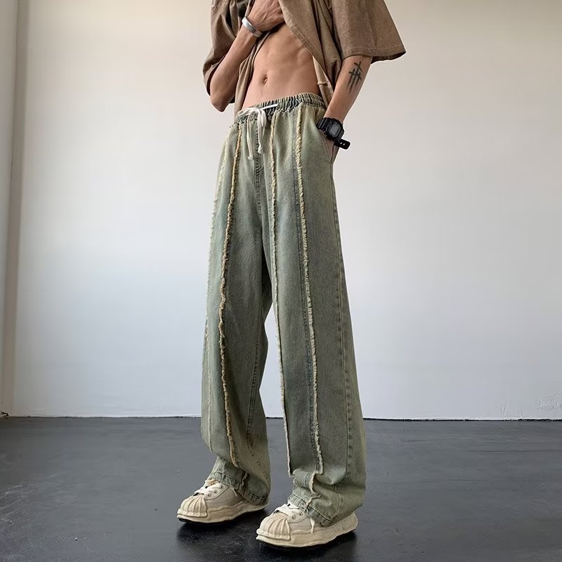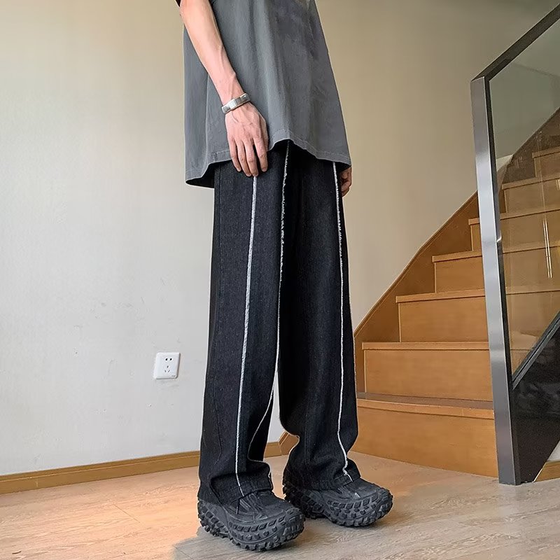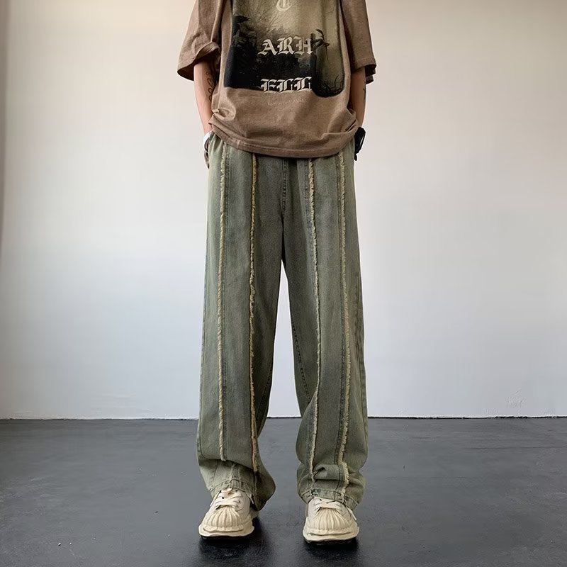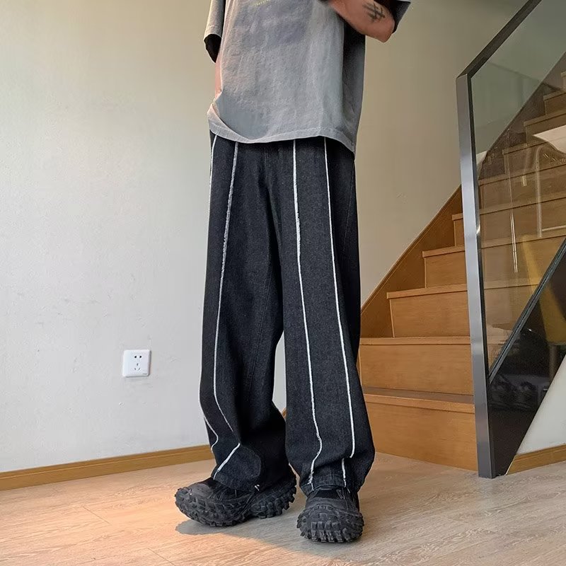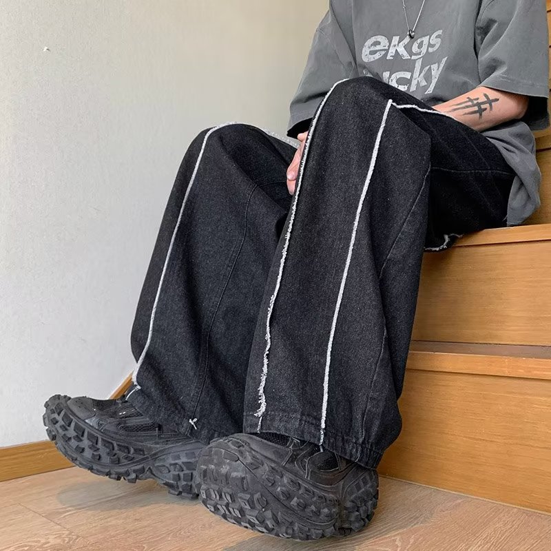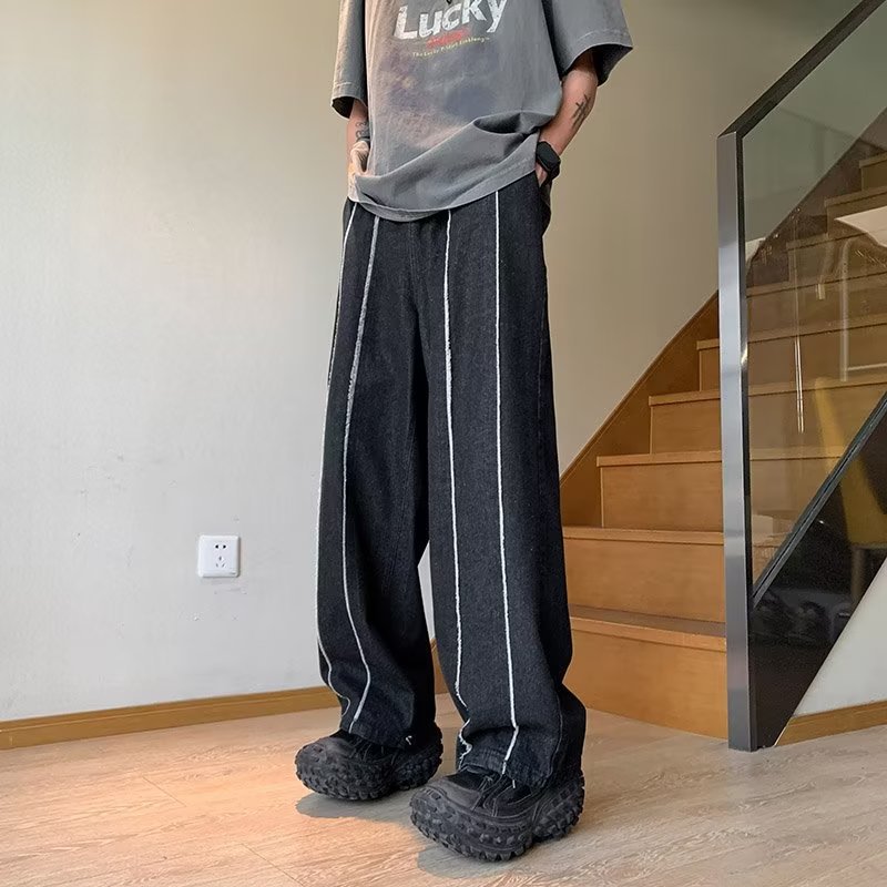 공장 도매 남성 바지 청바지 유행 게으른 지퍼 세척 청소년 인기있는 봄 느슨한 직선 다리 바지스토어 가기