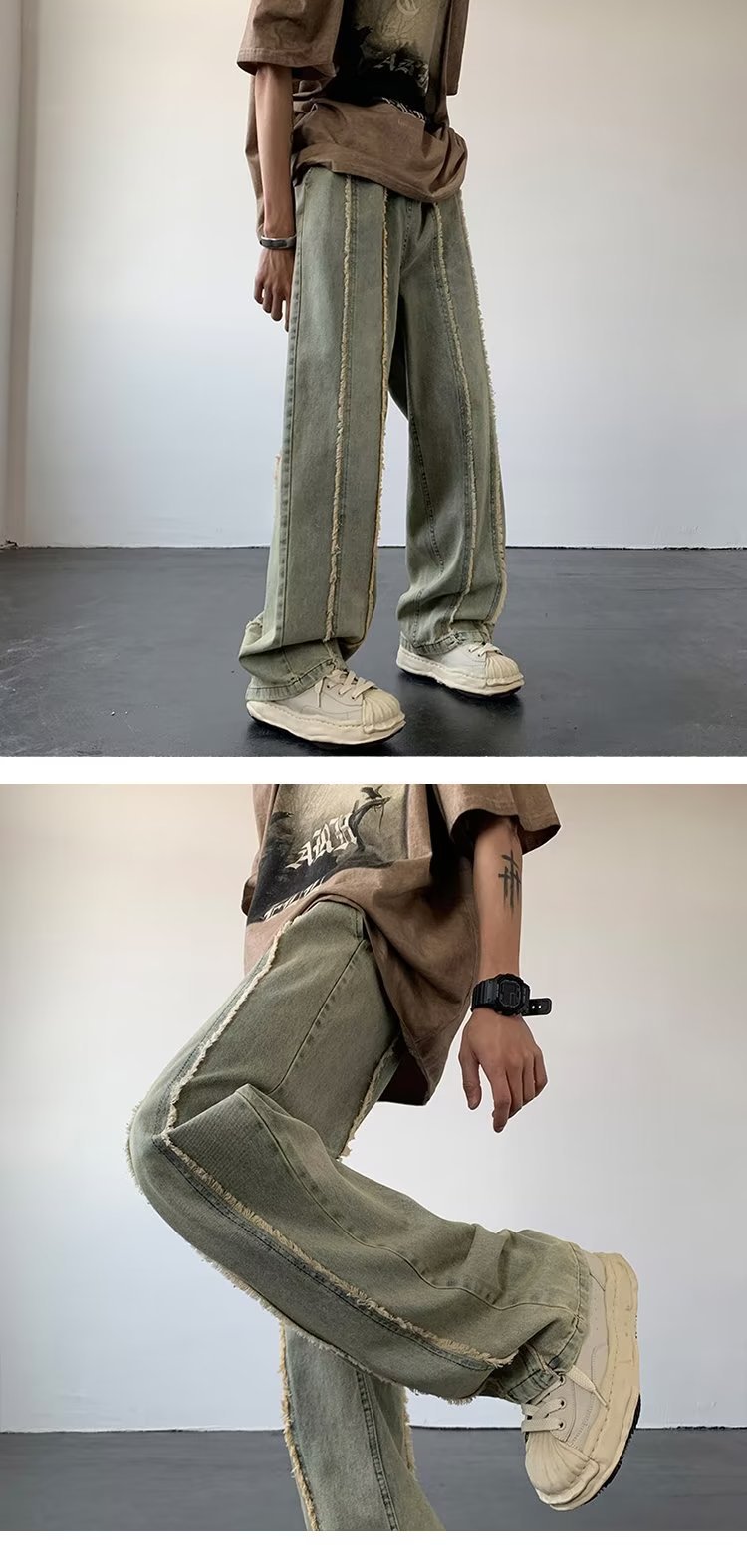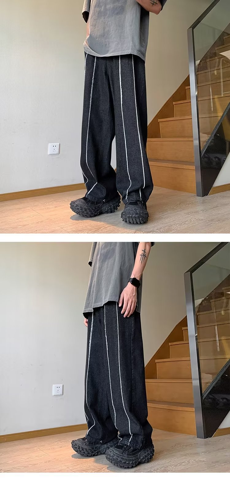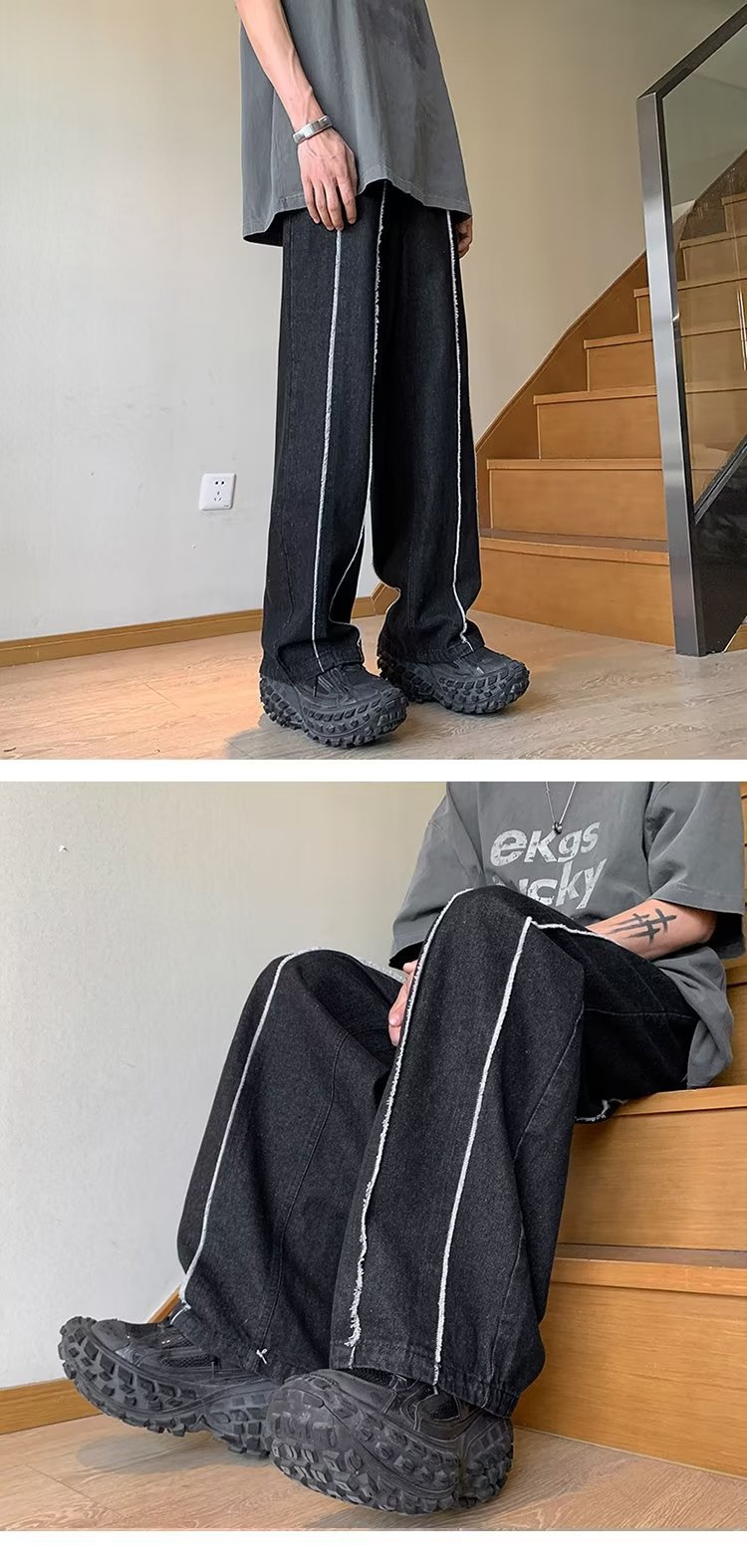 공장 도매 남성 바지 청바지 유행 게으른 지퍼 세척 청소년 인기있는 봄 느슨한 직선 다리 바지스토어 가기