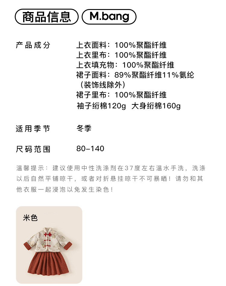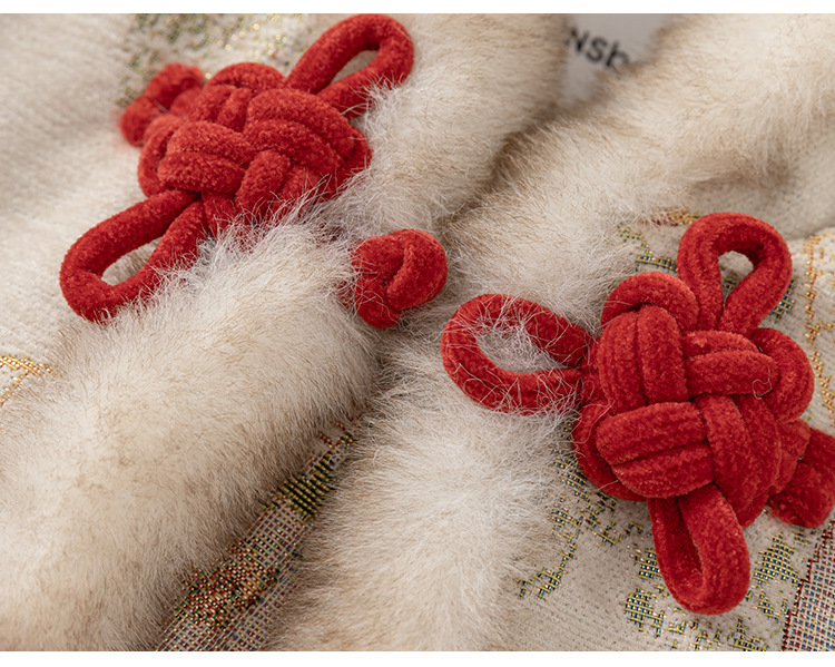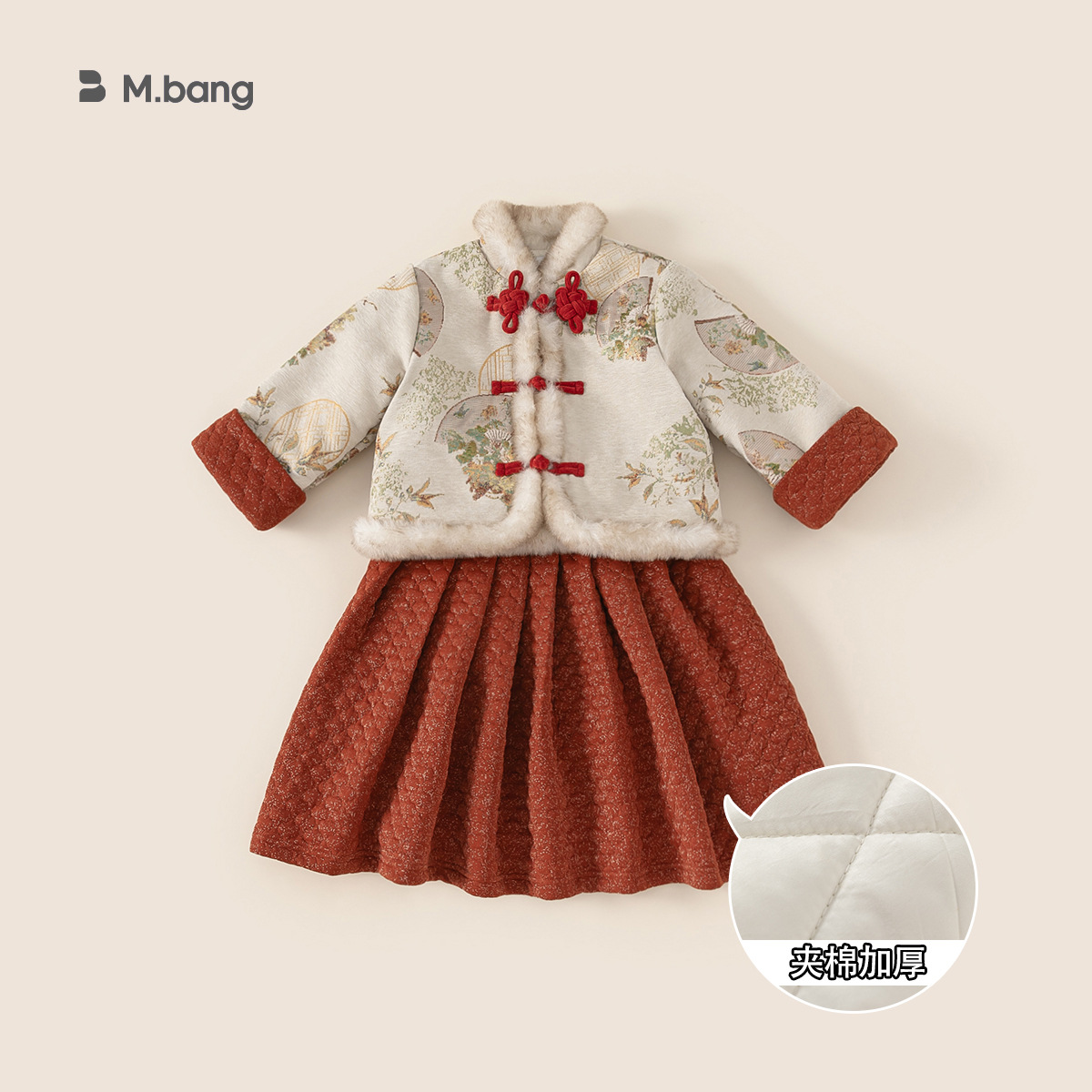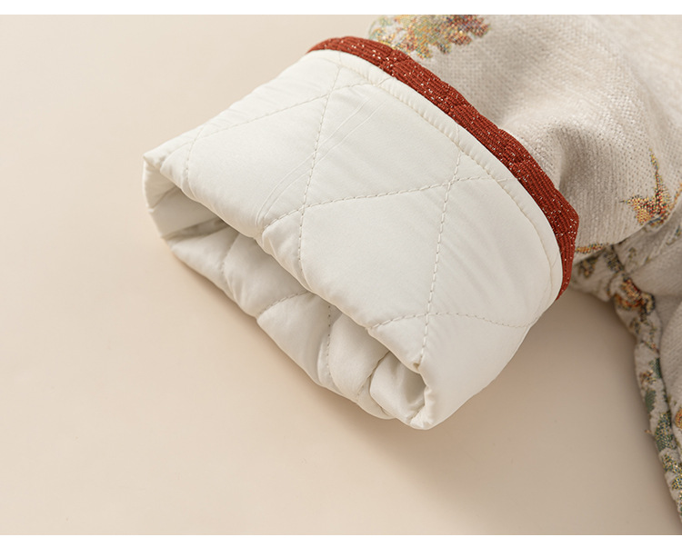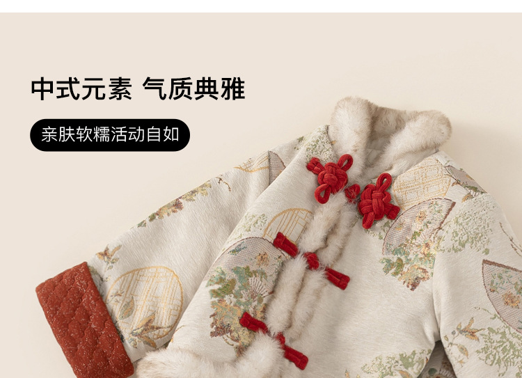 Bangxuan Girls의 새로운 중국 두꺼운 겨울 투피스 세트 어린이 Guofeng 자수 모피 가장자리 버튼 코트 세트 원피스스토어 가기