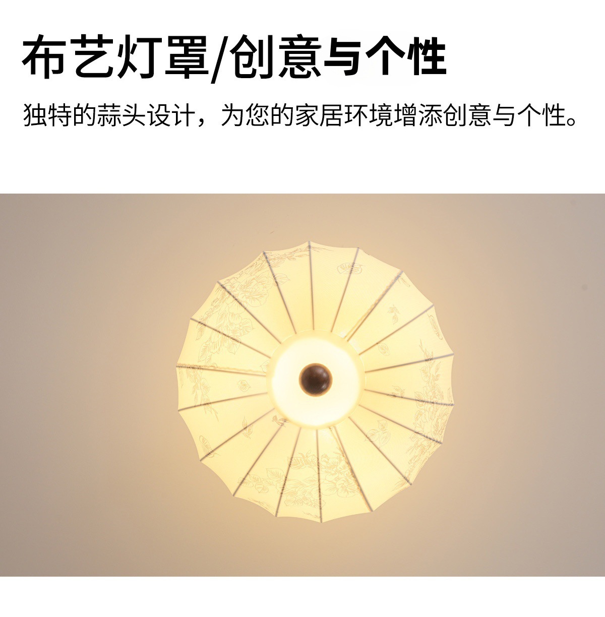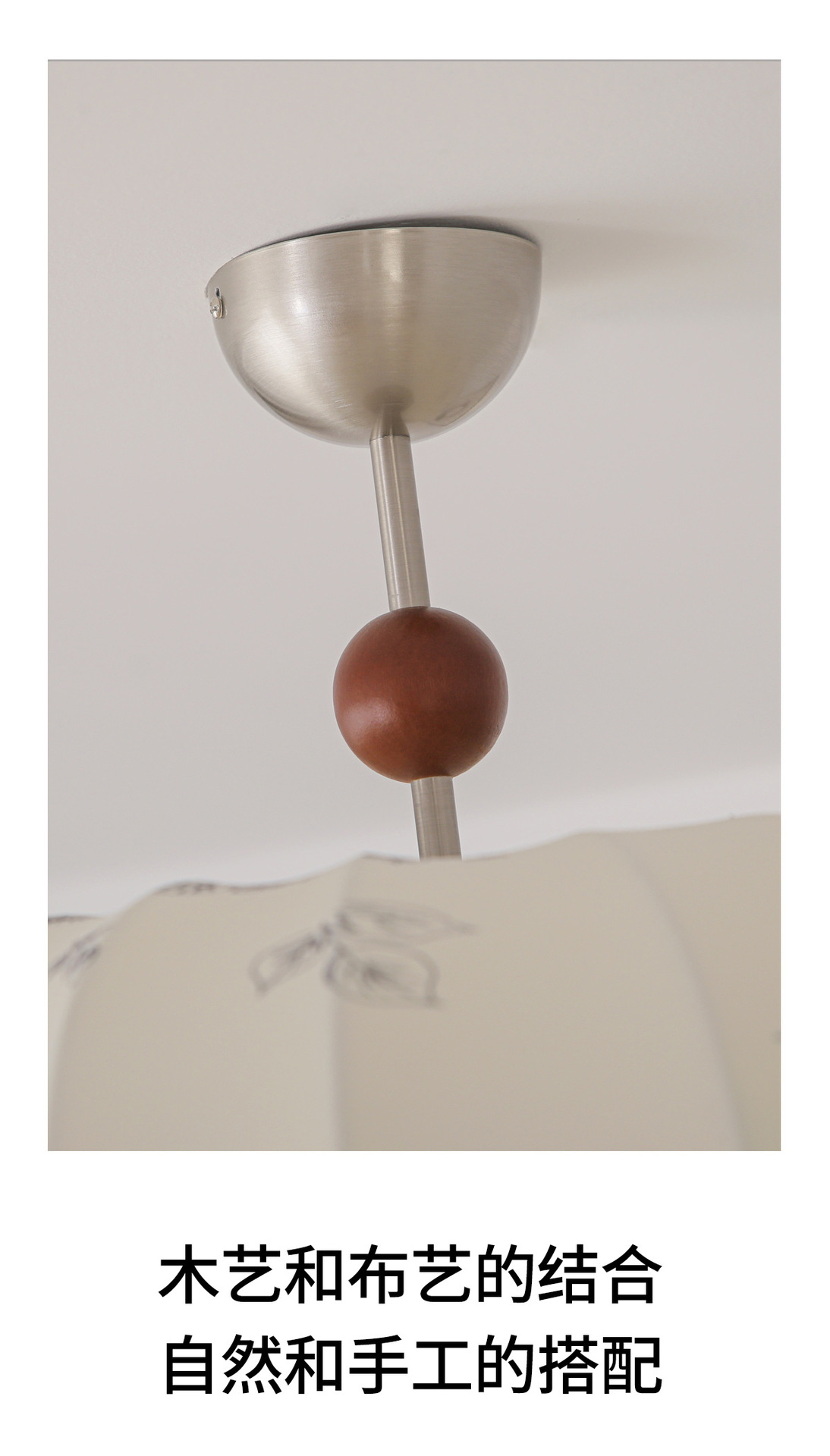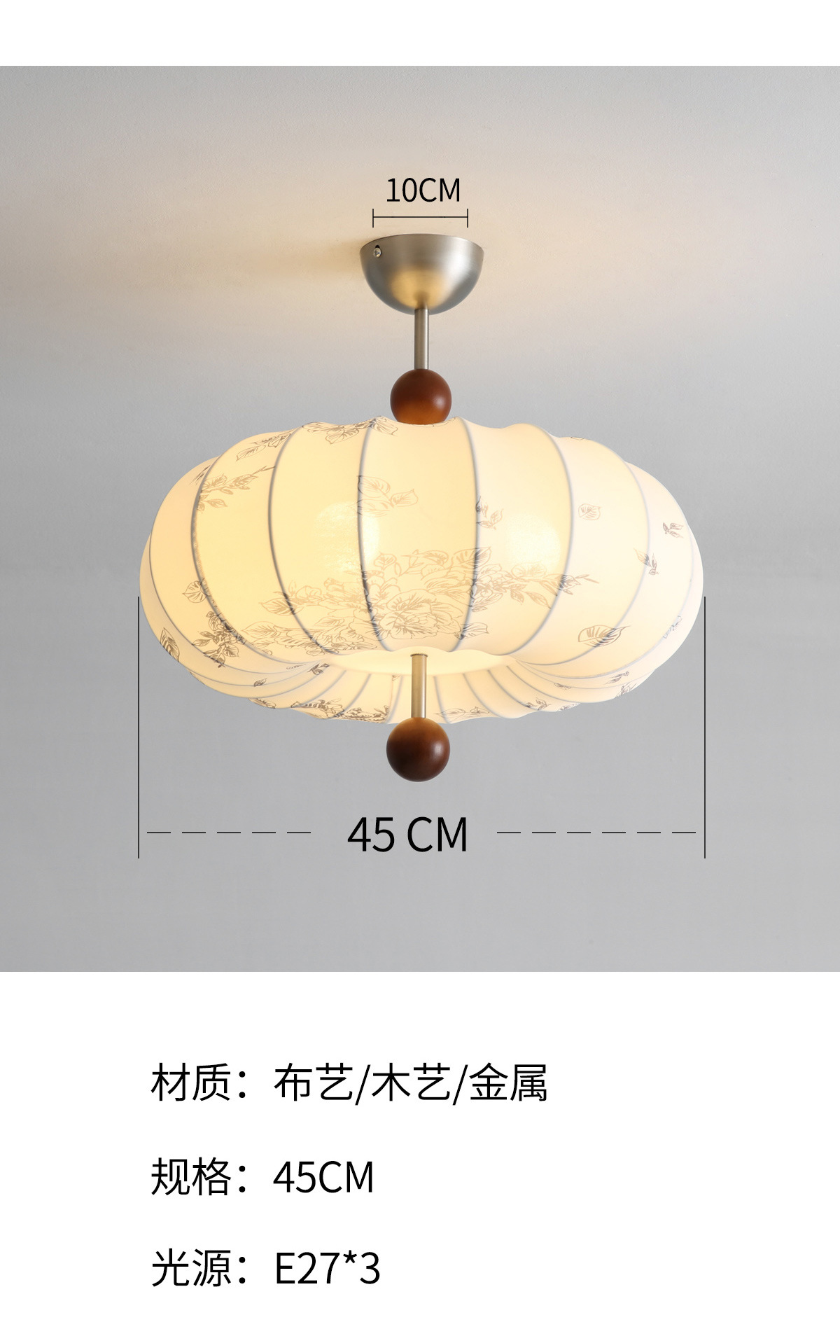 • C형 패브릭 호박 샹들리에 - 월넛 색상 + 화이트 - Φ50*H30cm