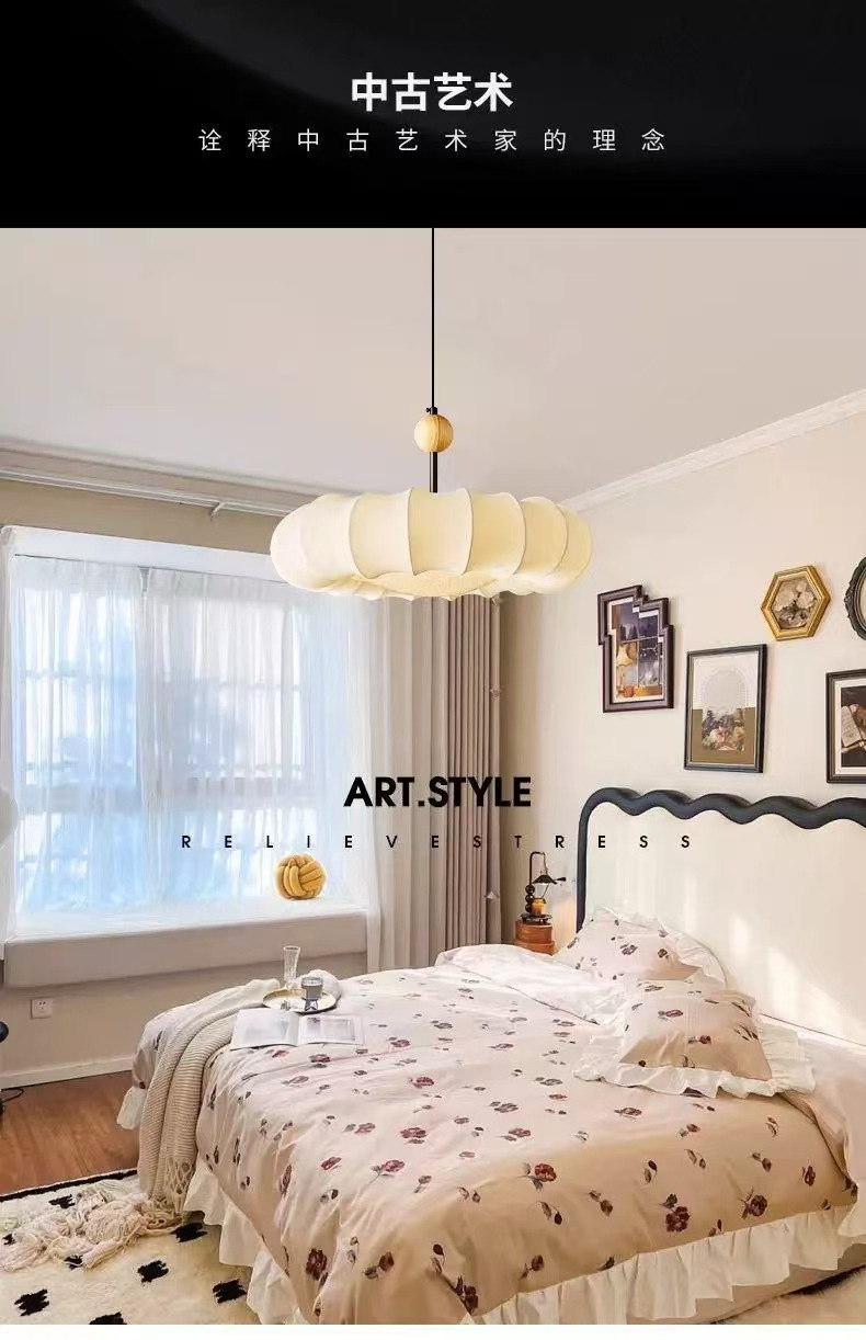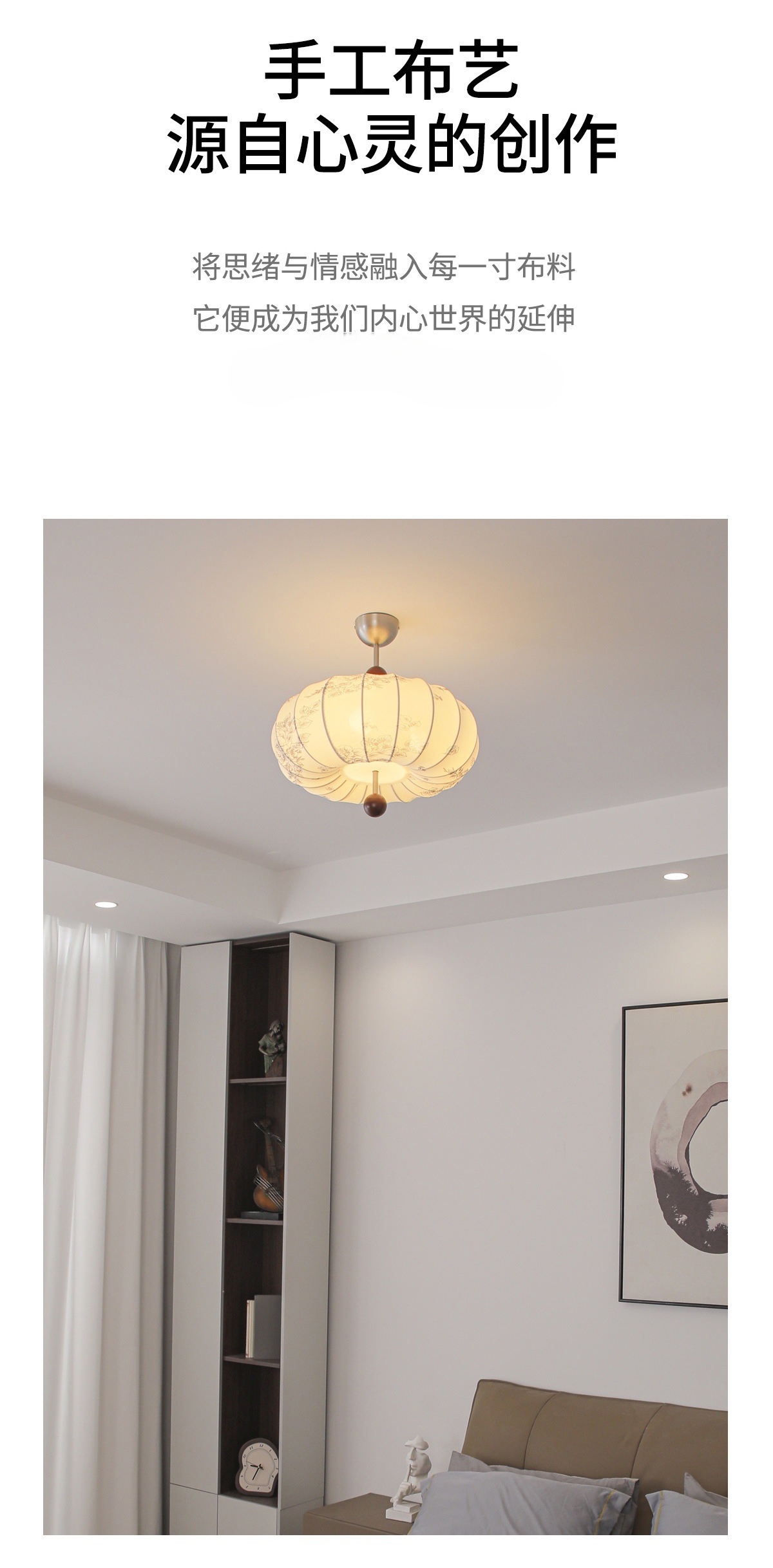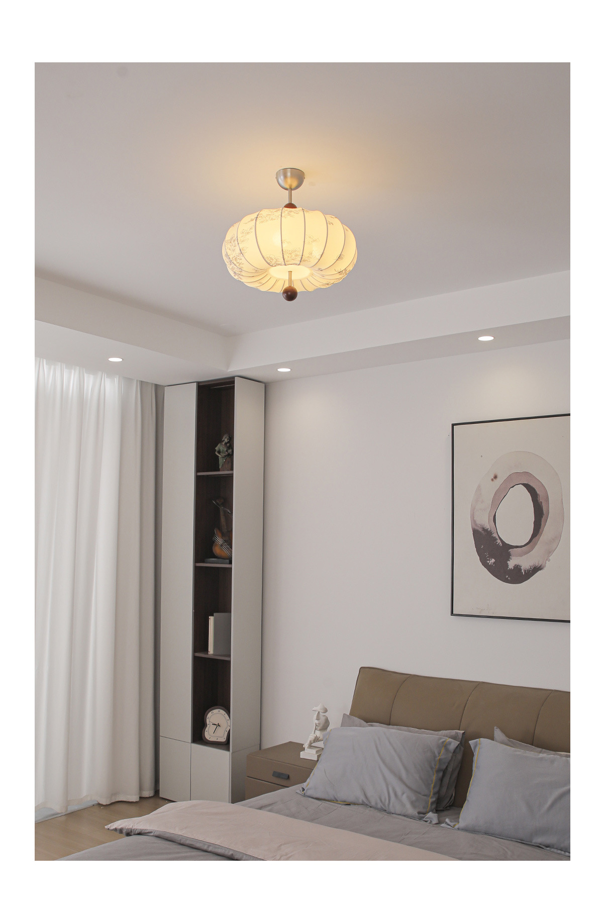 • C형 패브릭 호박 샹들리에 - 월넛 색상 + 화이트 - Φ50*H30cm