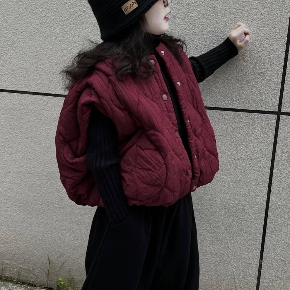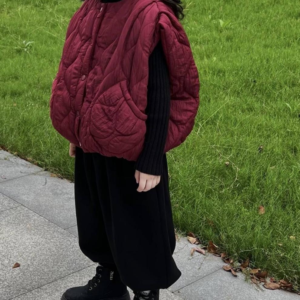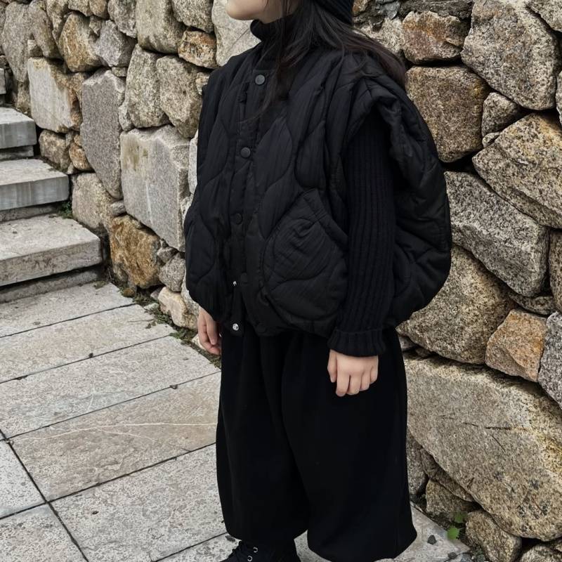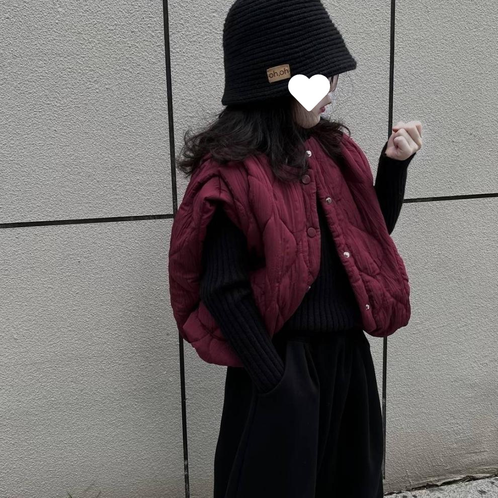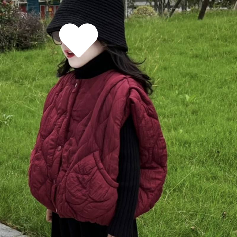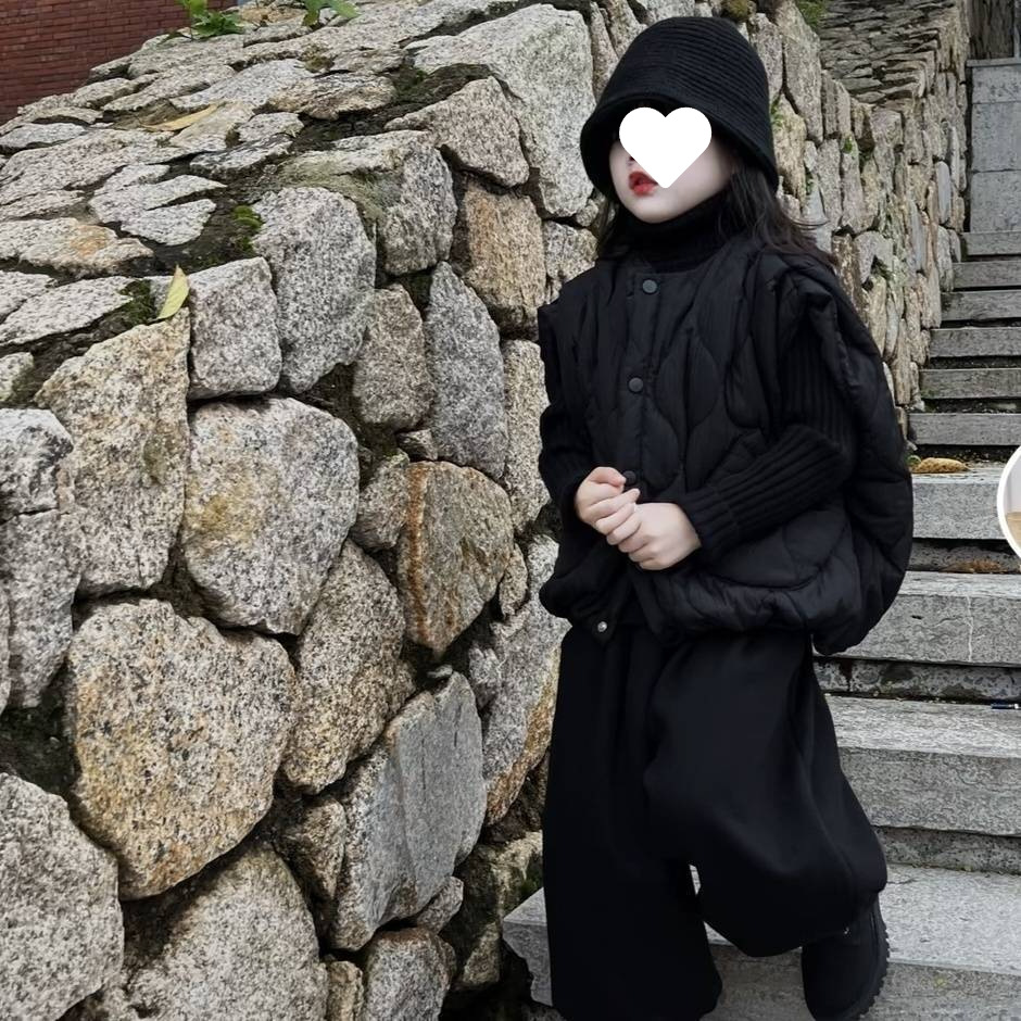 한국 아동복 소녀 가을과 겨울 새로운 외국 색상 단일 가슴 두꺼운 어린이 퀼트 빵 양복 조끼 조수