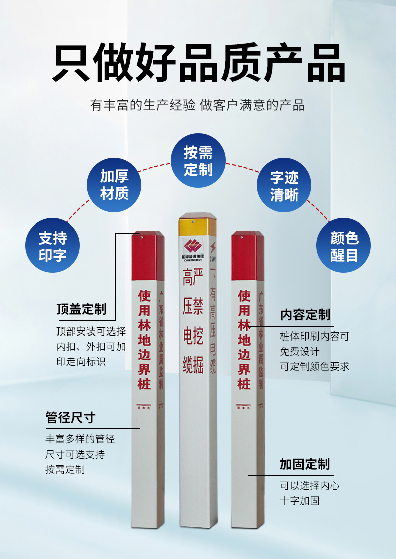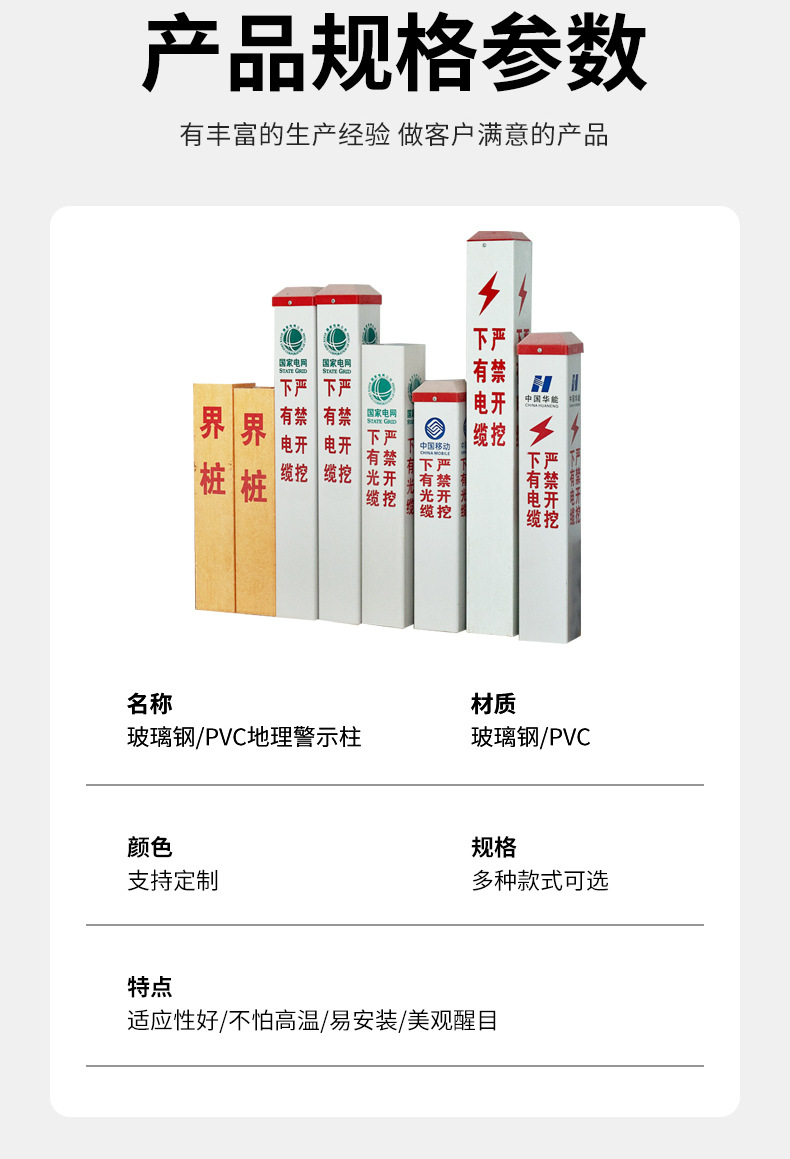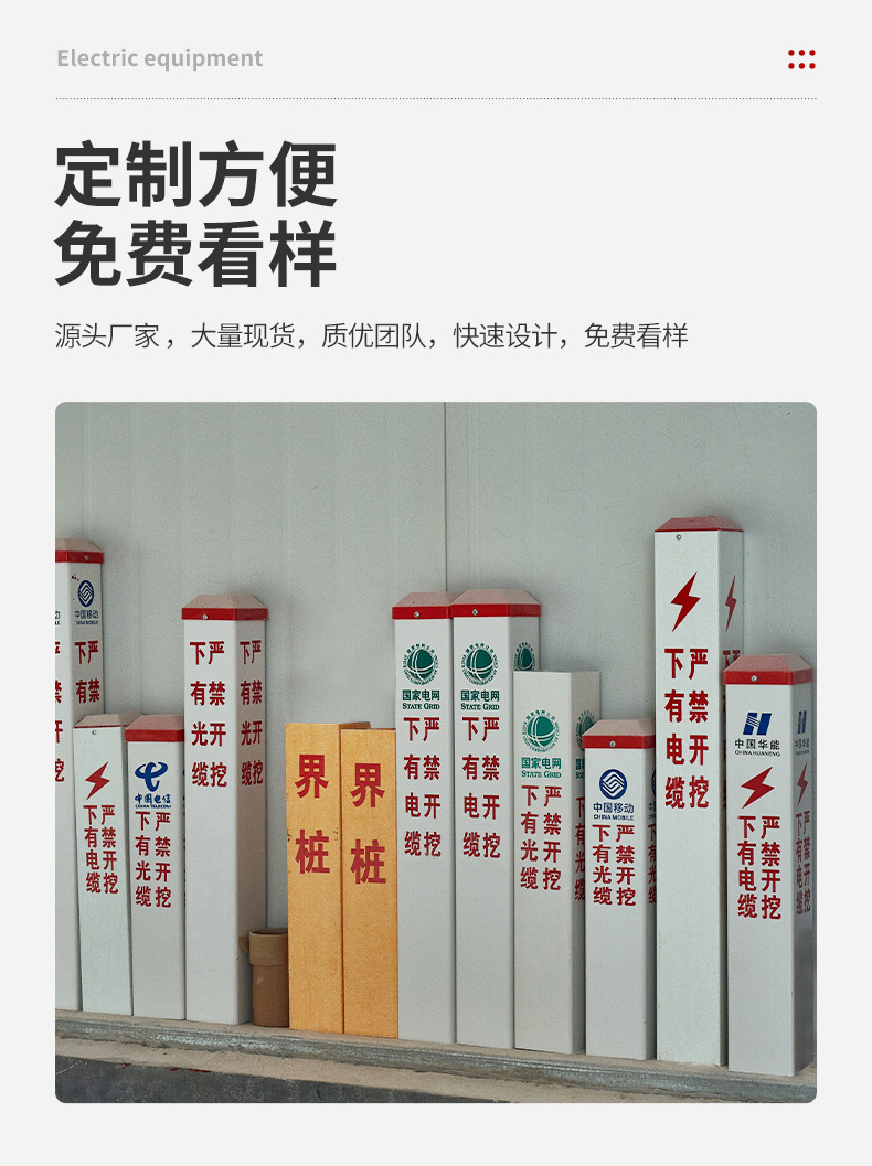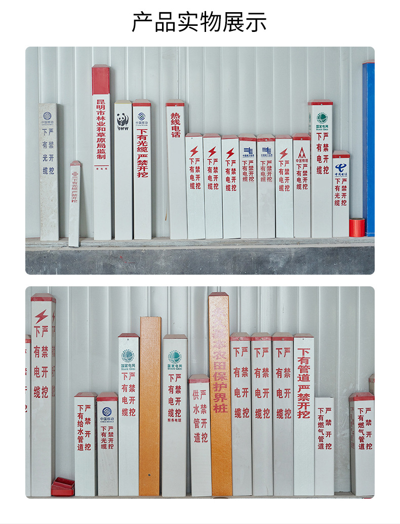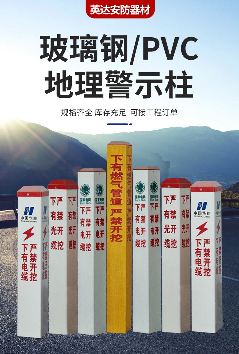 유리 섬유 강화 플라스틱 경고 파일 전원 케이블 마킹 파일 PVC 매장 물 파이프 라인 가스 전력 경고 표시 더미