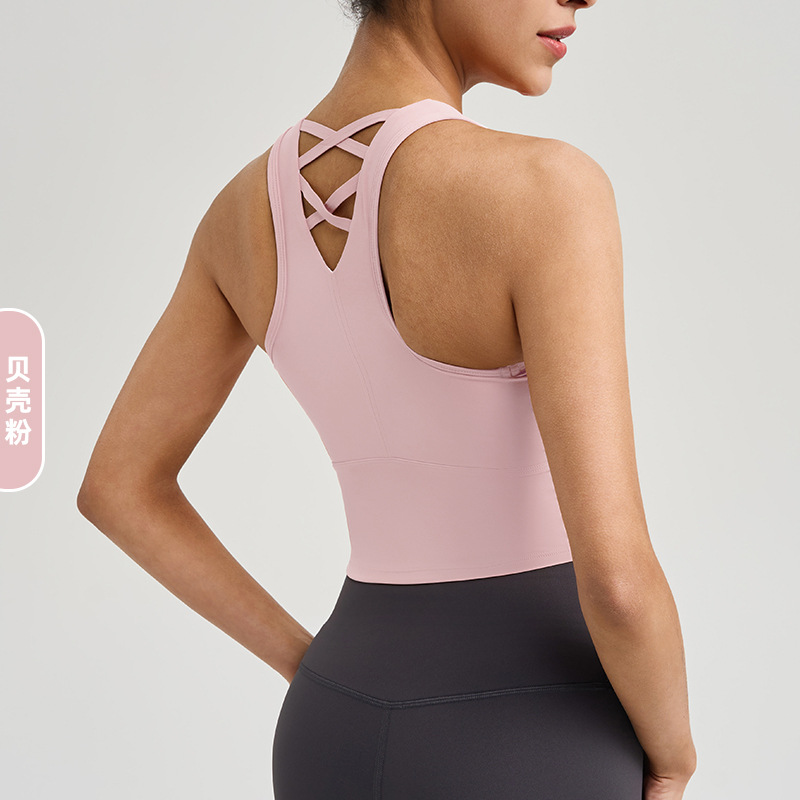 여름 요가 조끼 여성 고정 컵 벌거 벗은 느낌 요가 의류 탑 피트니스 브래지어 아름다운 다시 빠른 건조 스포츠 속옷스토어 가기