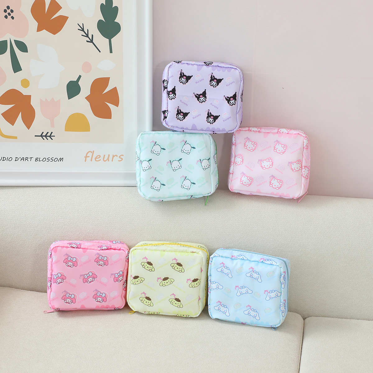 귀여운 Kulomi 휴대용 대용량 위생 면 월간 작은 가방 위생 냅킨 저장 가방 이모 냅킨 가방