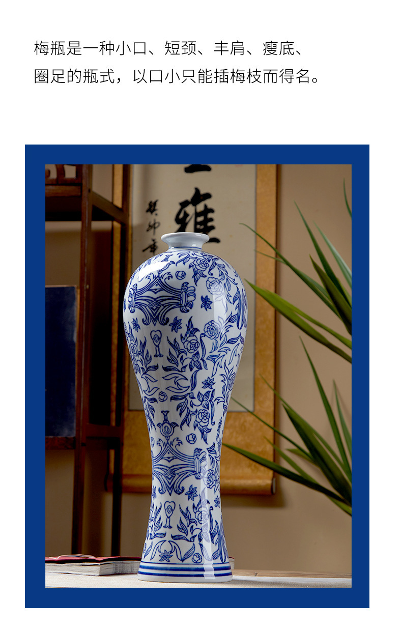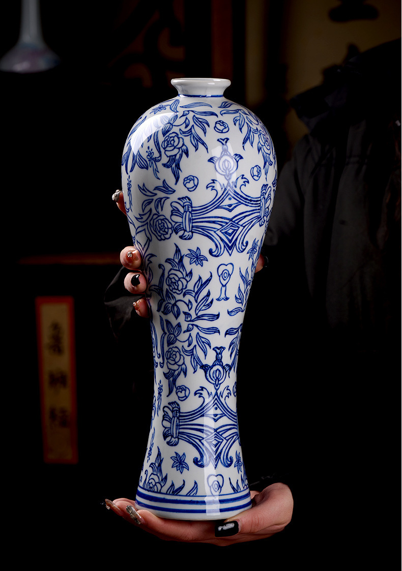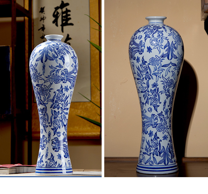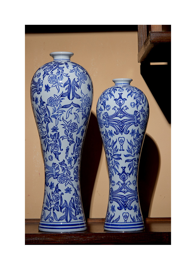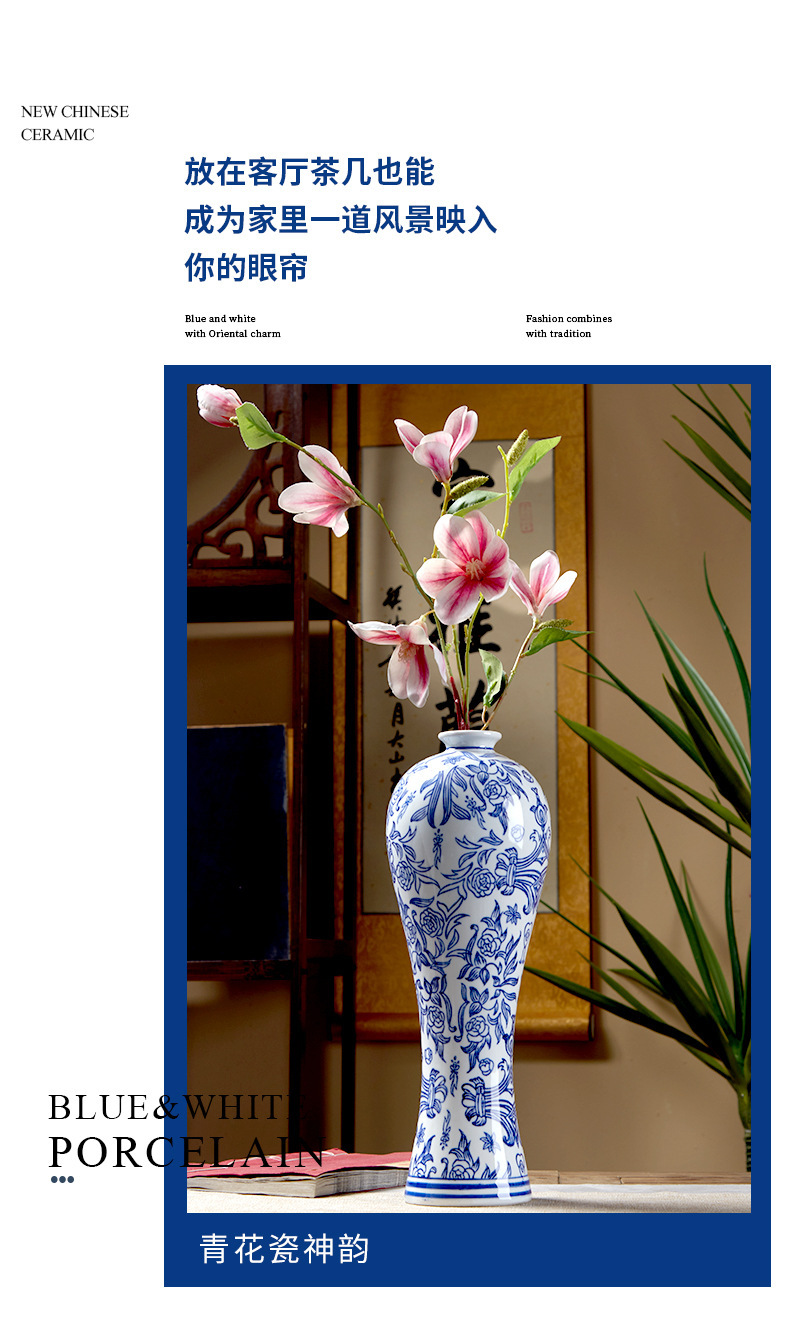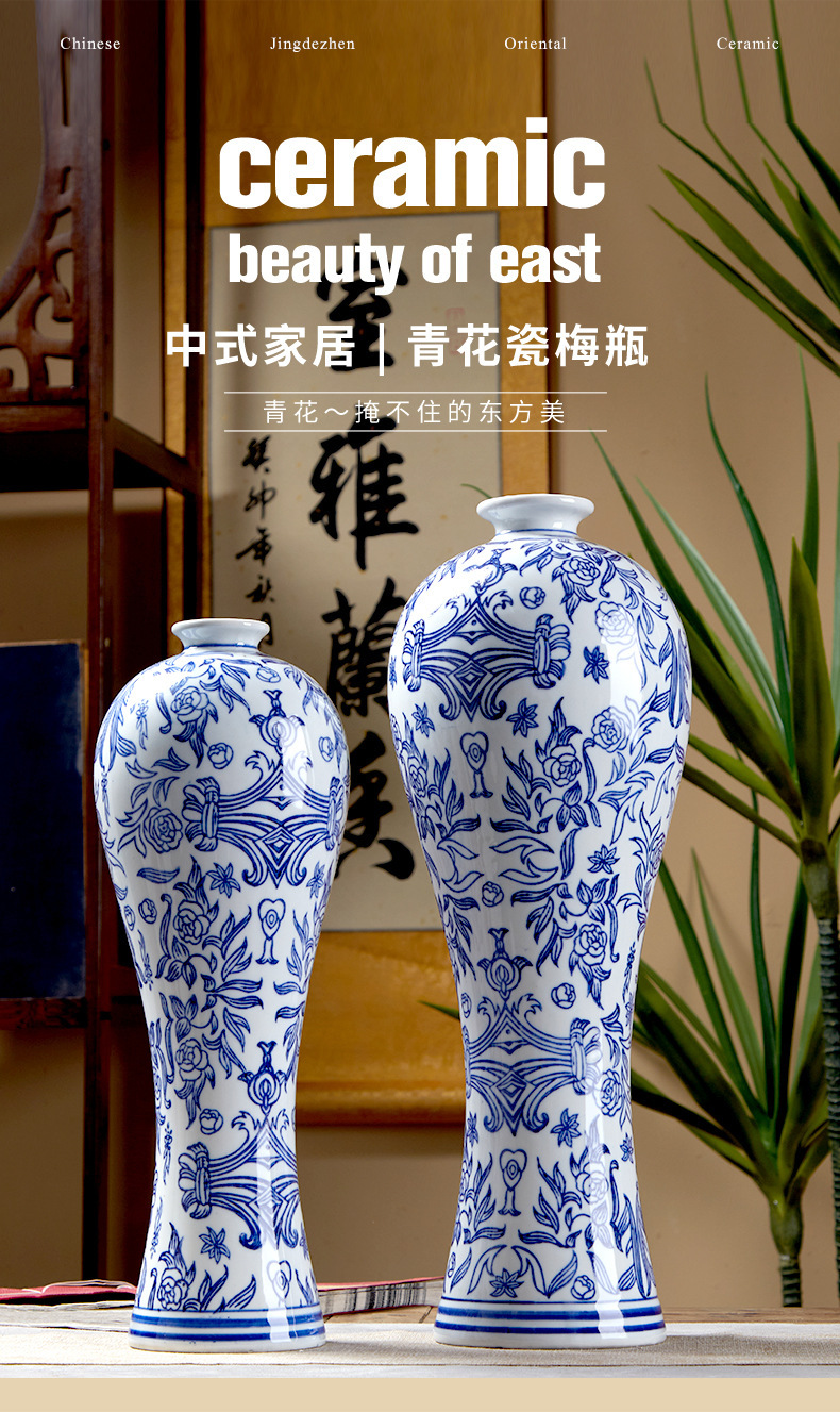 새로운 중국 스타일 세라믹 꽃병 뷰티 병 파란색과 흰색 도자기 꽃-수경 액세서리 TV 캐비닛 홈 꽃스토어 가기