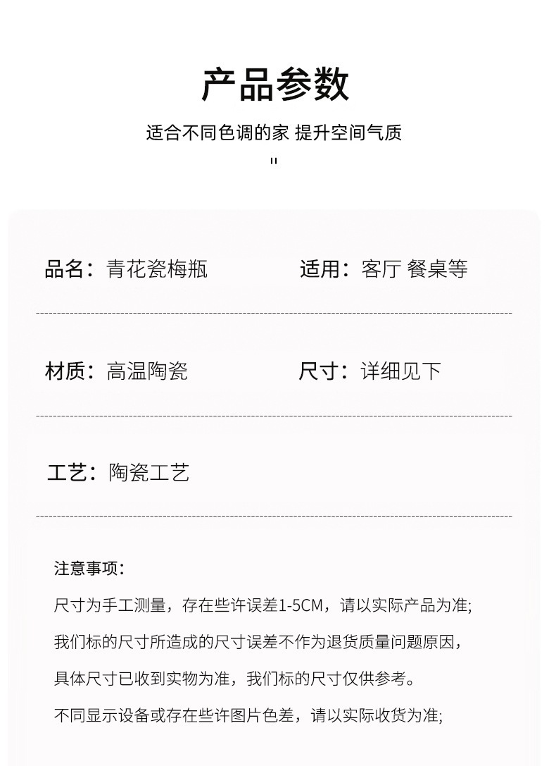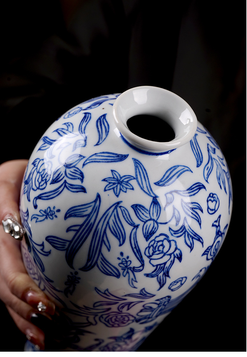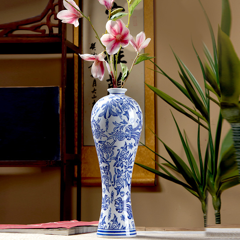 새로운 중국 스타일 세라믹 꽃병 뷰티 병 파란색과 흰색 도자기 꽃-수경 액세서리 TV 캐비닛 홈 꽃