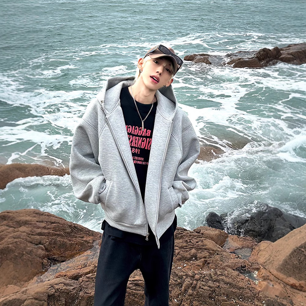 에어 코튼 아메리칸 스타일 클렌핏 해부 짧은 그레이 스웨터 남자 가을과 겨울 무거운 느슨한 후드 카디건 재킷스토어 가기