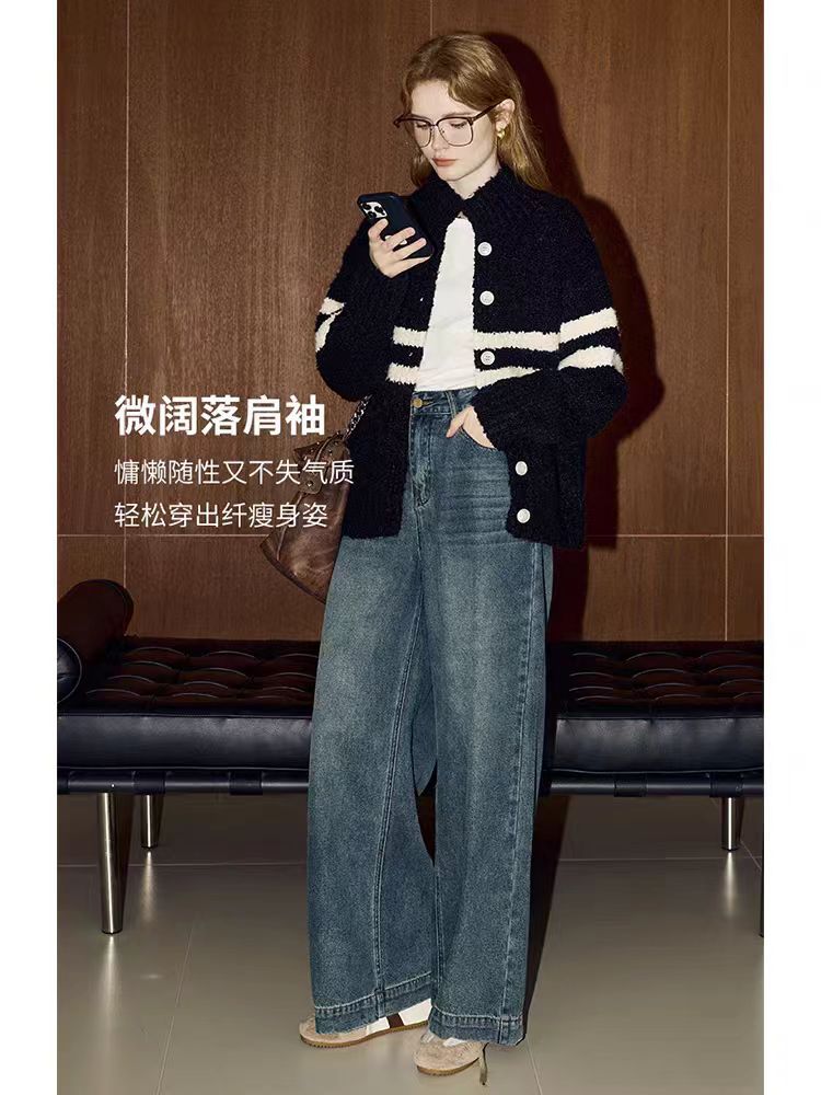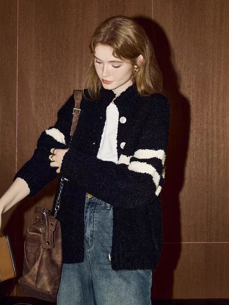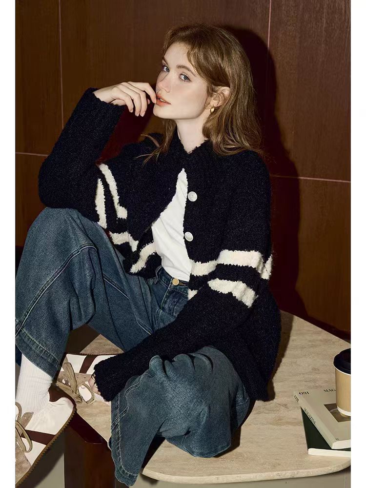 쿠엔의 부드럽고 두꺼운 니트 가디건 여성용 2025년 가을 겨울 신상 심플 스트라이프 스웨터 캐주얼 재킷스토어 가기