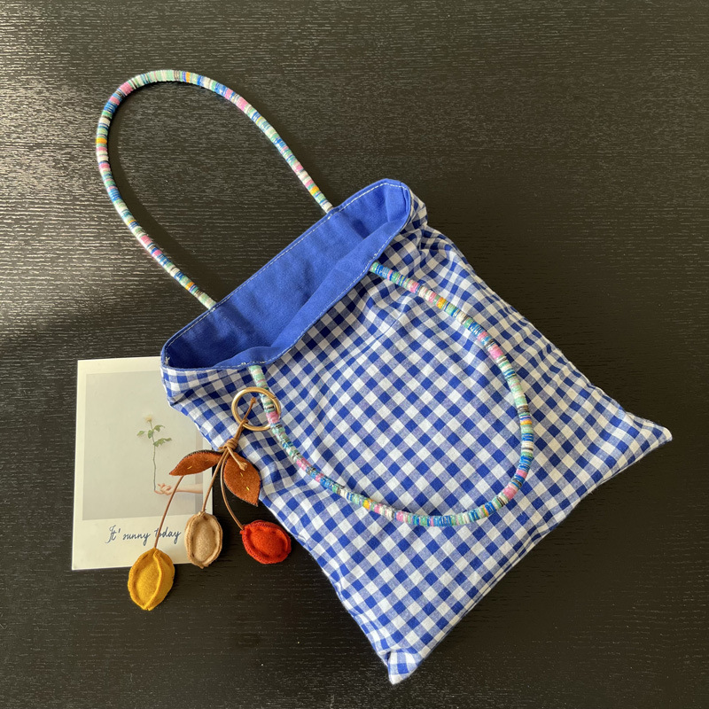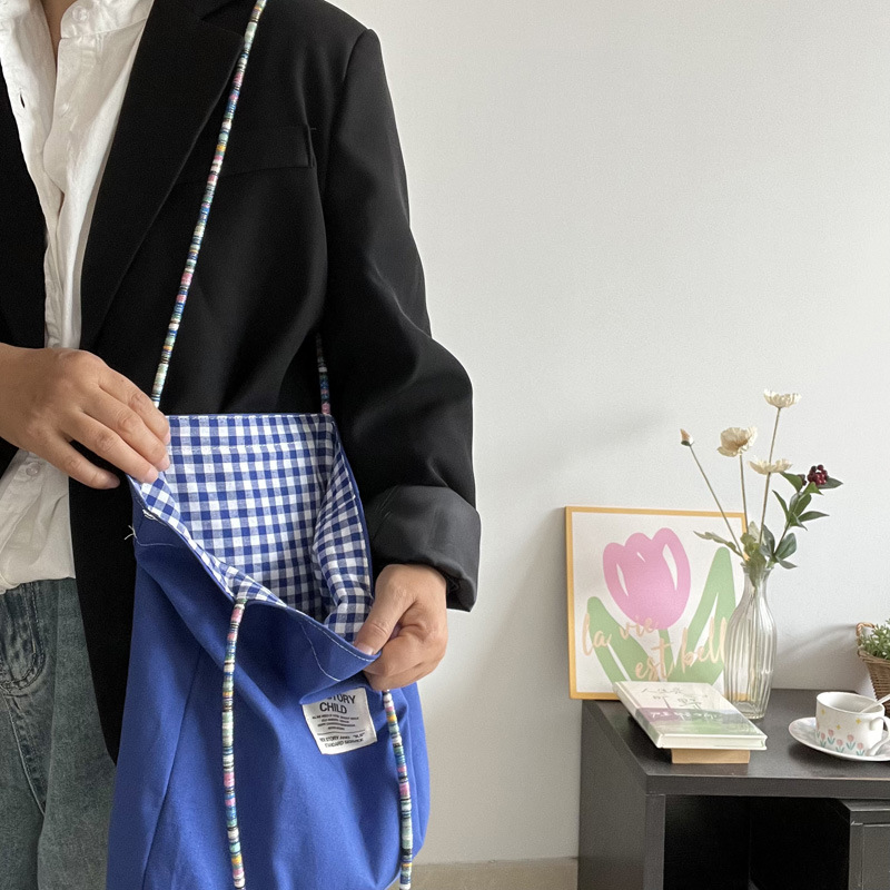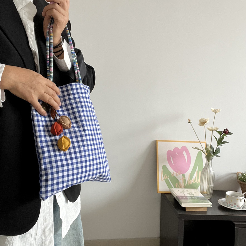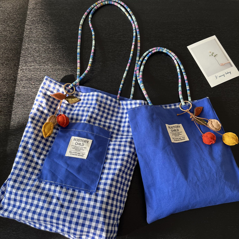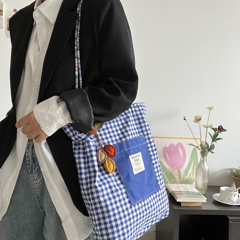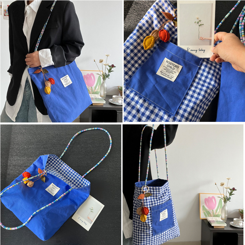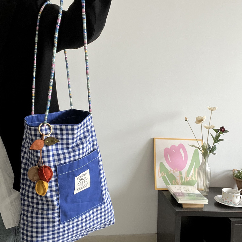 • 블루 체크무늬 + 캔버스 (싱글 숄더 스타일)