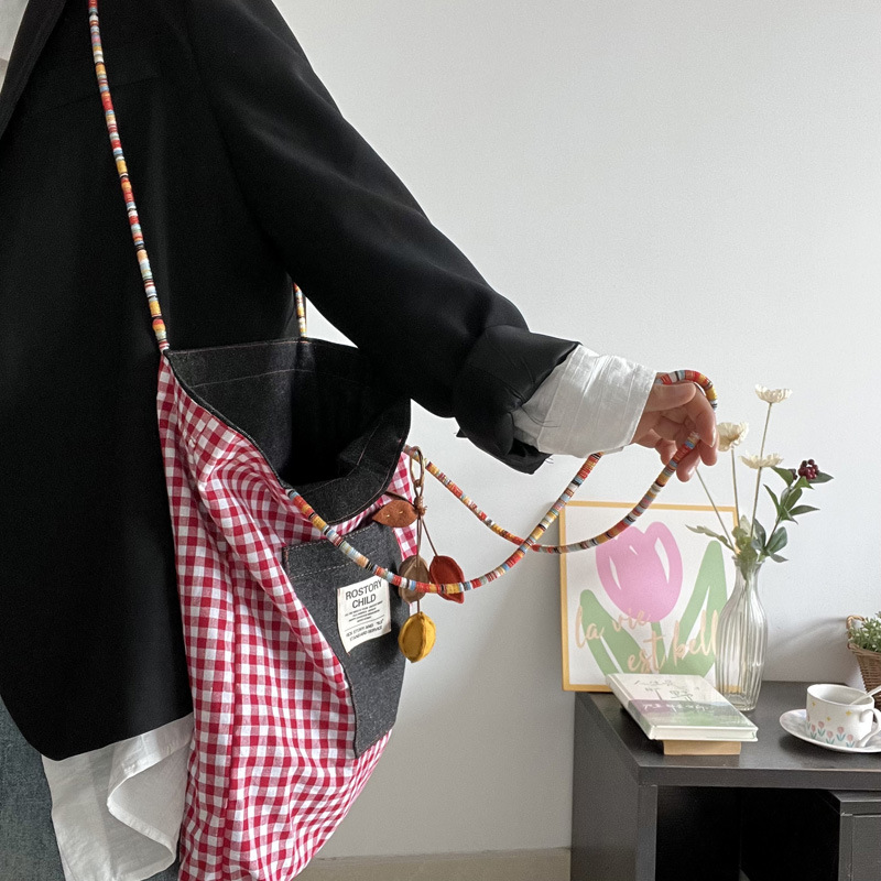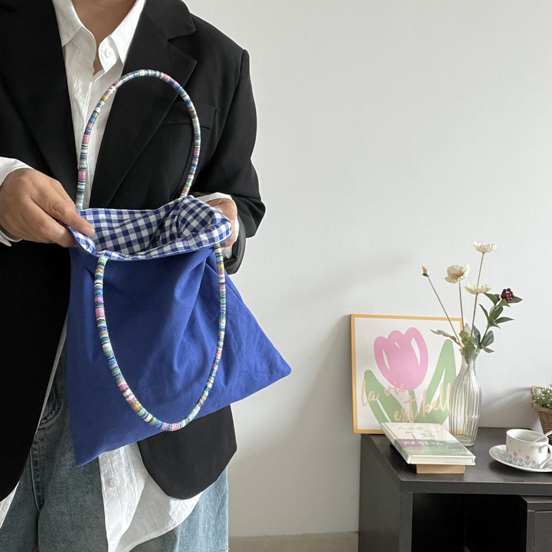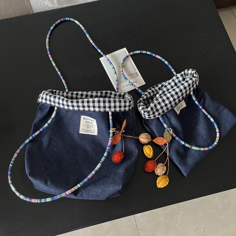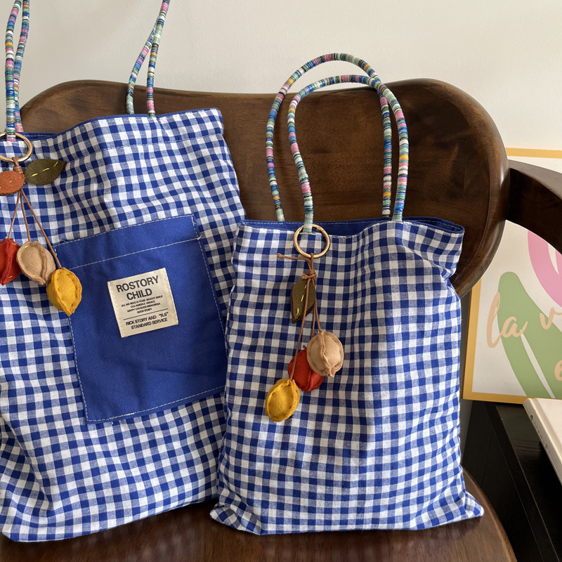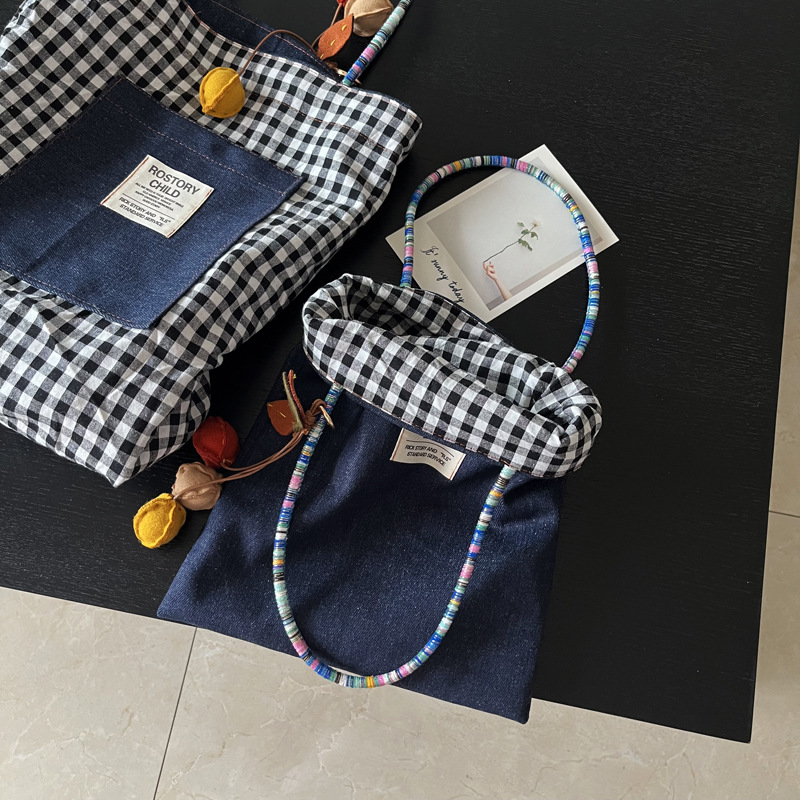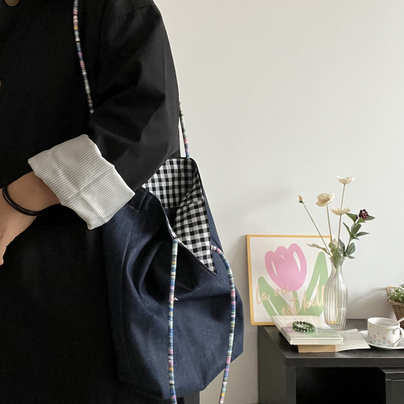 • 블루 체크무늬 + 캔버스 (싱글 숄더 스타일)