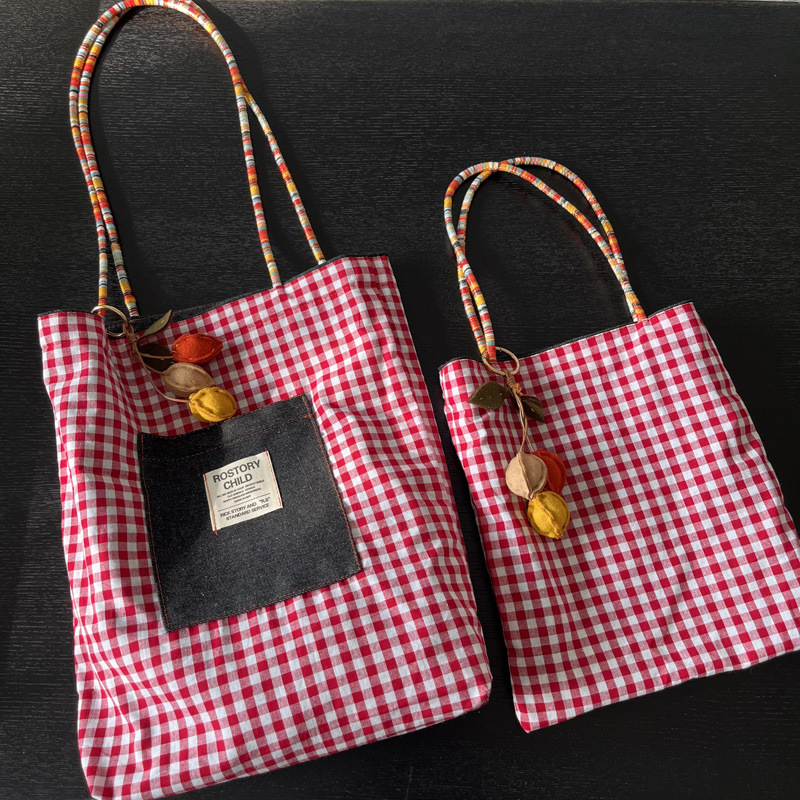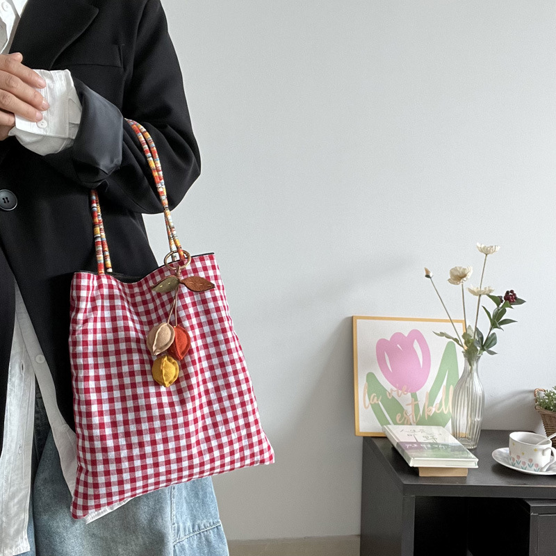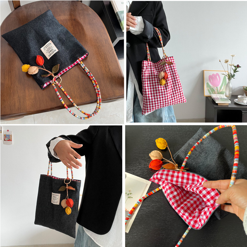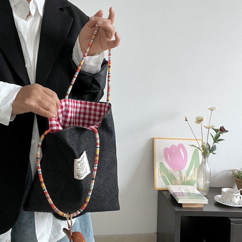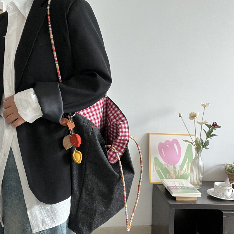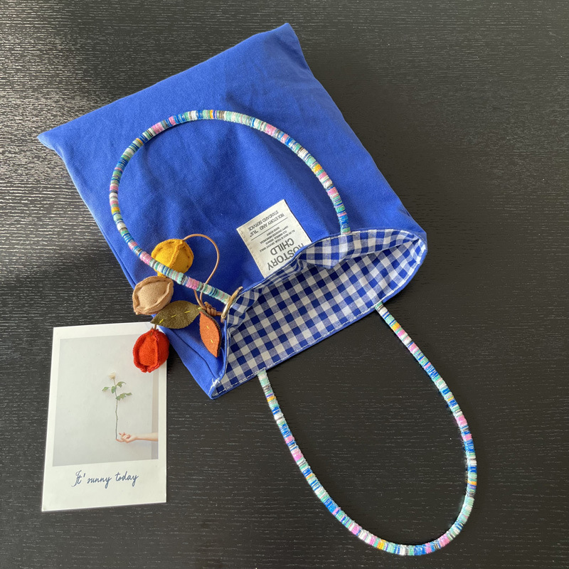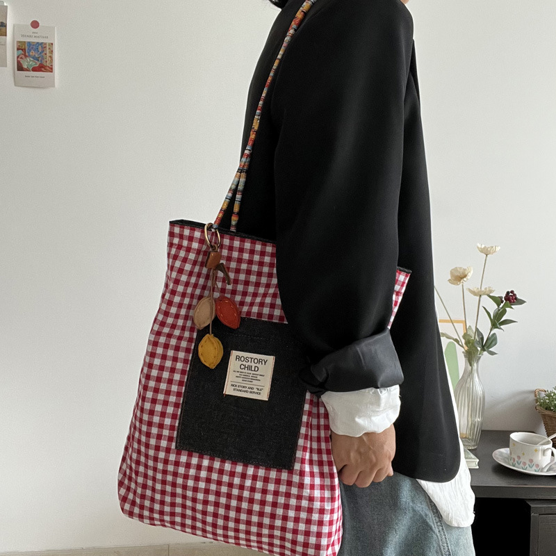 • 블루 체크무늬 + 캔버스 (싱글 숄더 스타일)